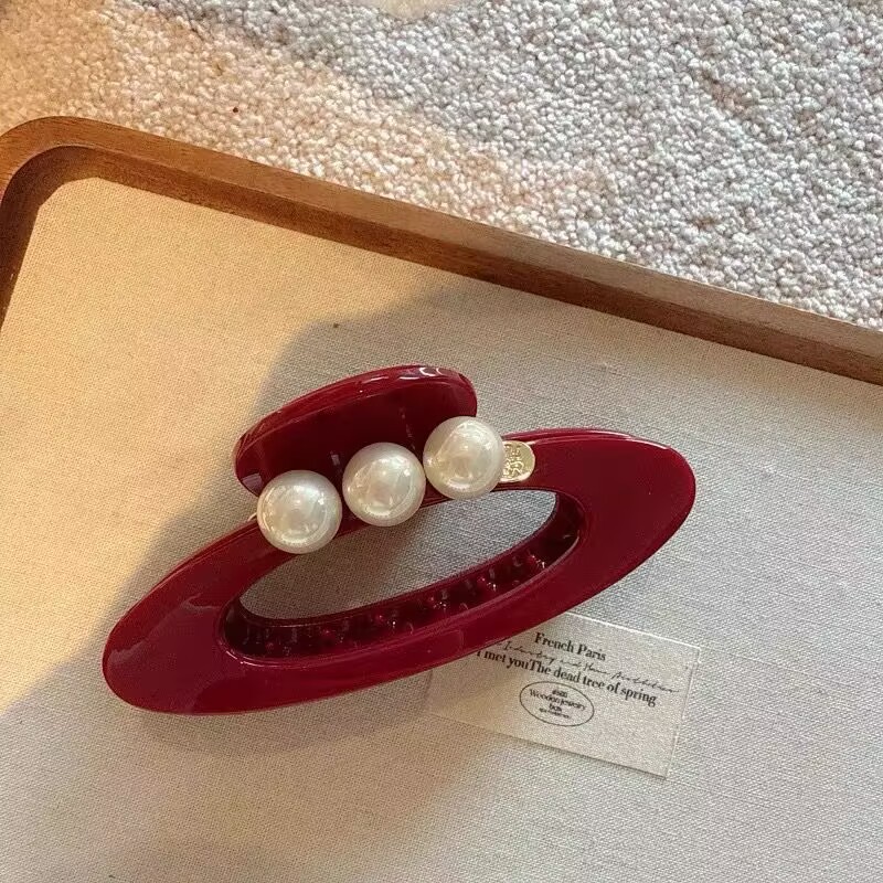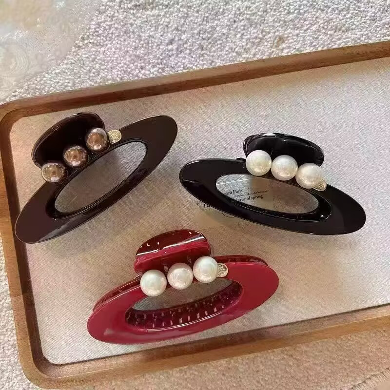 2025 새로운 타원형 진주 프렌치 그랩 클립 레트로 우아한 머리 상어 클립 라이트 럭셔리 심플 헤드웨어