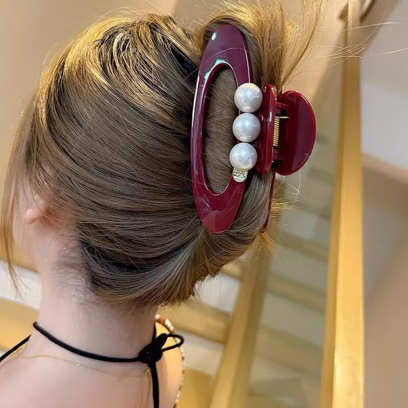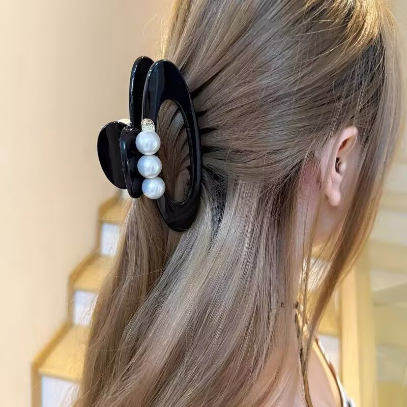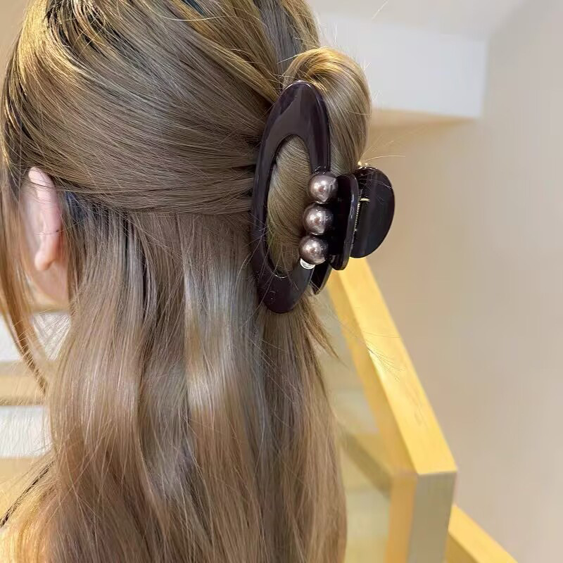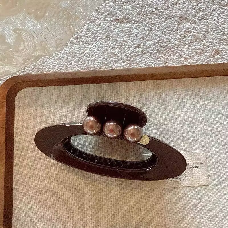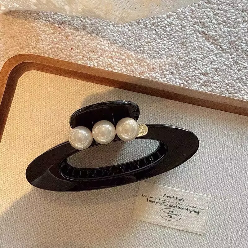 2025 새로운 타원형 진주 프렌치 그랩 클립 레트로 우아한 머리 상어 클립 라이트 럭셔리 심플 헤드웨어스토어 가기