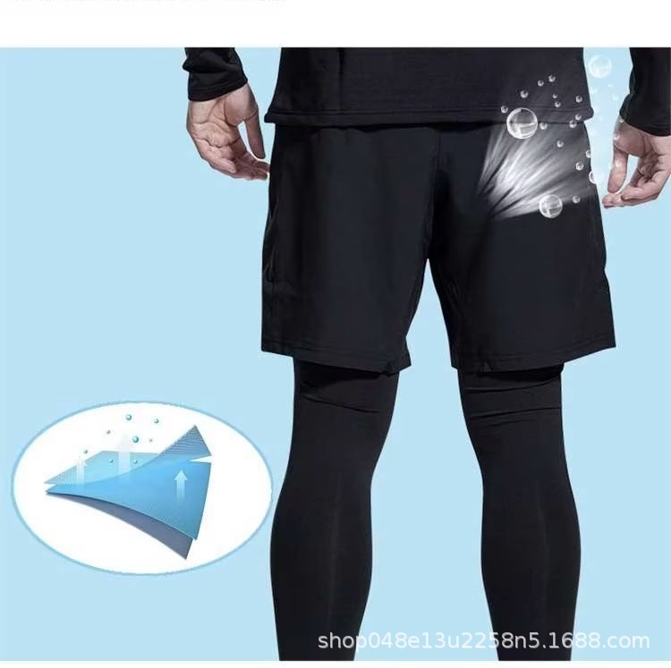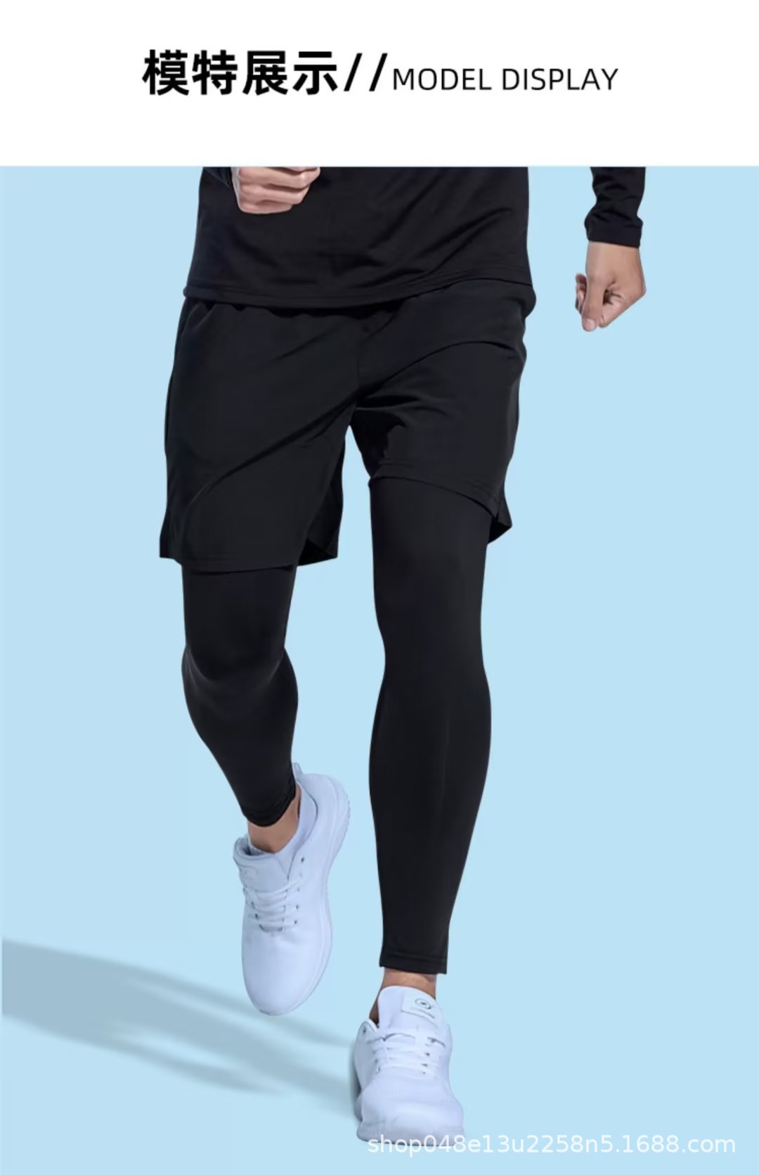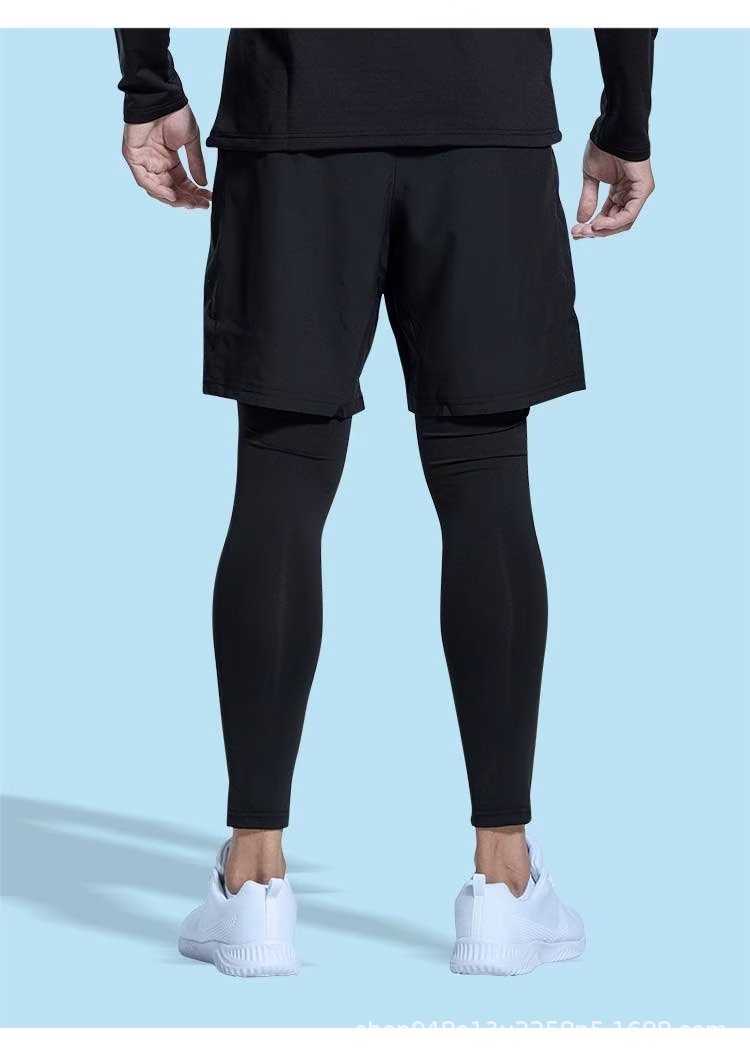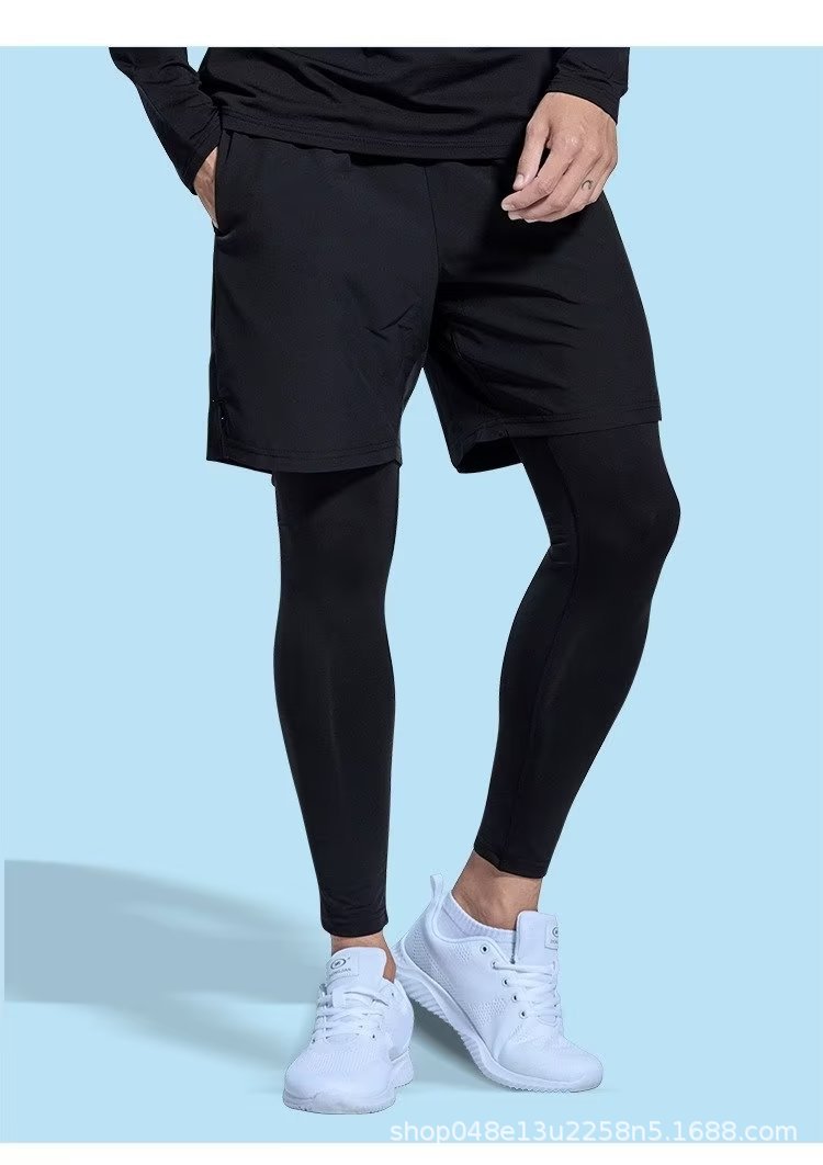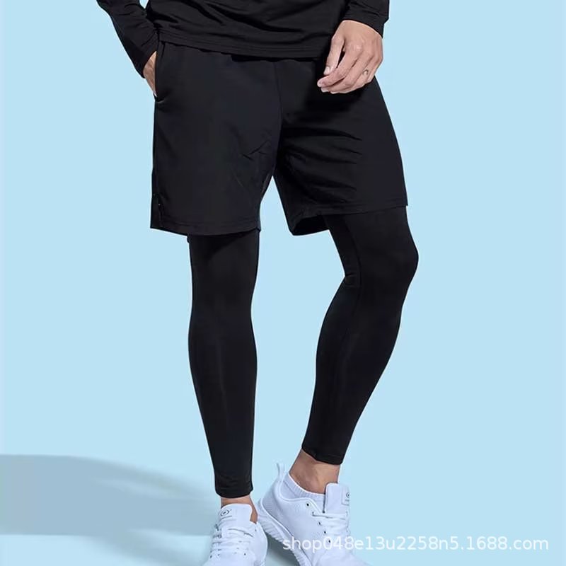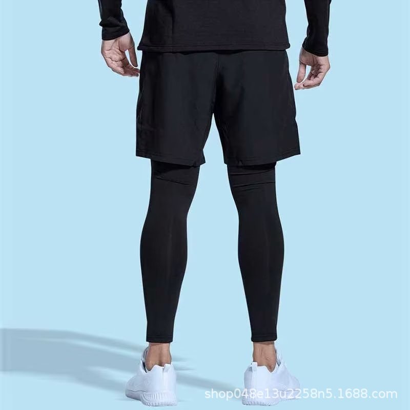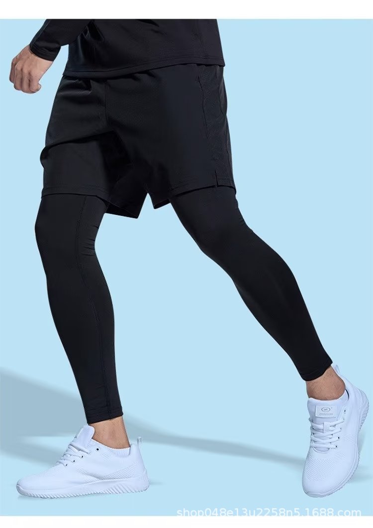 피트니스 바지 가짜 투피스 스포츠 바지 남성 가을, 겨울 야외 달리기 훈련 긴 바지 스프린트 농구 타이트 레깅스