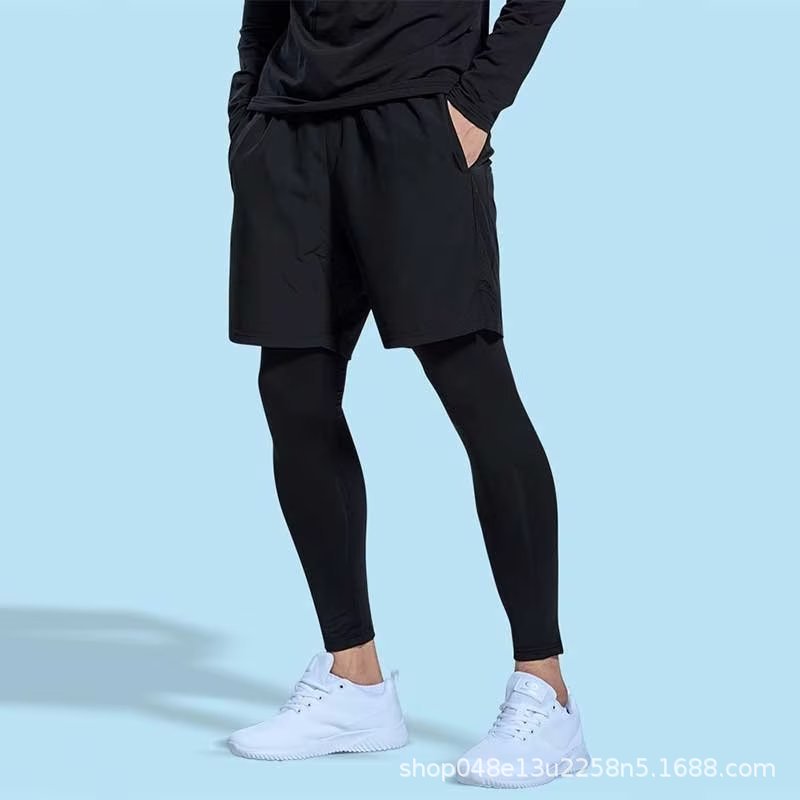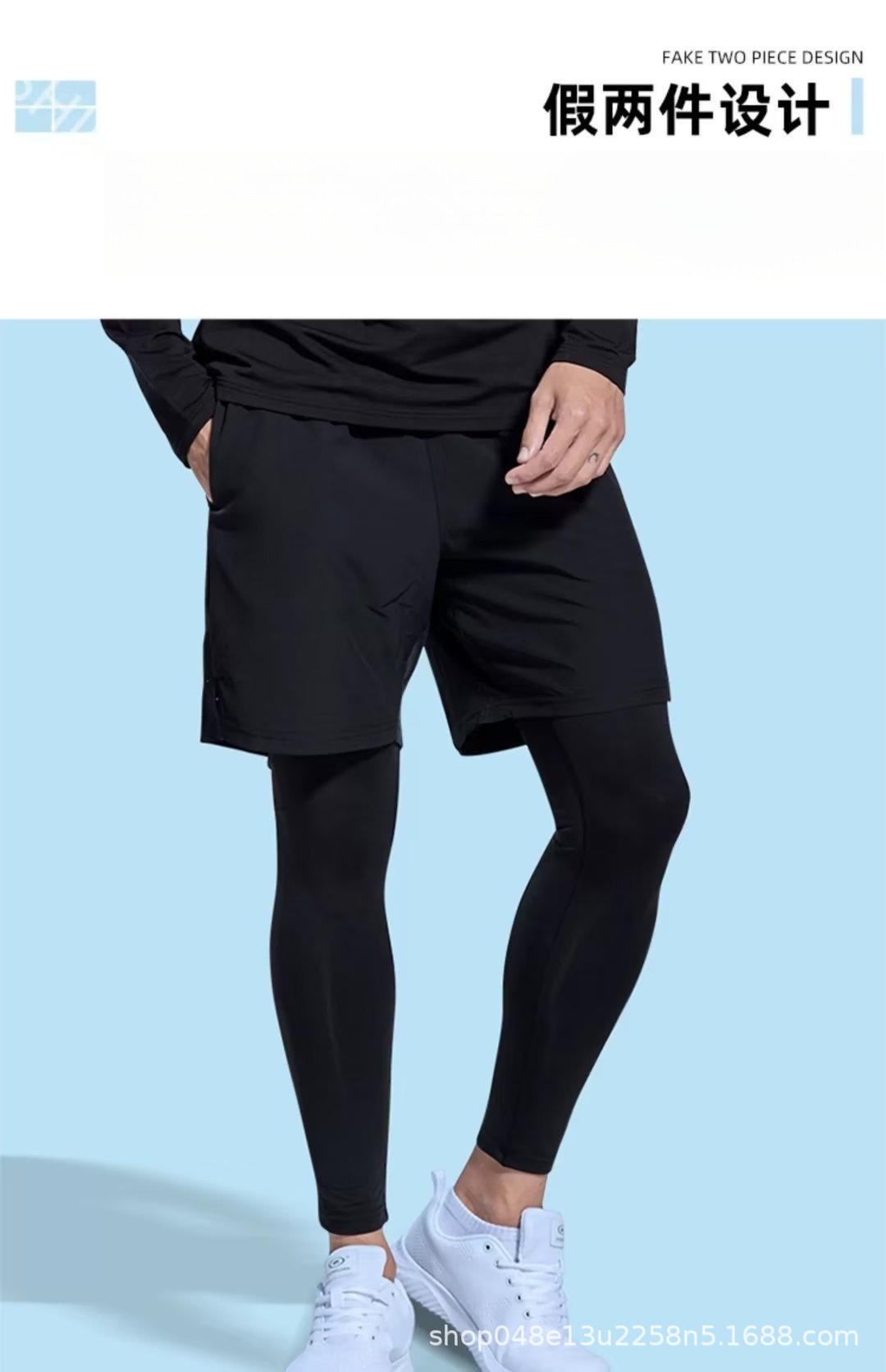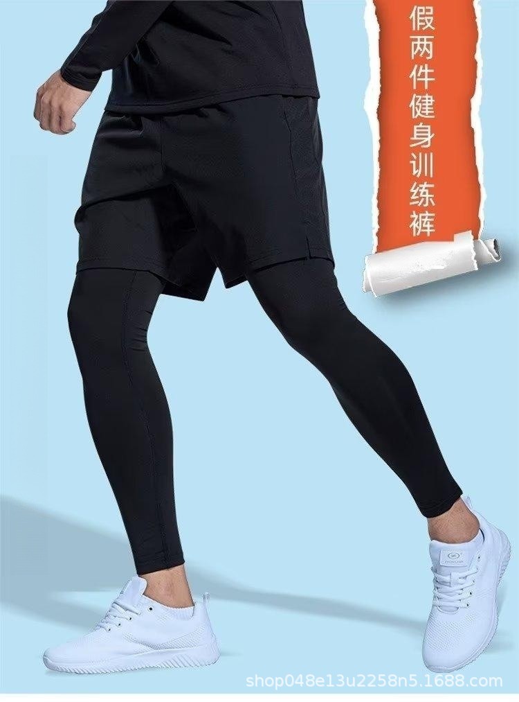 피트니스 바지 가짜 투피스 스포츠 바지 남성 가을, 겨울 야외 달리기 훈련 긴 바지 스프린트 농구 타이트 레깅스스토어 가기
