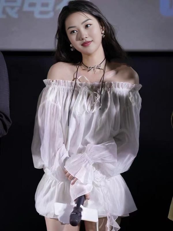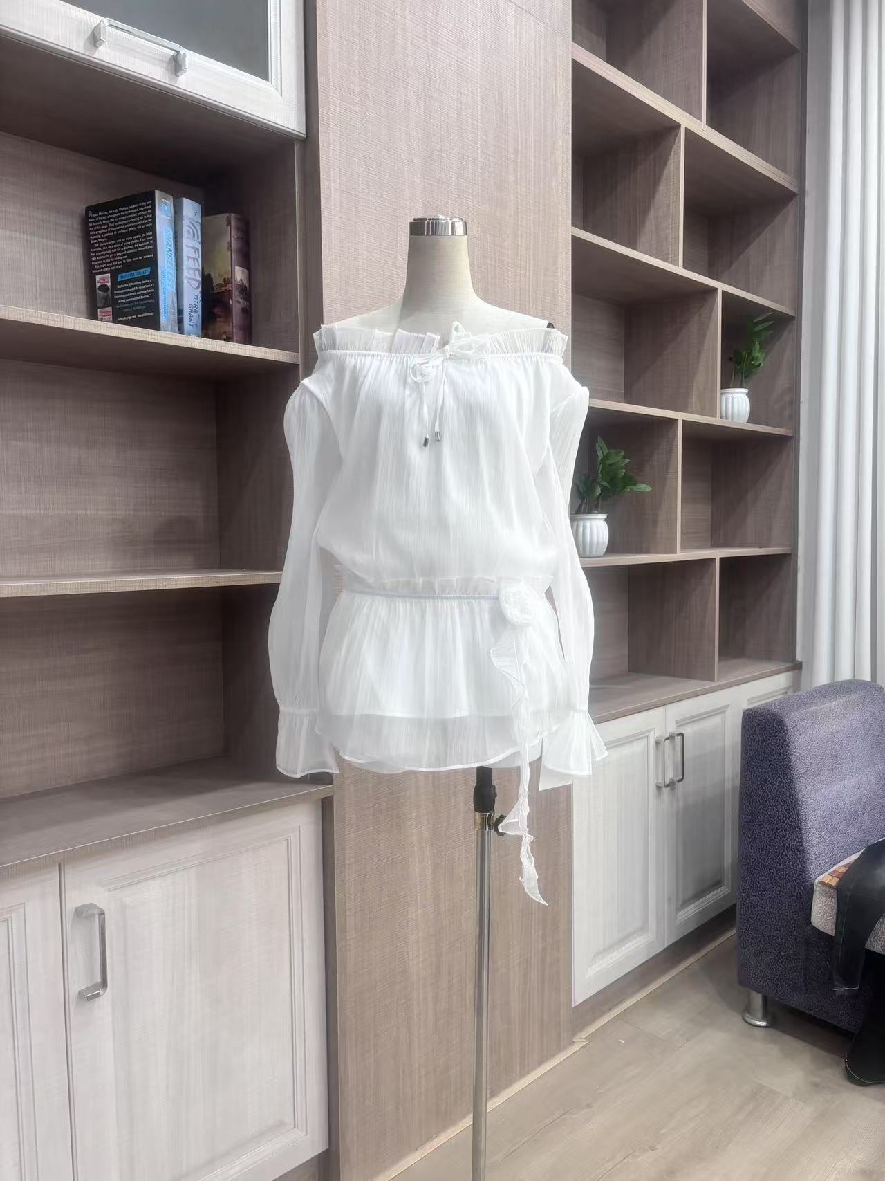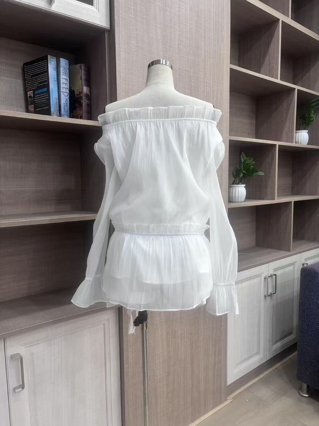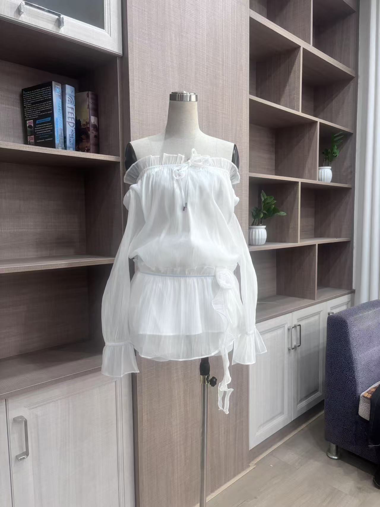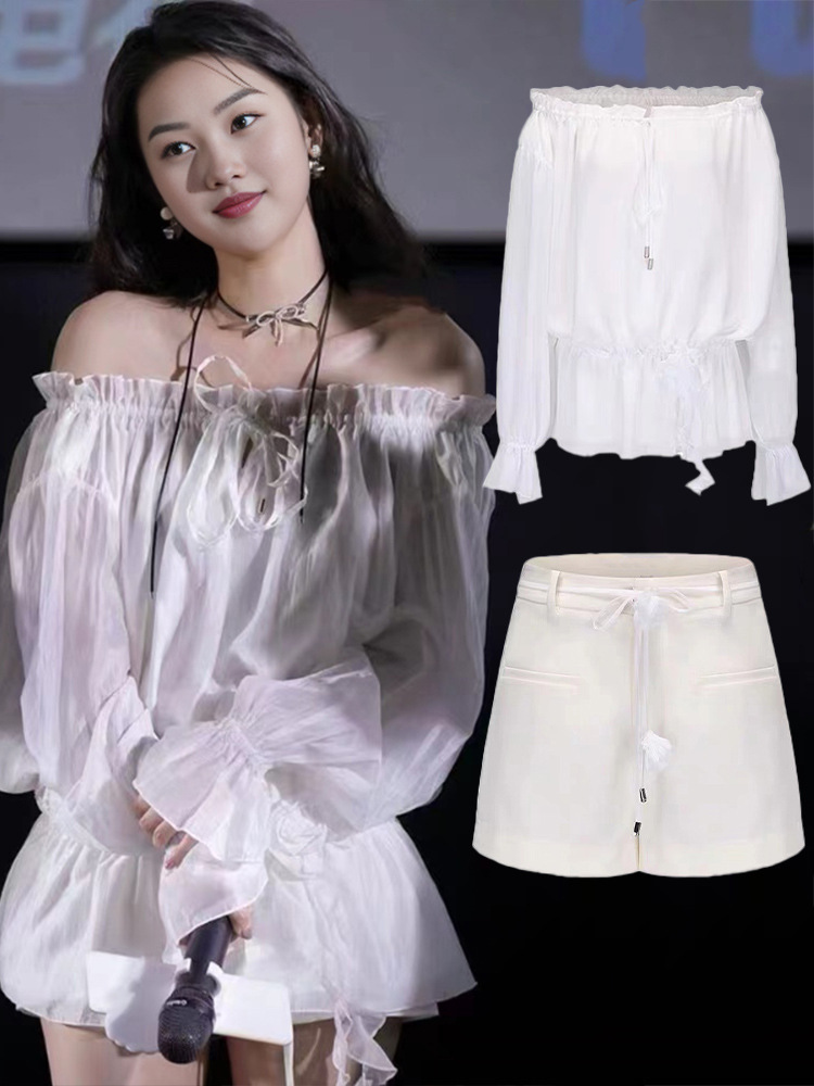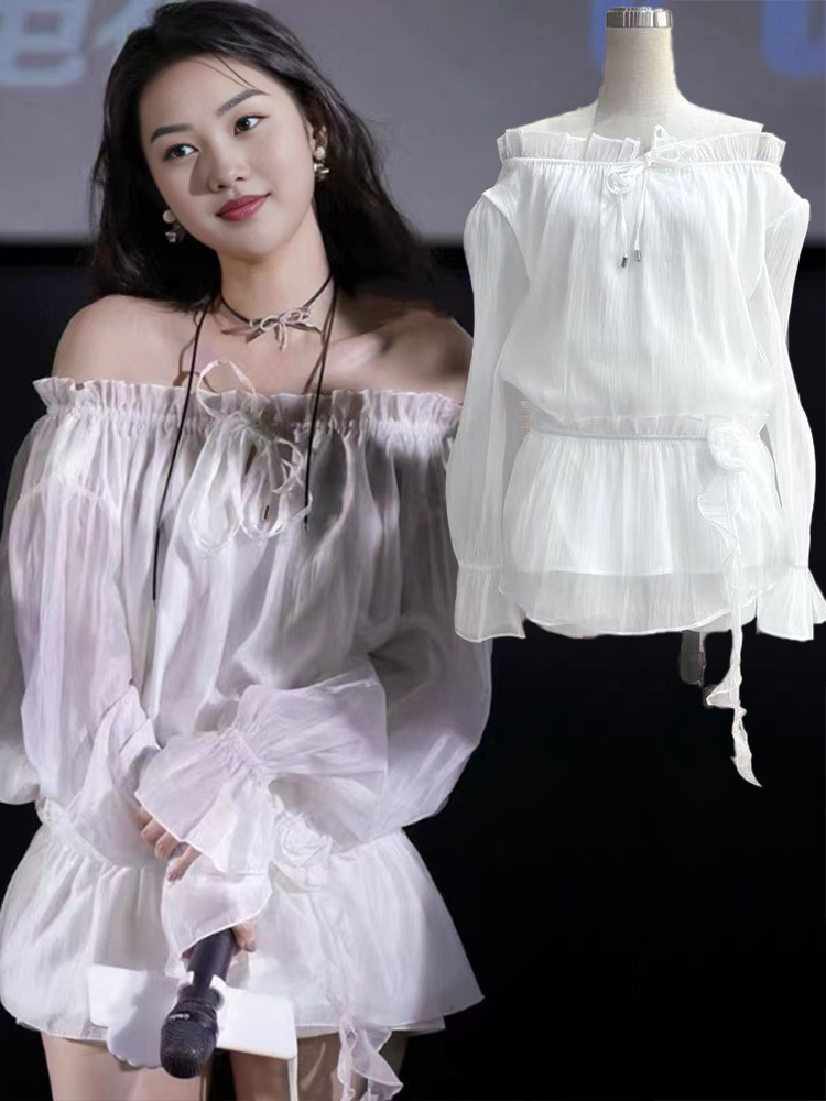 재고 왕 유웬 같은 스타일 옷 한 어깨 끈 긴 소매 디자인 틈새 톱 2025 여름 새 셔츠
