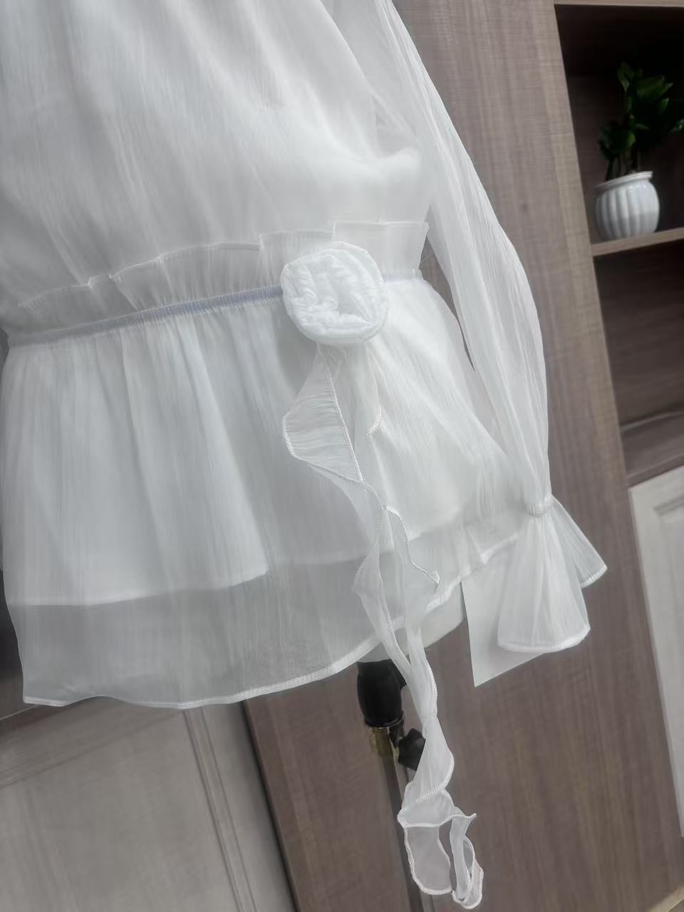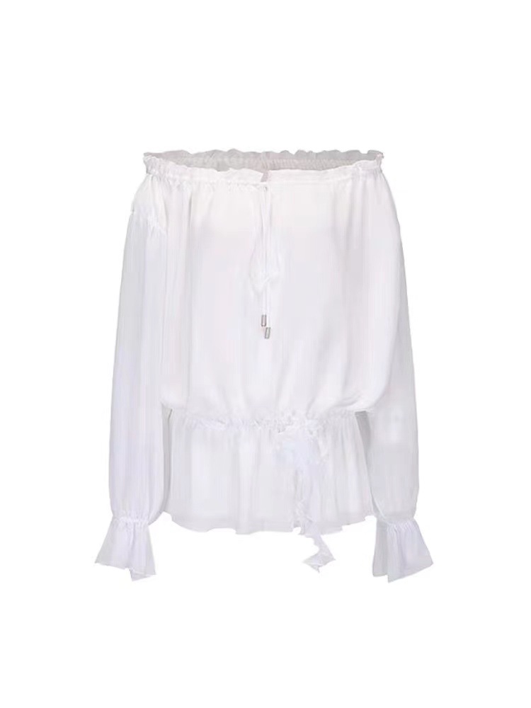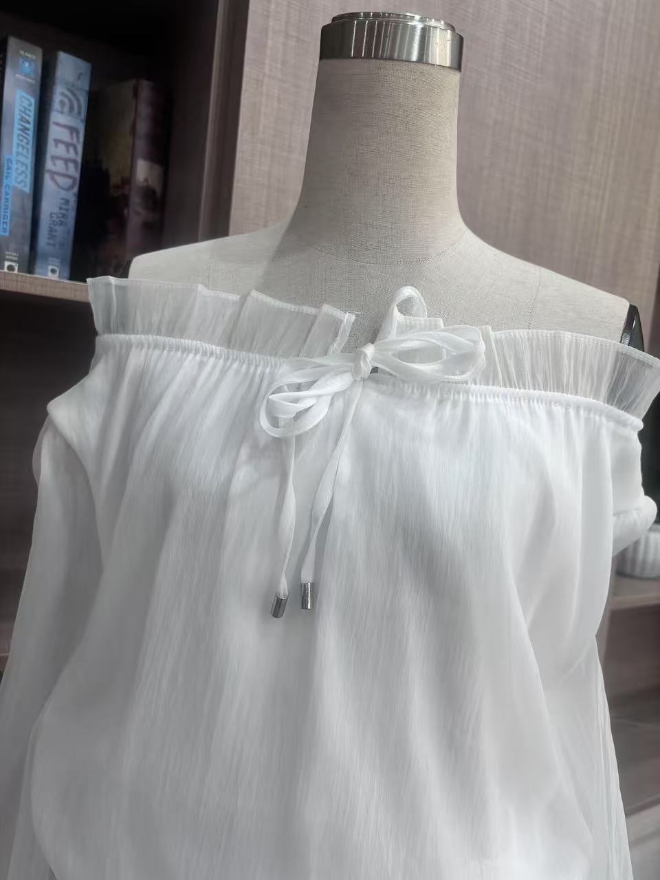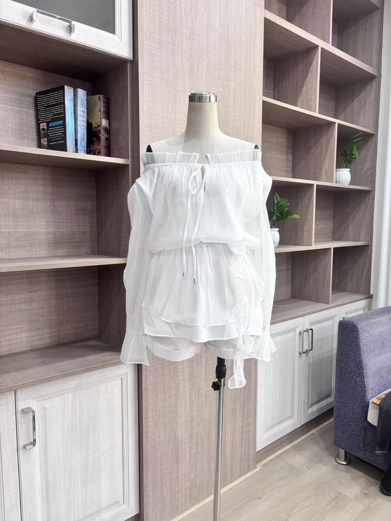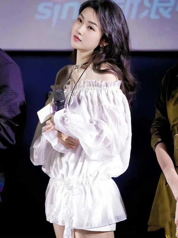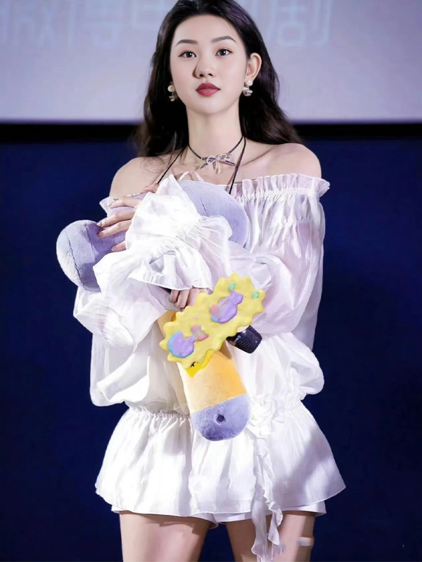 재고 왕 유웬 같은 스타일 옷 한 어깨 끈 긴 소매 디자인 틈새 톱 2025 여름 새 셔츠