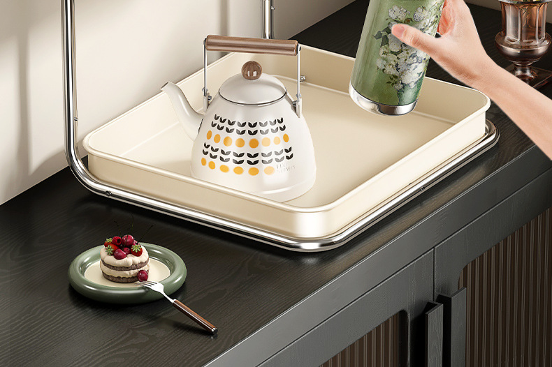 맞춤형 컵 랙 스토리지 랙 고급 센스 라이트 럭셔리 드라인 트레이 통합 테이블 탑 턴 코너 다이닝 테이블 랙