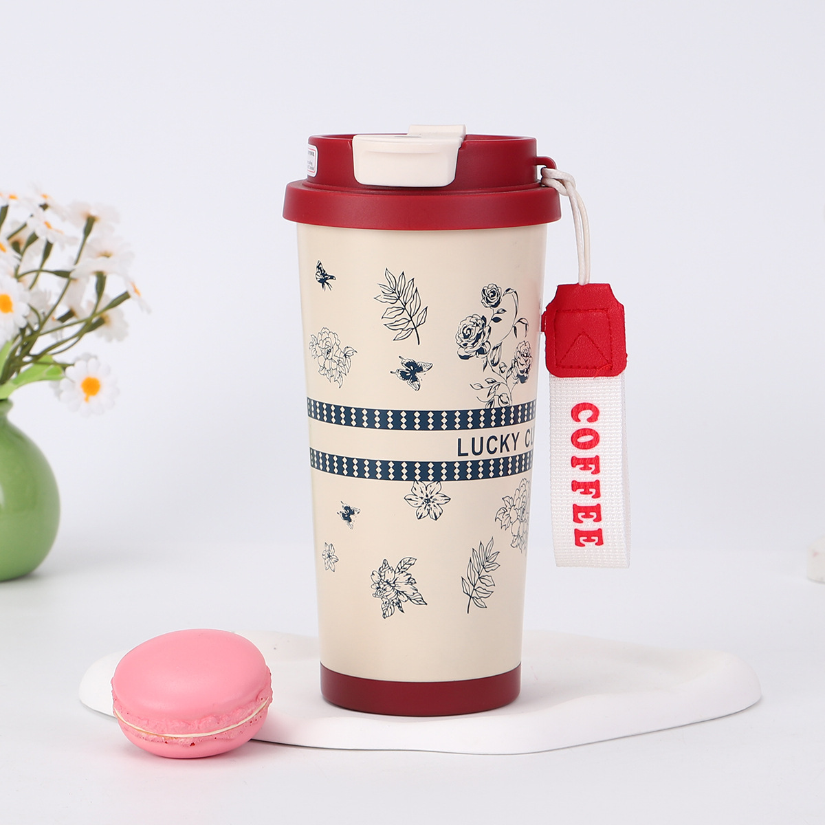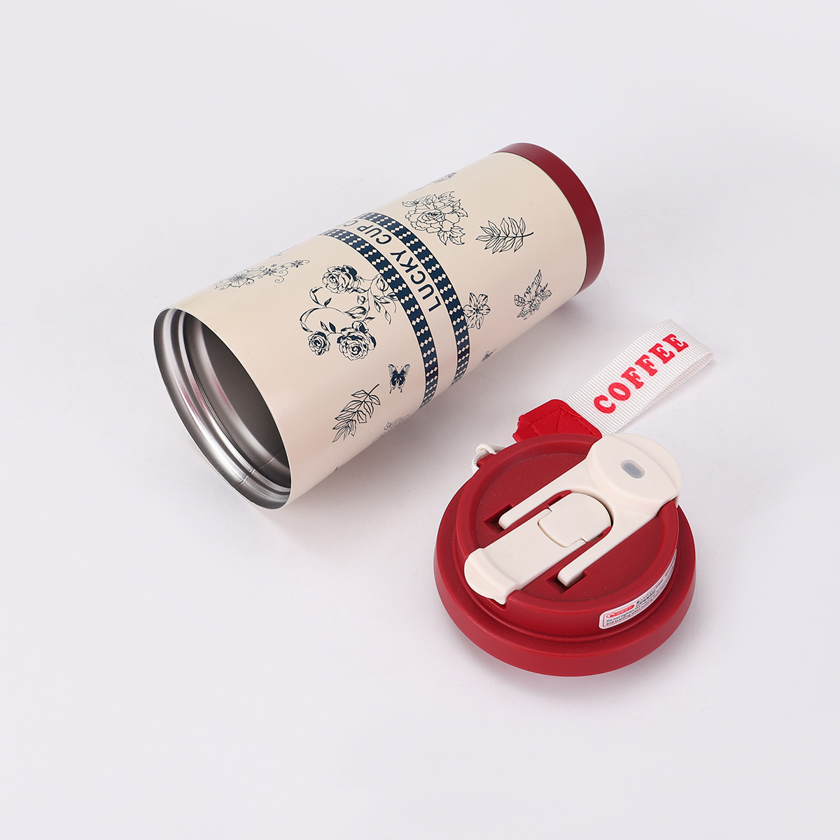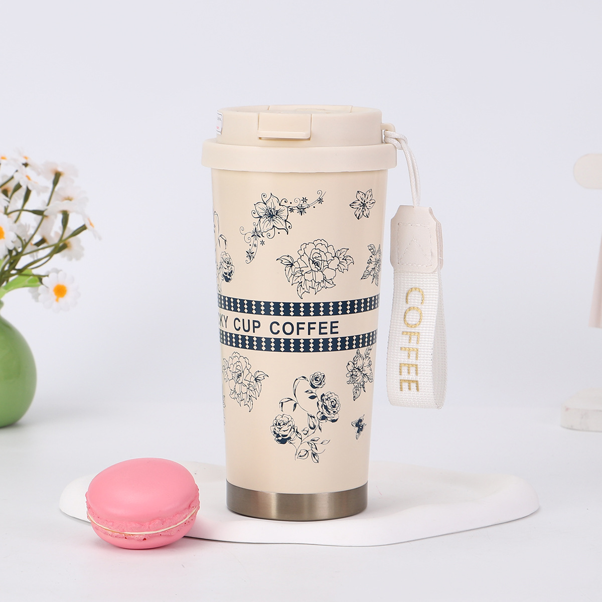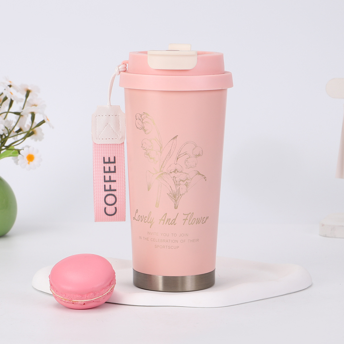 국경 간 백합 계곡 빛 고급 커피 컵 더블 레이어 316 스테인레스 스틸 보온병 컵 대용량 야외 스포츠 흡입 컵