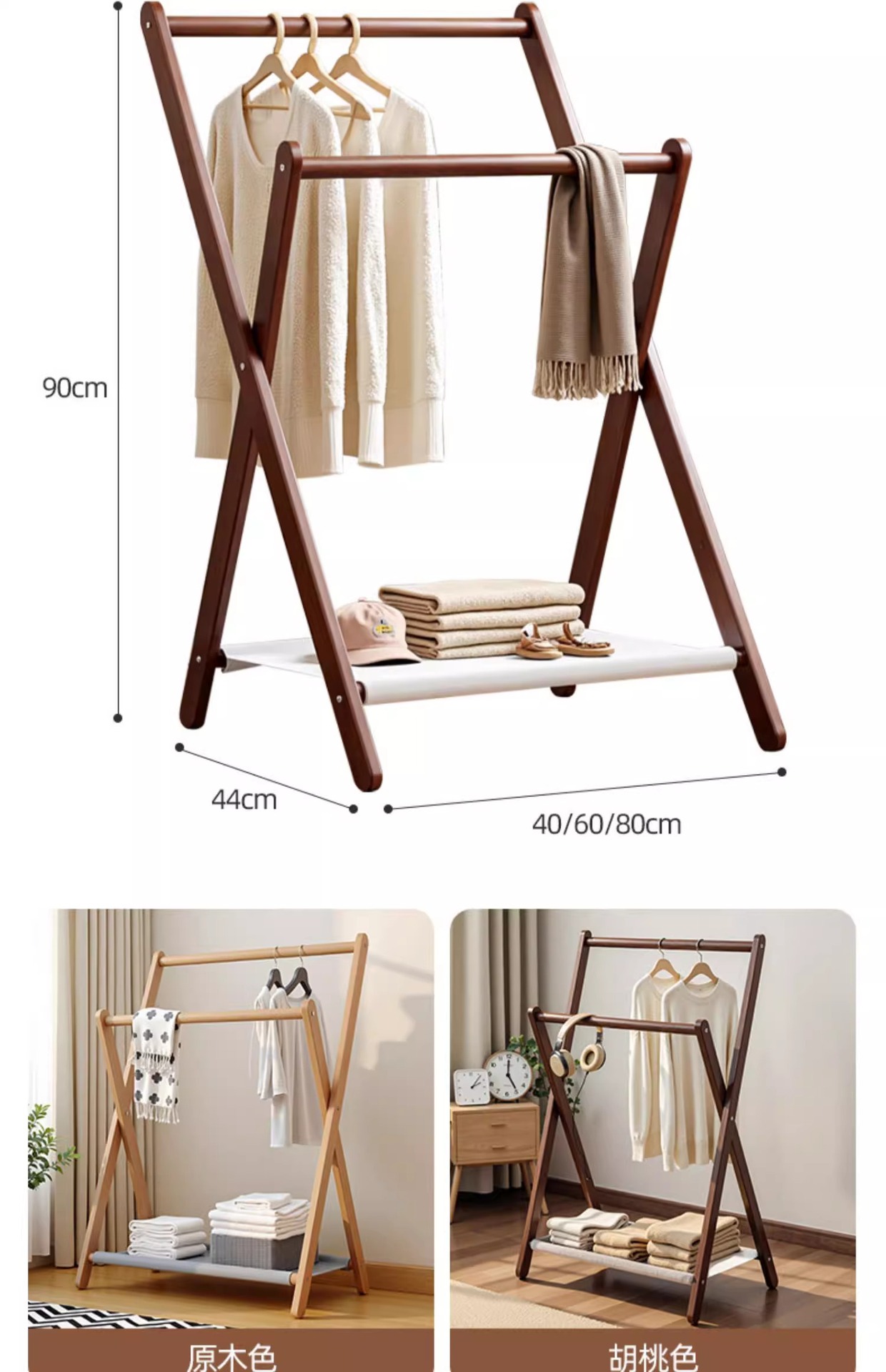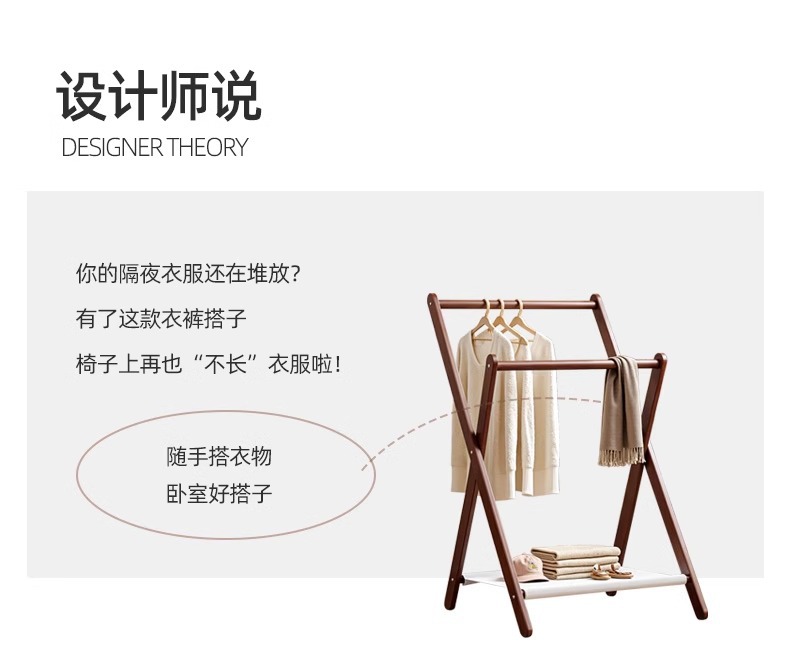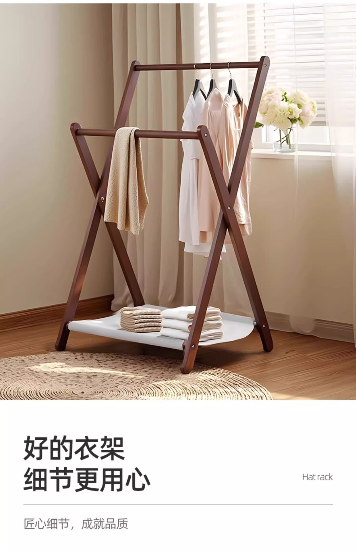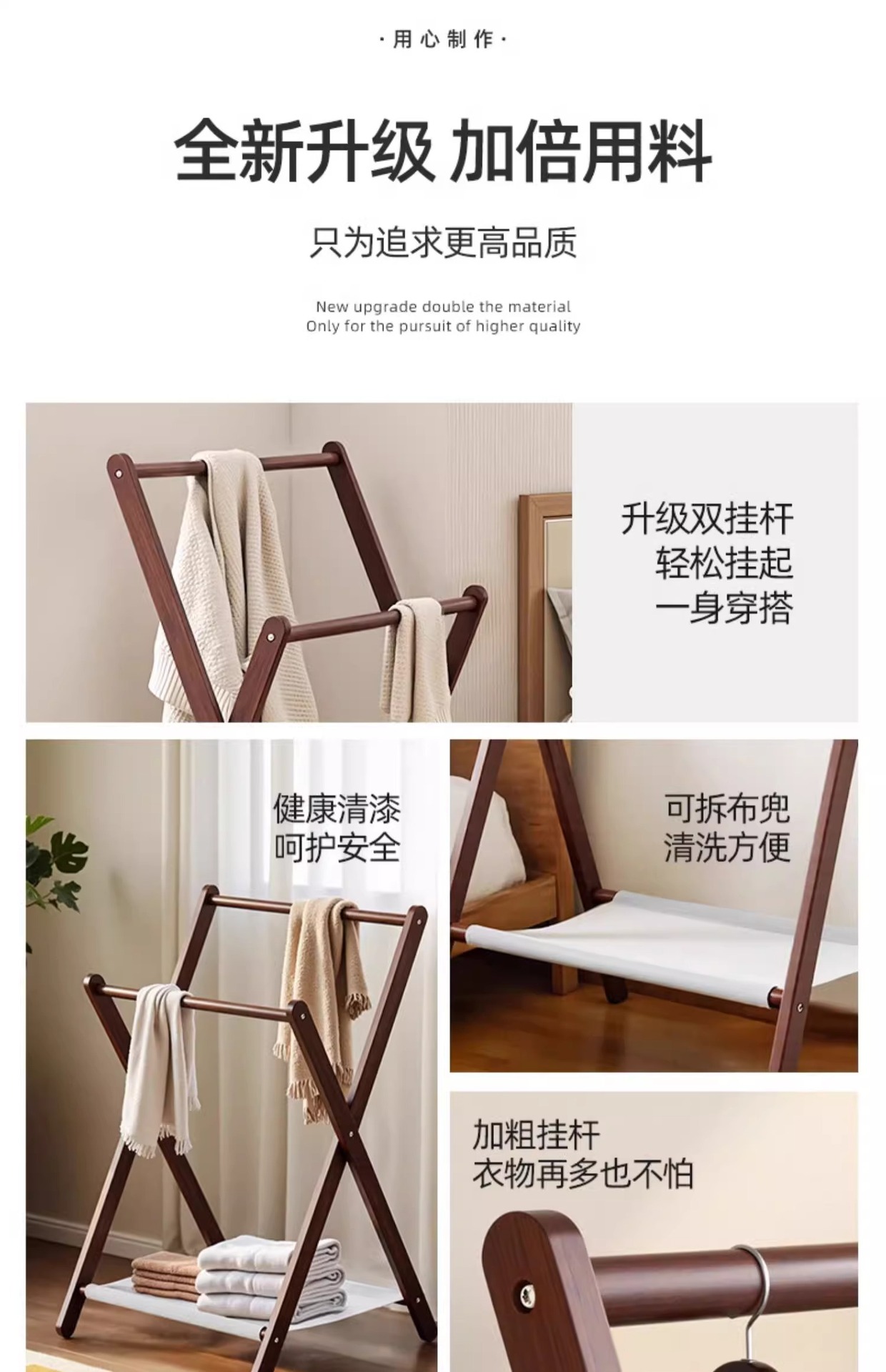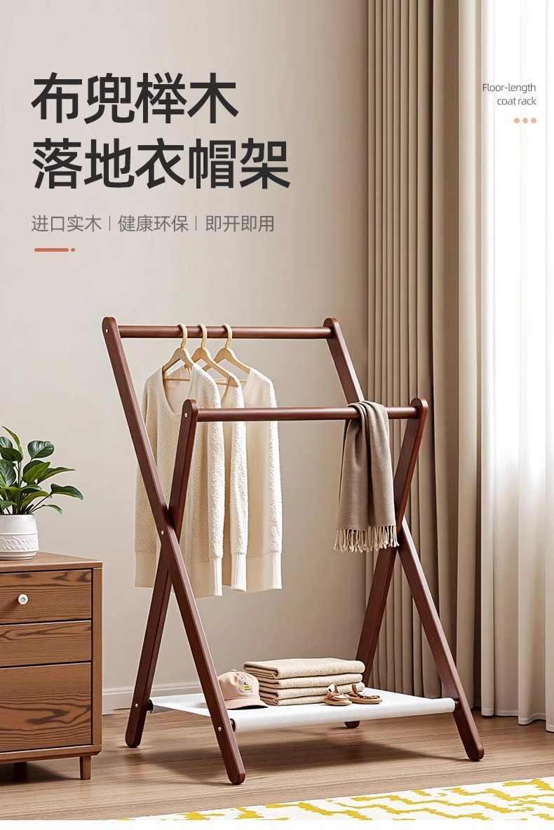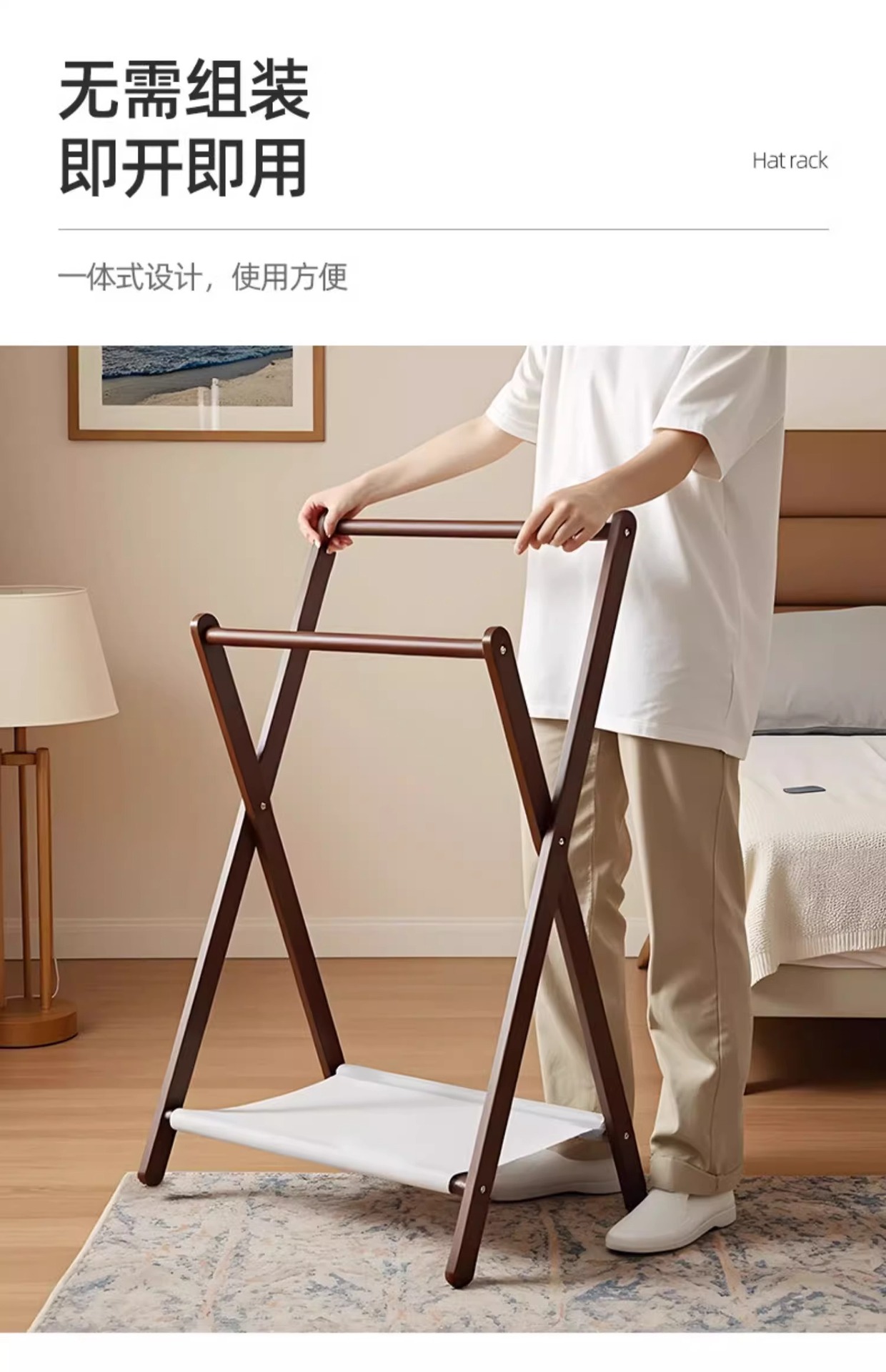 원목 옷걸이, 바닥에 올려놓은 침대 옆에 밤에 옷을 걸 수 있는 가정용 침실 옷걸이, 옷을 벗어 놓은 후 세탁할 수 있는 옷걸이스토어 가기