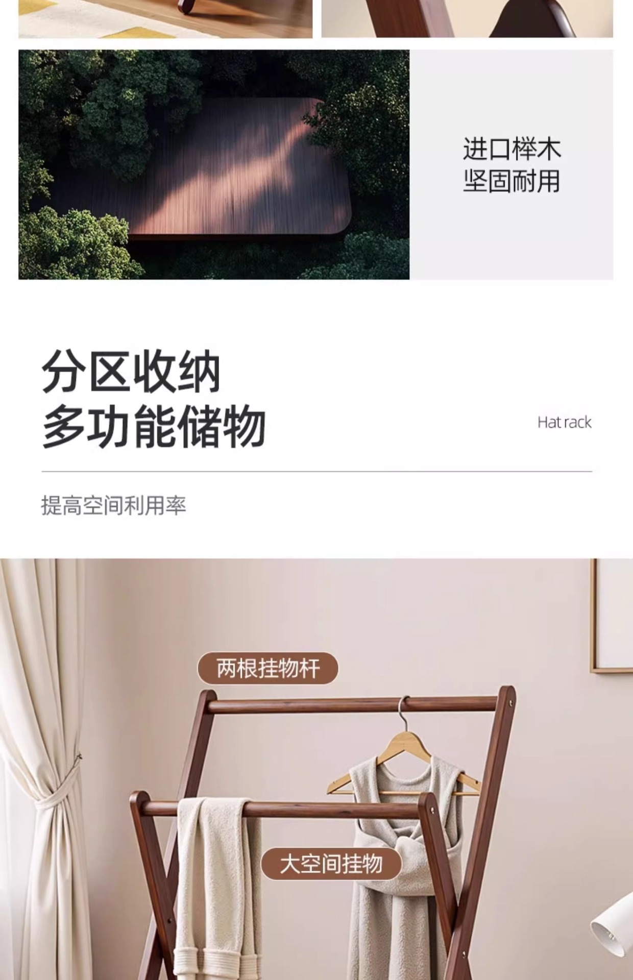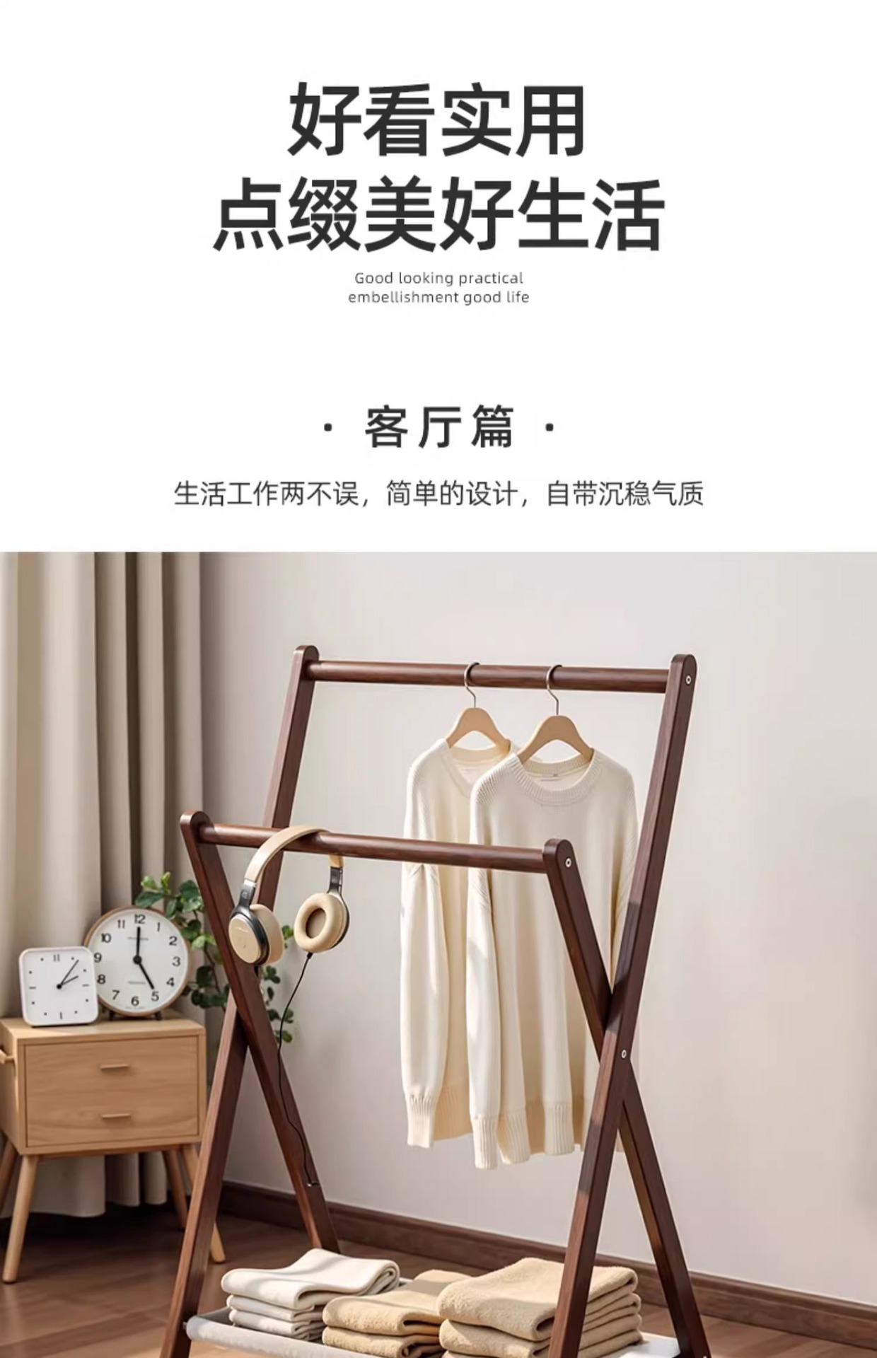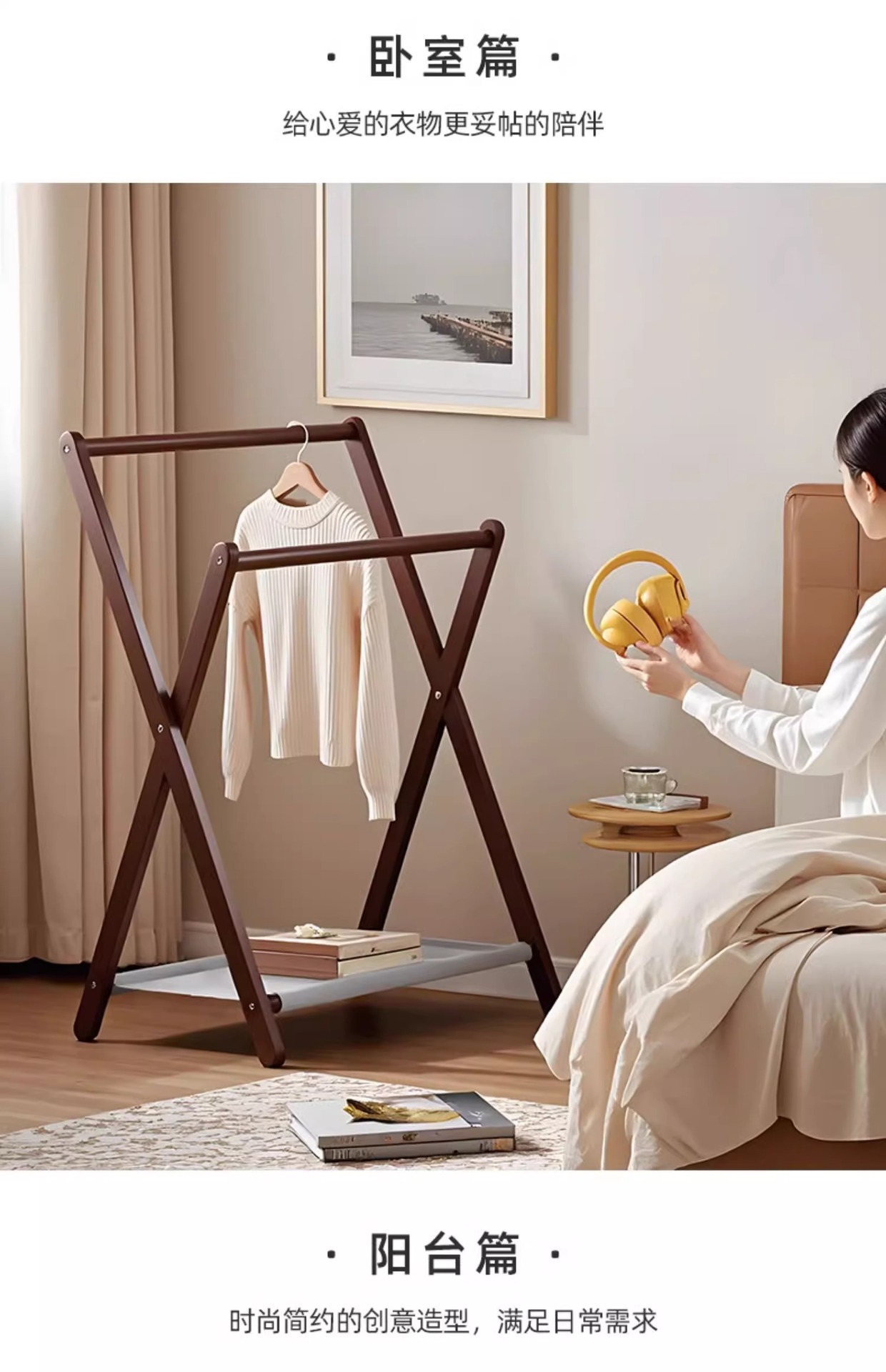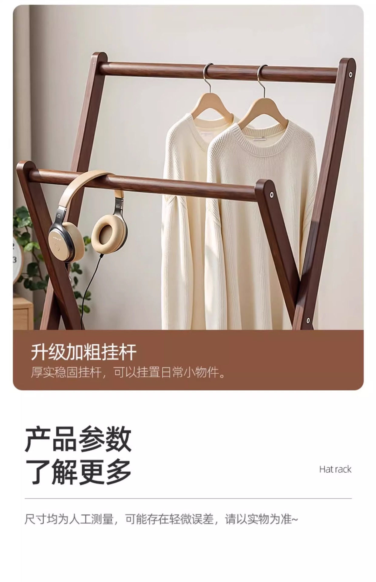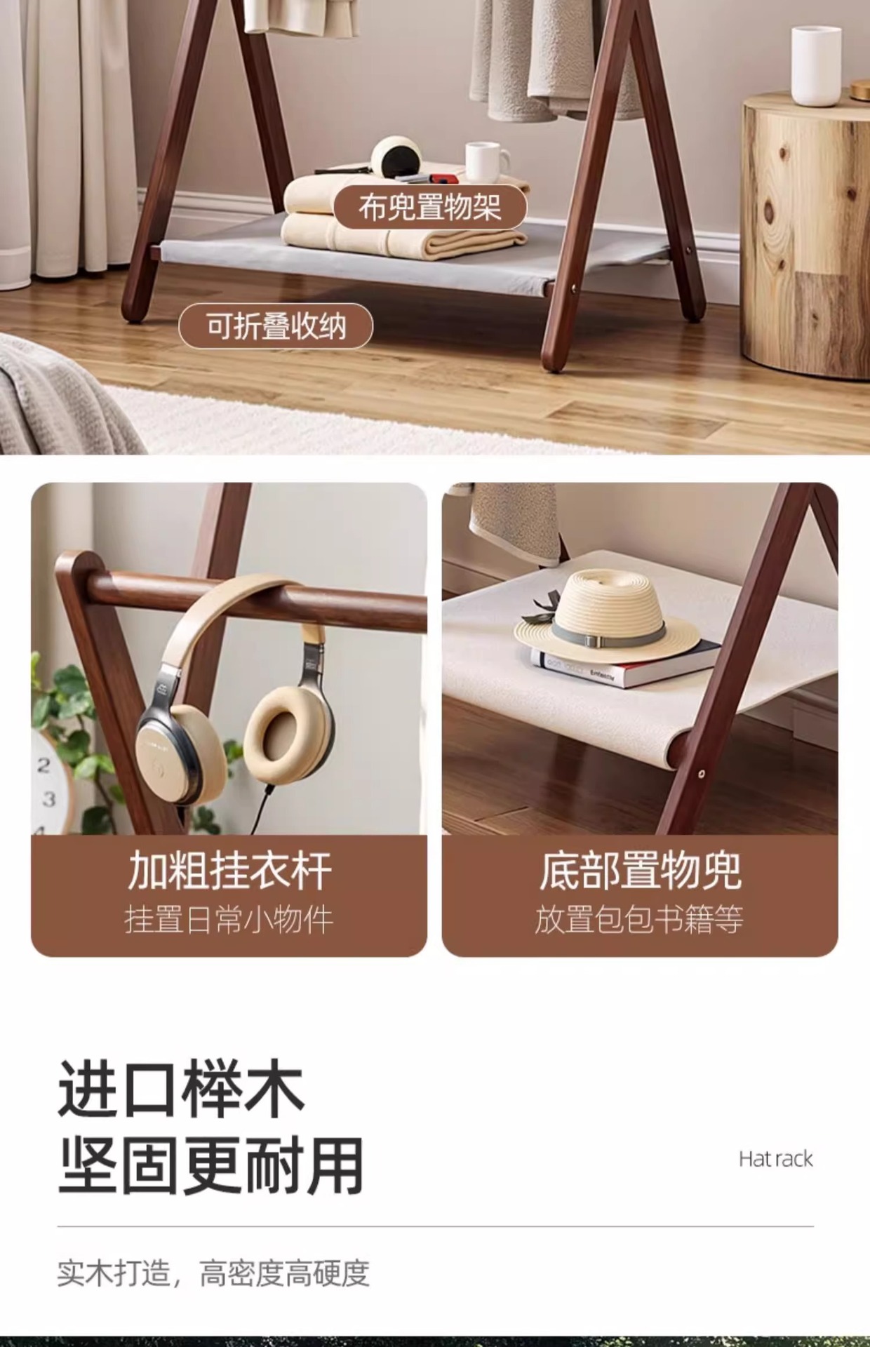 원목 옷걸이, 바닥에 올려놓은 침대 옆에 밤에 옷을 걸 수 있는 가정용 침실 옷걸이, 옷을 벗어 놓은 후 세탁할 수 있는 옷걸이스토어 가기