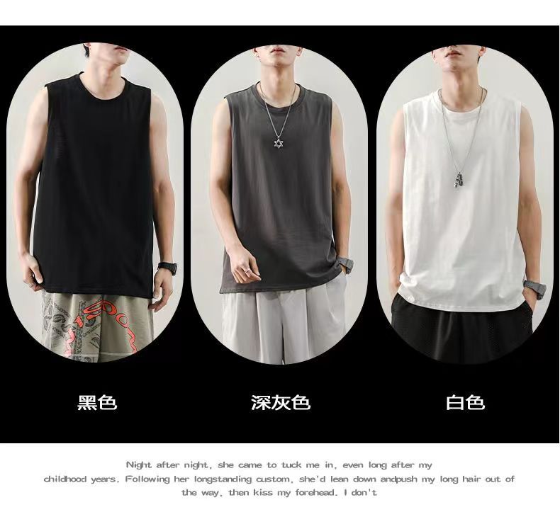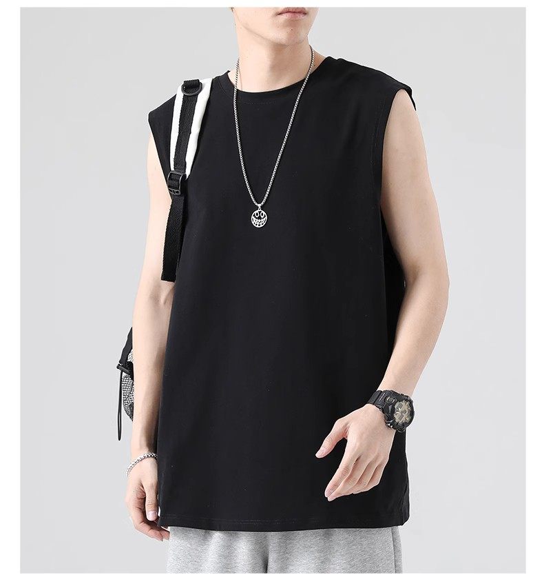 공장 직접 조끼 남자 여름 야외 농구 피트니스 허들 스포츠 넓은 어깨 단색 민소매 라운드 넥 셔츠스토어 가기