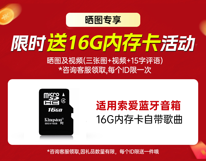 • [컬렉션 + 장바구니] 1년 교체 혜택을 누리고 사진을 게시하면 노래가 포함된 16G 메모리 카드를 받을 수 있습니다.