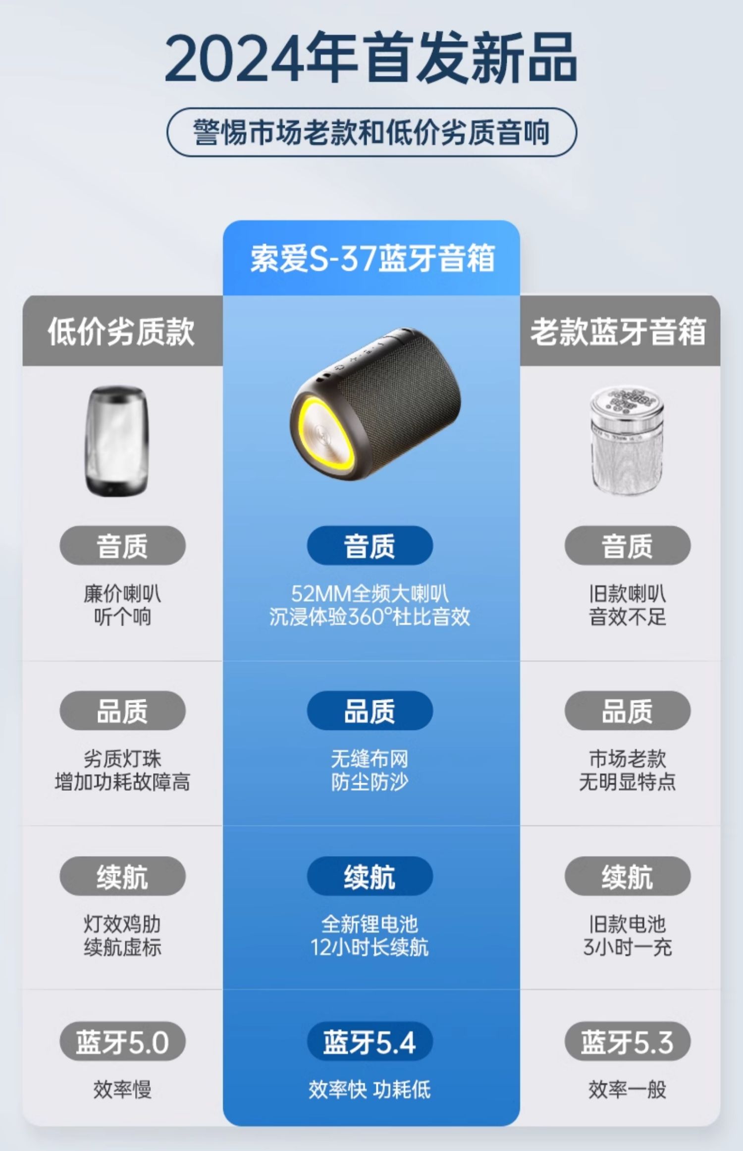 무료 배송 S37 블루투스 스피커 고품질 스피커 무선 소형 미니 2024 새로운 야외 휴대용 저음스토어 가기