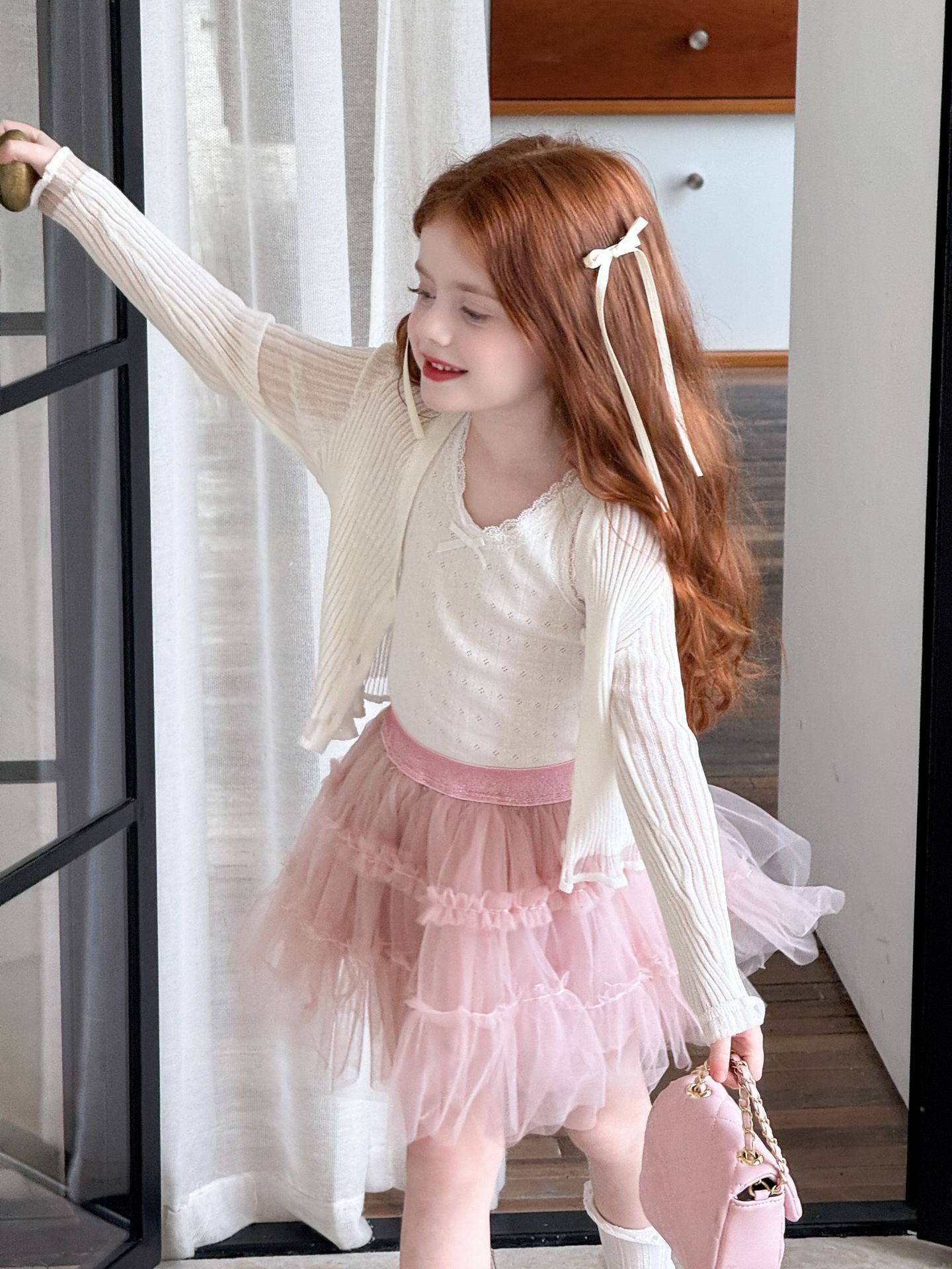 소녀 리넨 카디건 2025 여름 새로운 도착 간단한 올매치 니트 카디건 아기 여성 선스크린 에어컨 셔츠 재킷