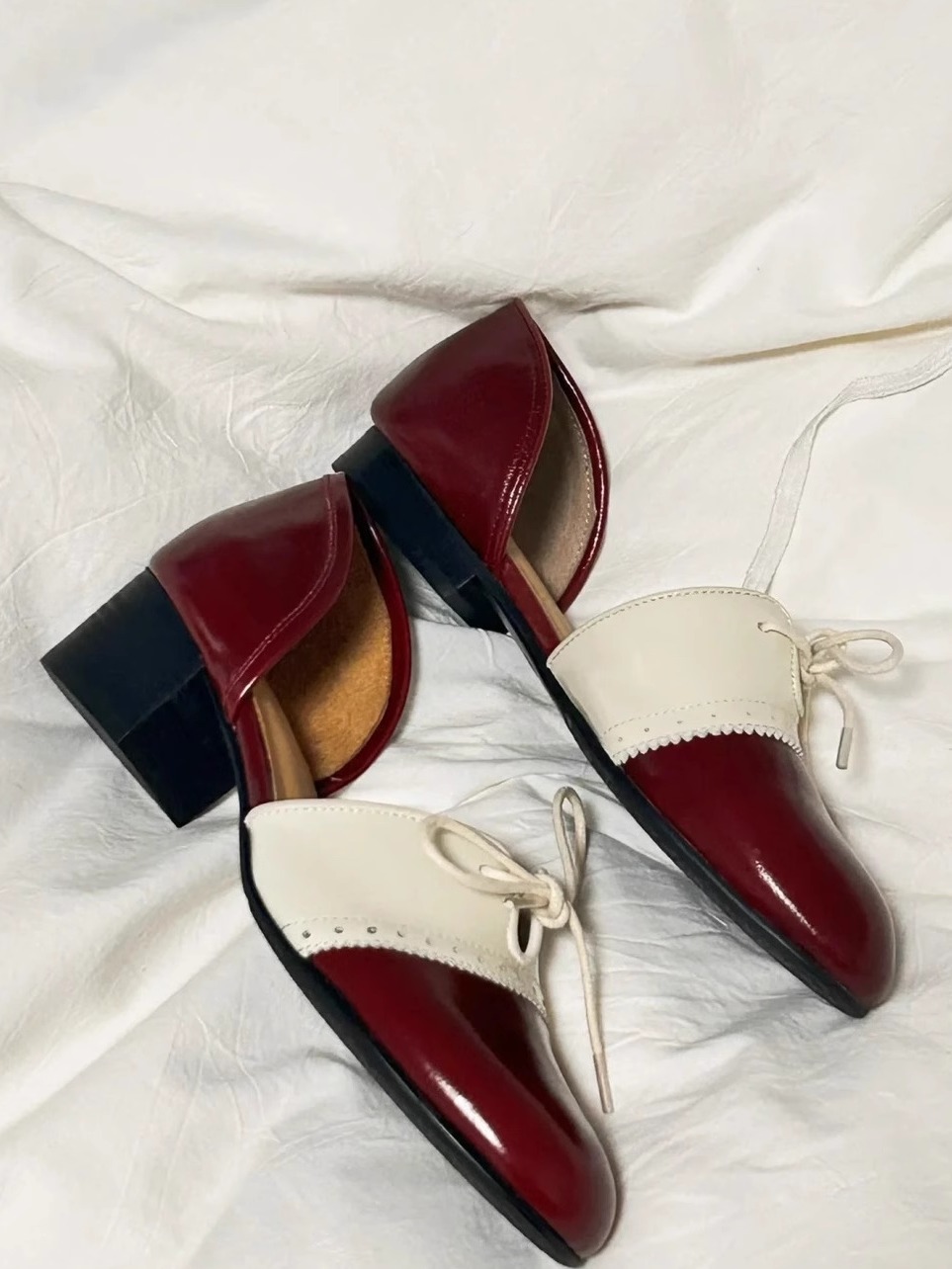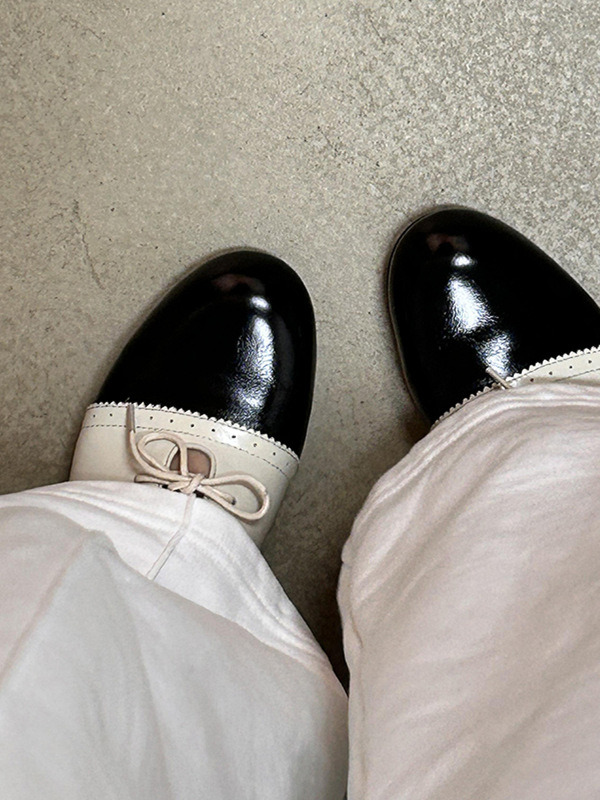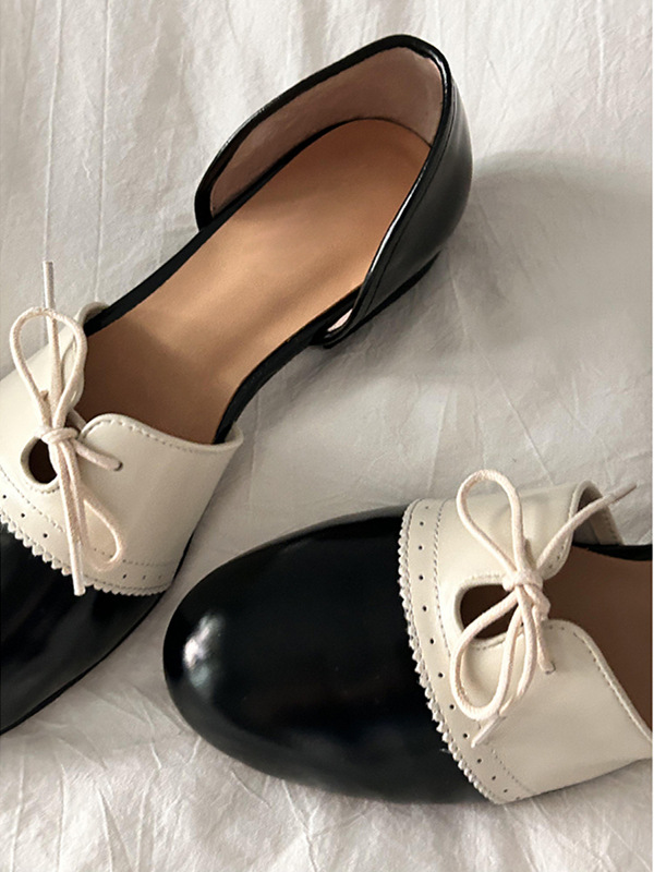 Cowhide Edition ~ 일본 복고풍 얕은 입 메리 제인 신발 여성 예술적 색상 매칭 레이스 업 플랫 신발 편안한 가죽 신발스토어 가기