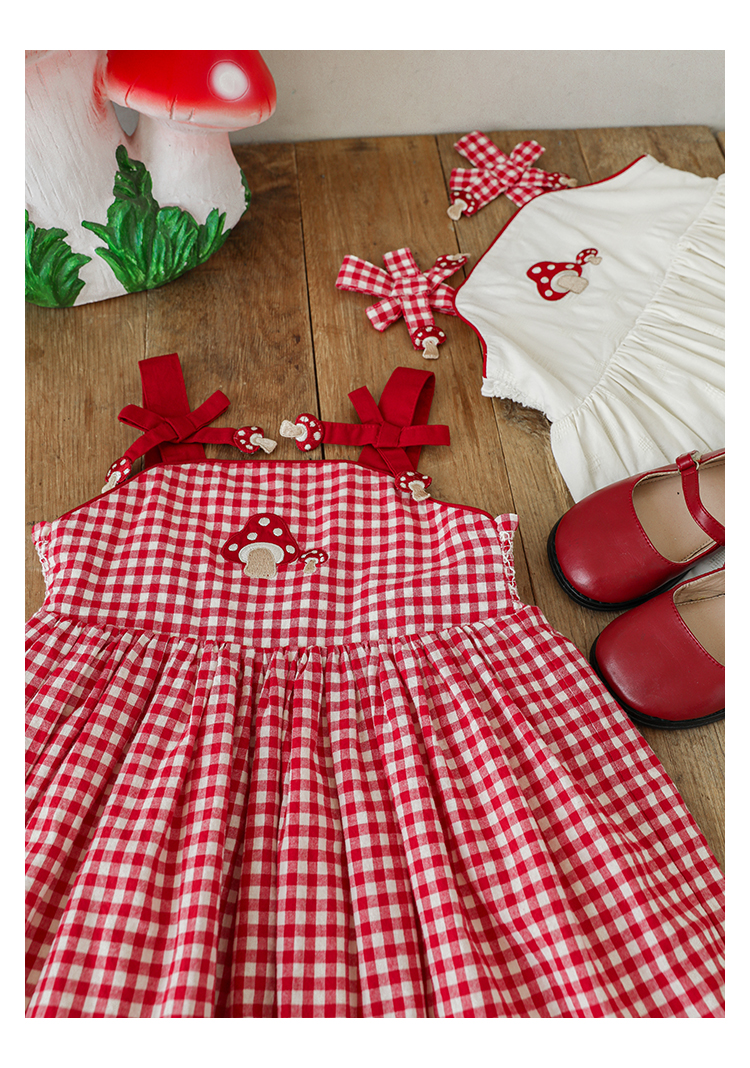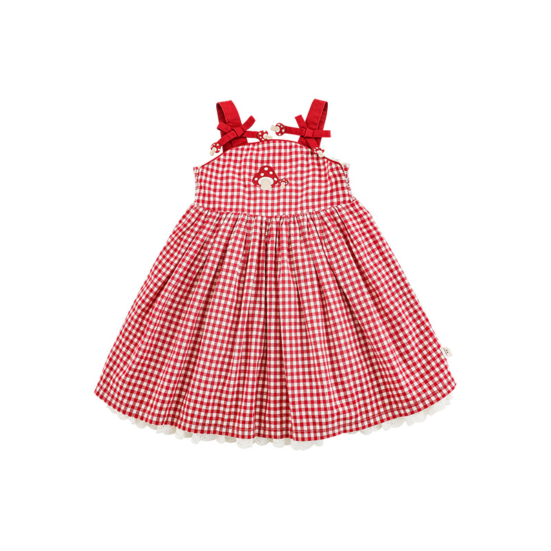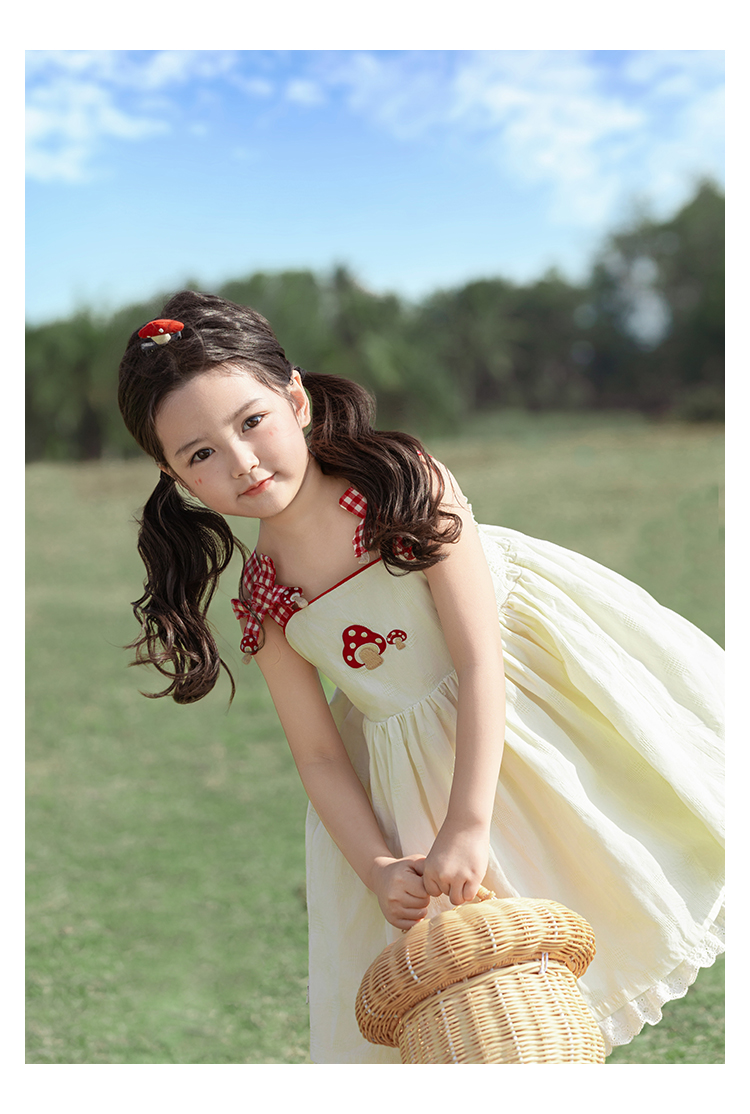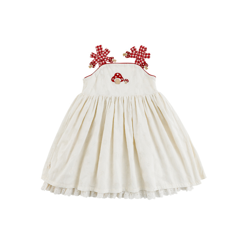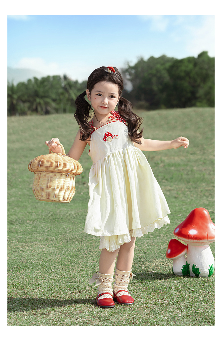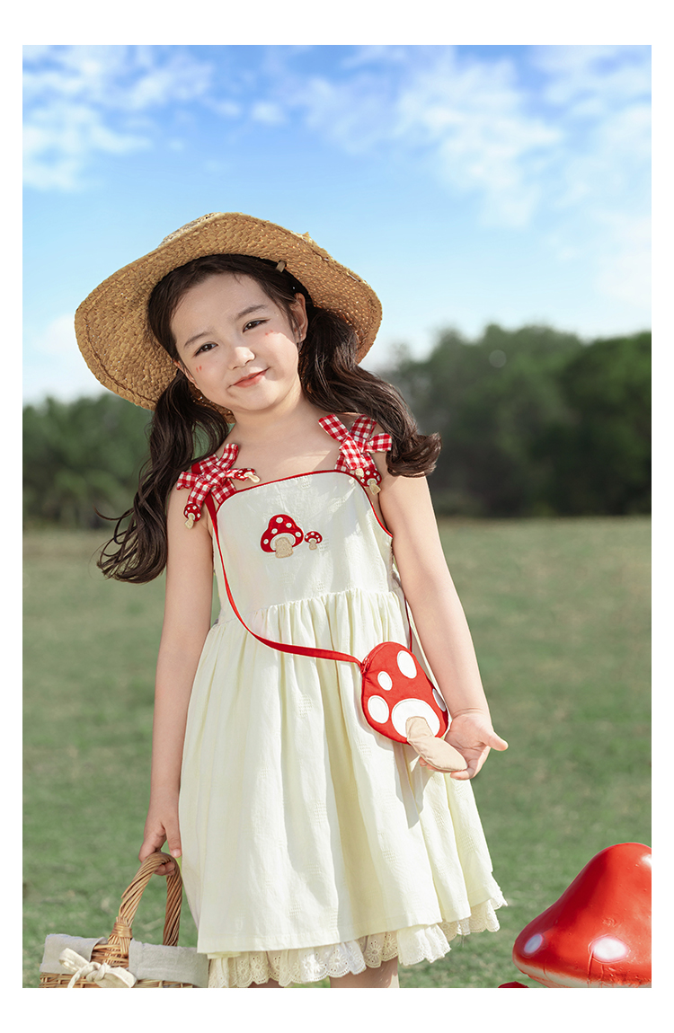 Wulibuyi 소녀 목가적 스타일 버섯 서스펜더 스커트 여름 어린이 달콤하고 귀여운 통기성 보우 드레스