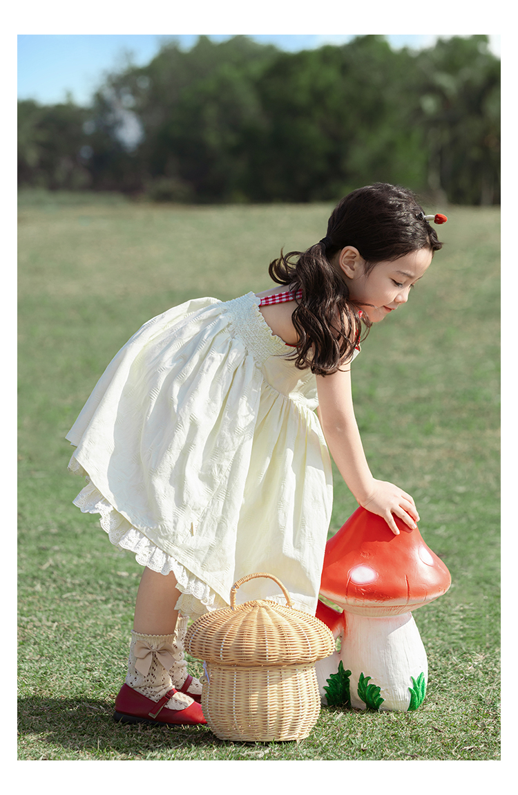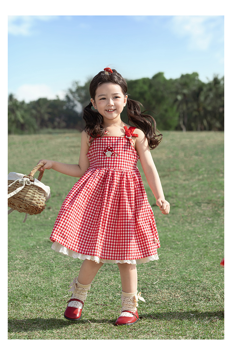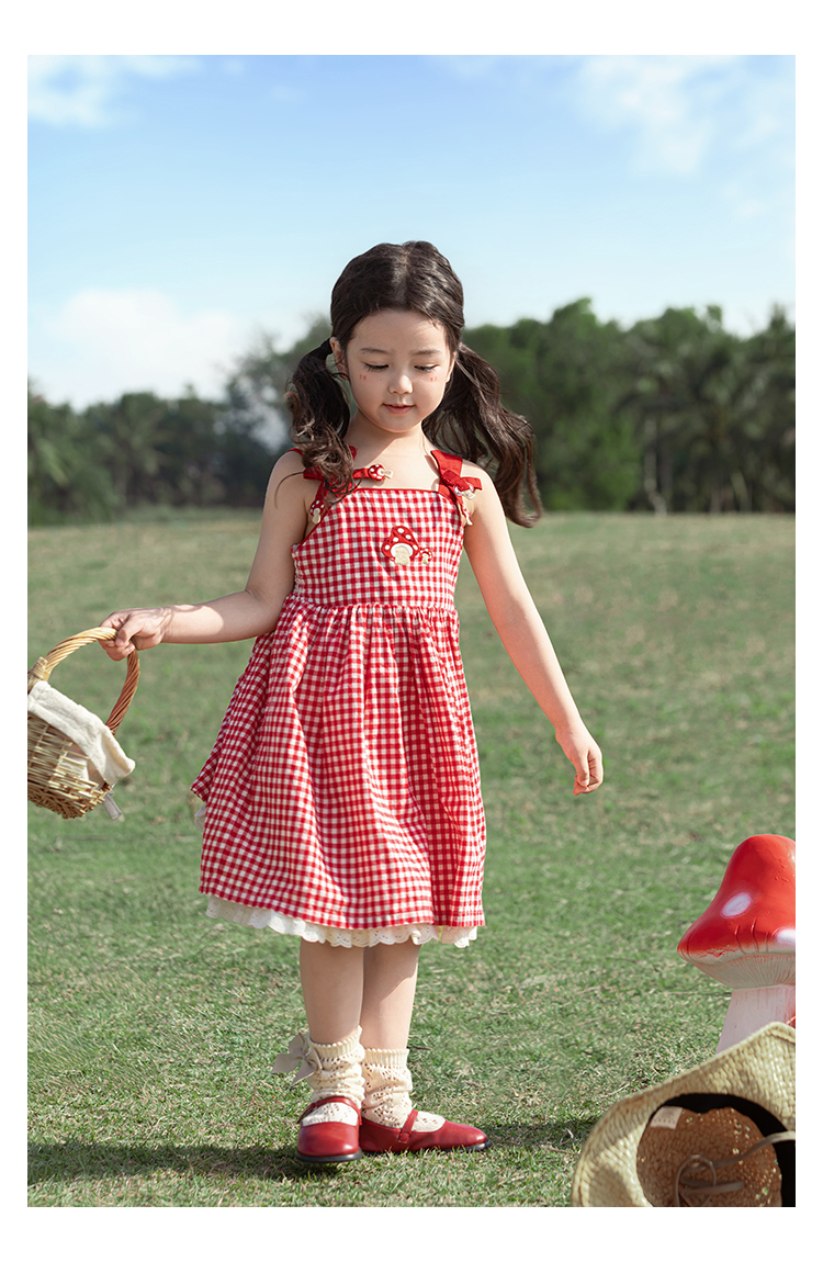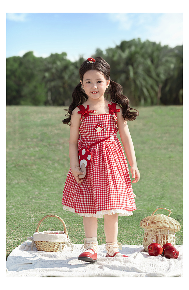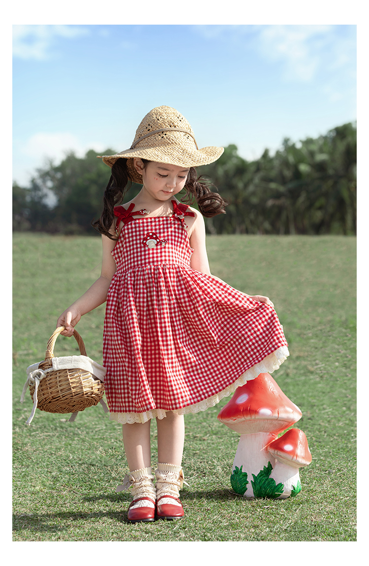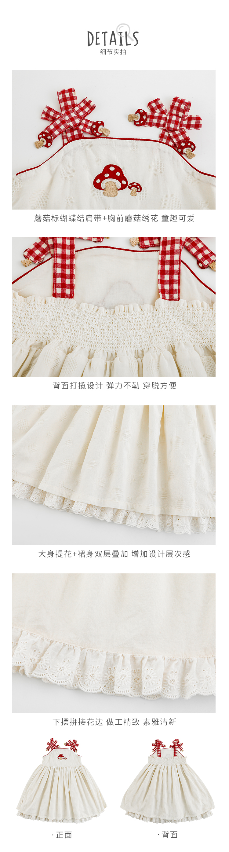 Wulibuyi 소녀 목가적 스타일 버섯 서스펜더 스커트 여름 어린이 달콤하고 귀여운 통기성 보우 드레스스토어 가기