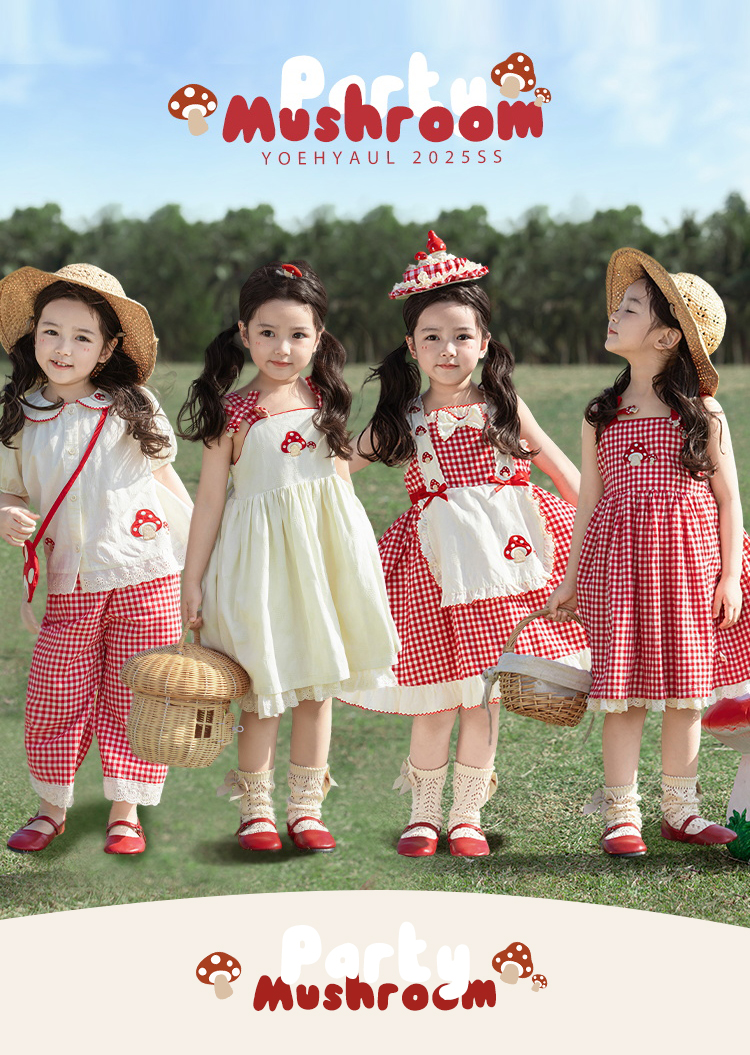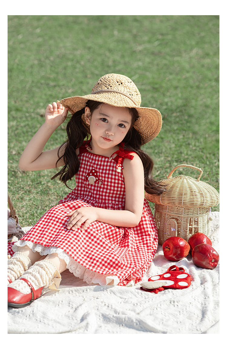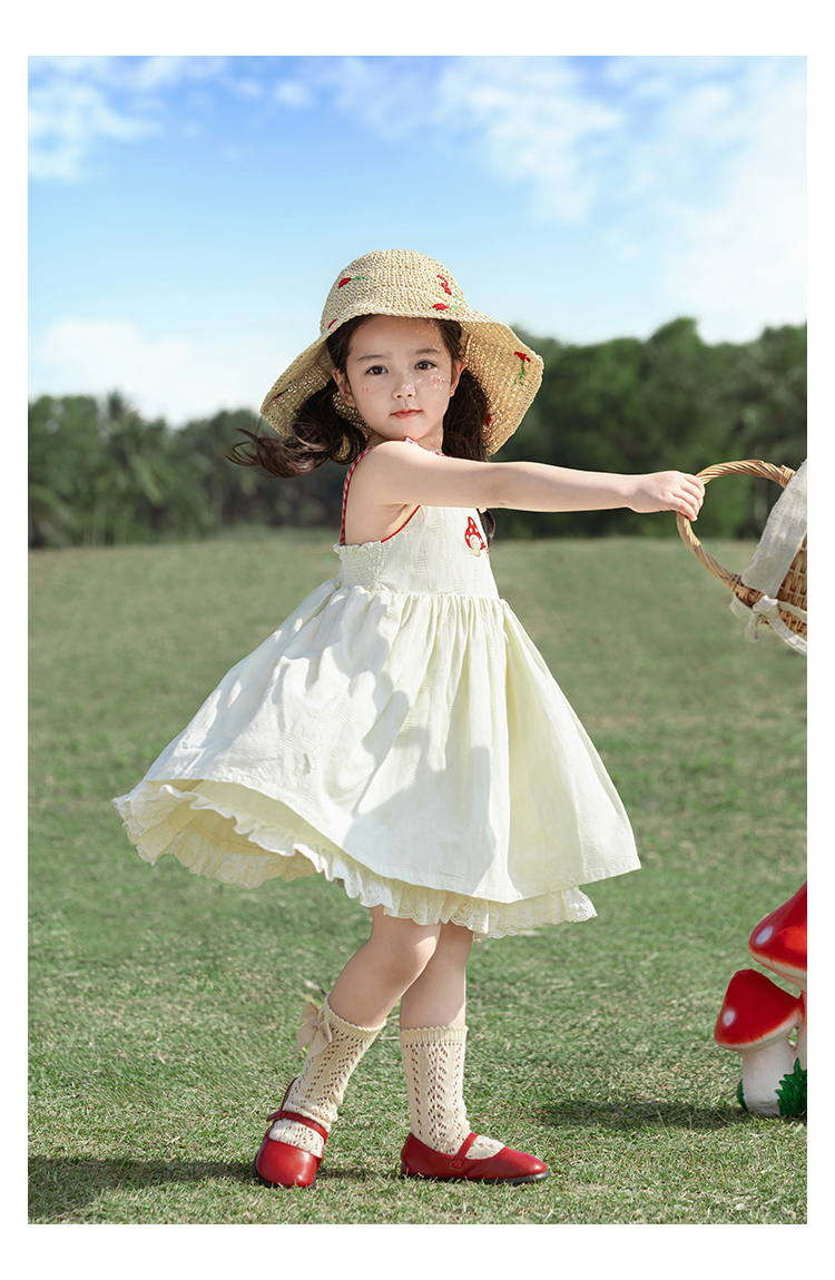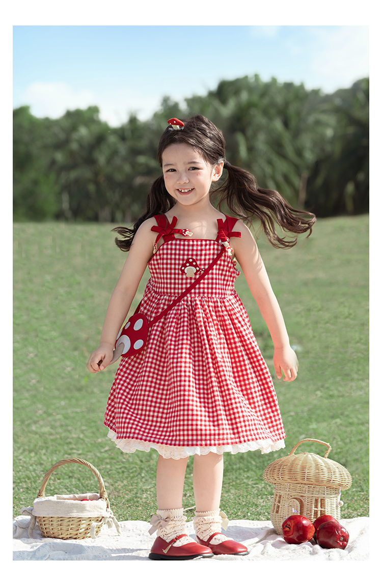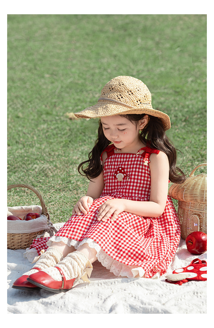 Wulibuyi 소녀 목가적 스타일 버섯 서스펜더 스커트 여름 어린이 달콤하고 귀여운 통기성 보우 드레스스토어 가기