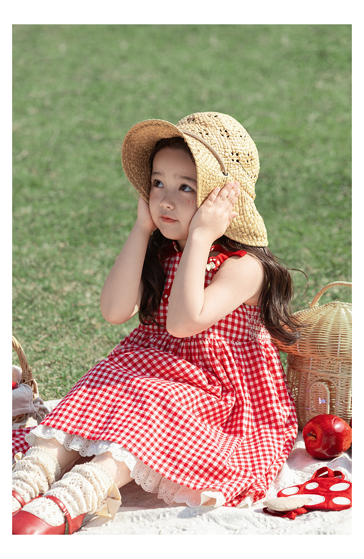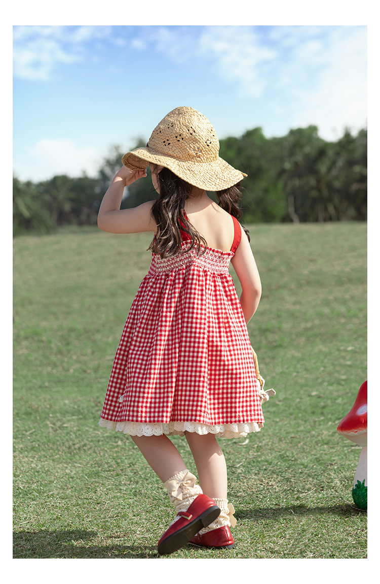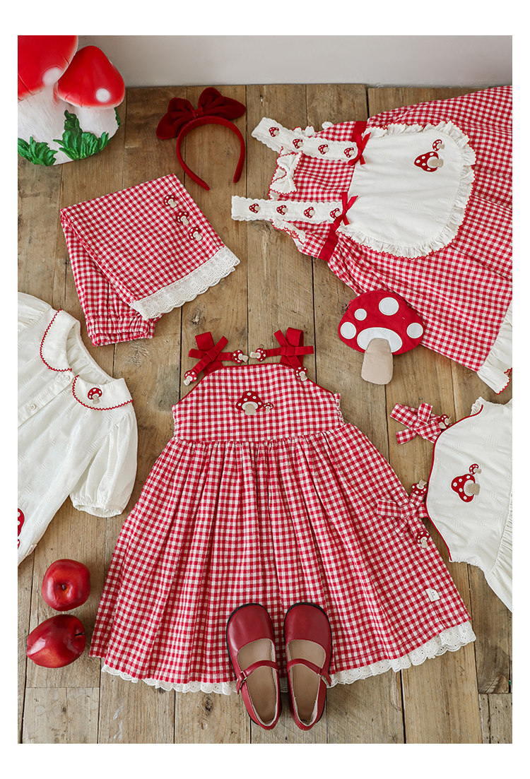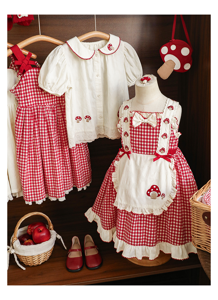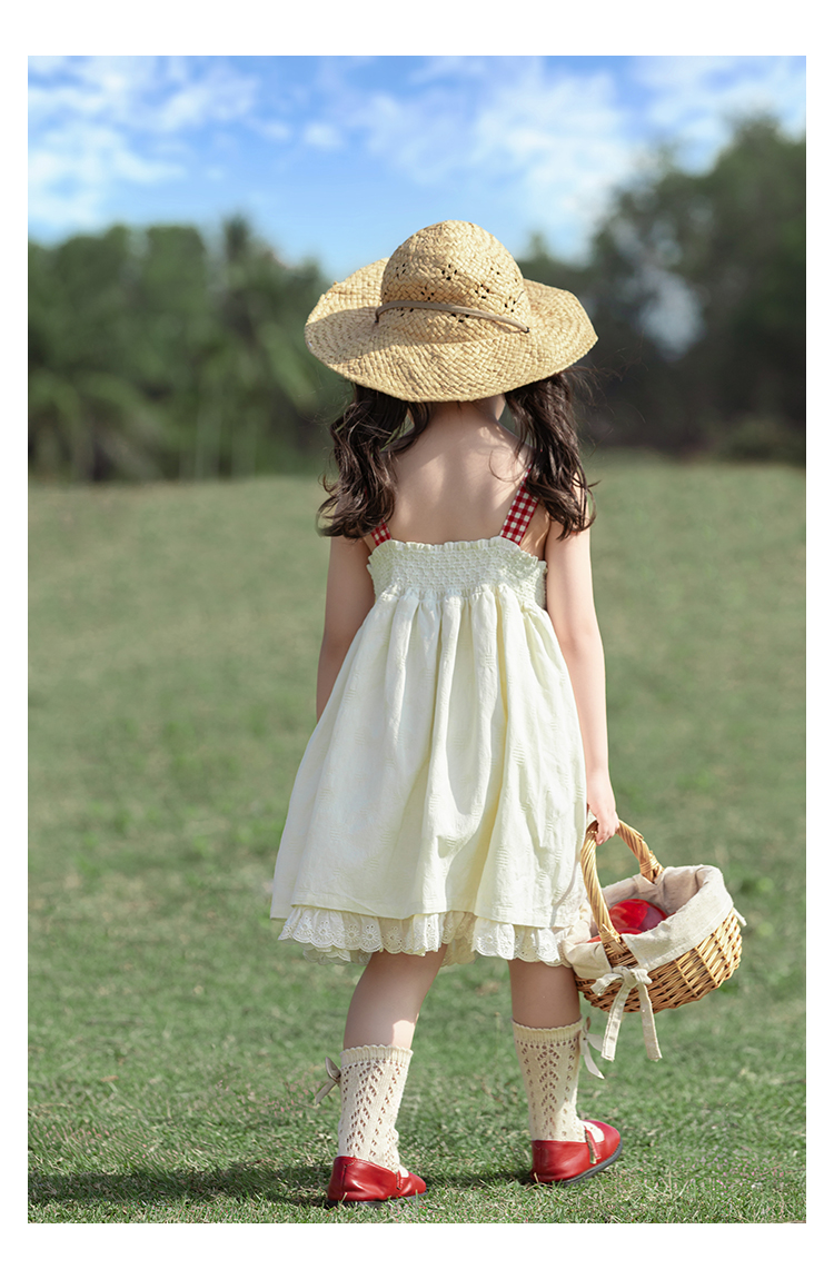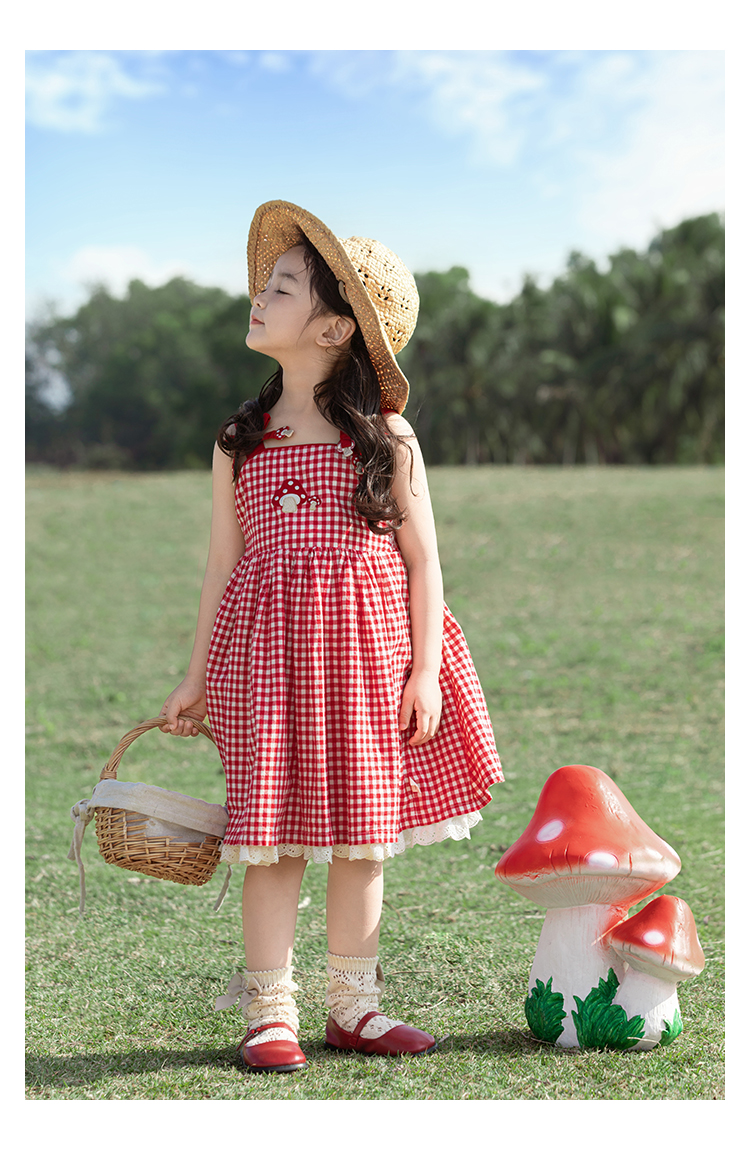 Wulibuyi 소녀 목가적 스타일 버섯 서스펜더 스커트 여름 어린이 달콤하고 귀여운 통기성 보우 드레스스토어 가기
