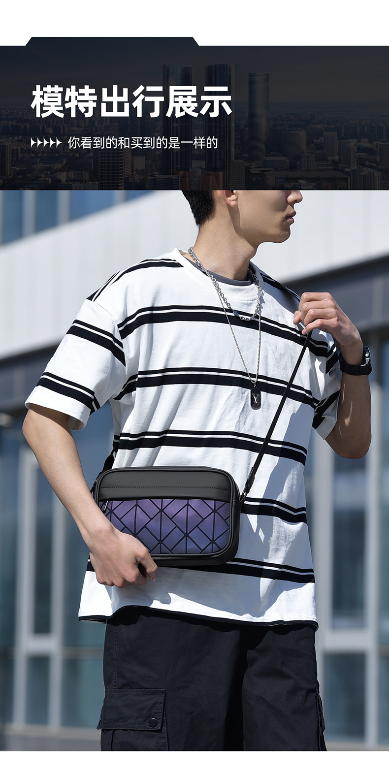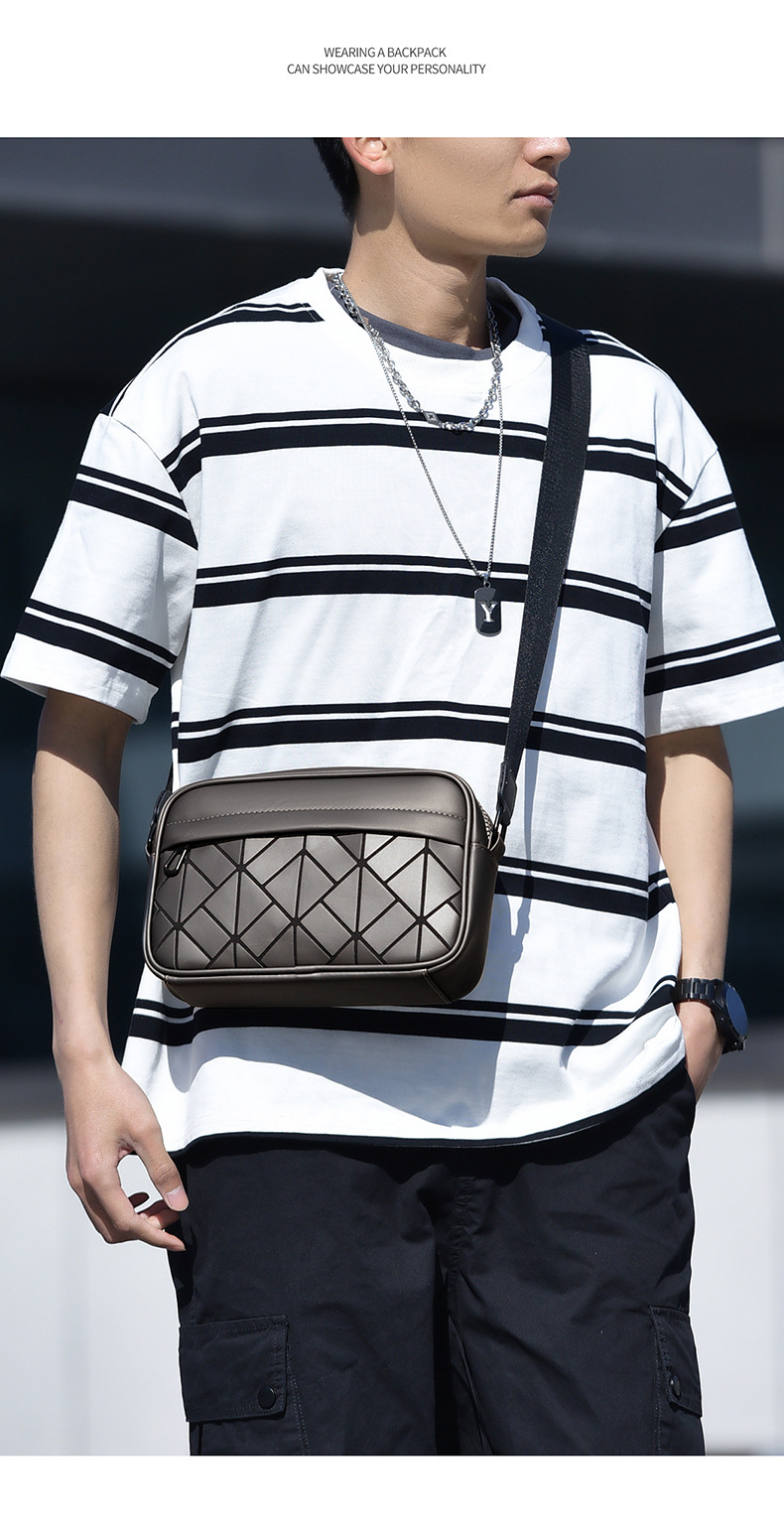 트렌디 한 브랜드 남성용 가방 하이 엔드 센스 크로스 바디 남성용 가방 Rhomboid 가죽 배낭 캐주얼 어깨 가방 작은 사각형 가방
