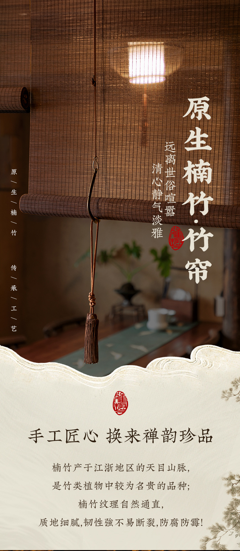 빈티지 후크 대나무 커튼 선택 첫 번째 레이어 실크 차 요리 공예 호텔 중국 클럽 대나무 롤러 커튼