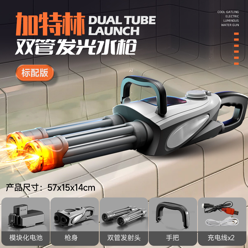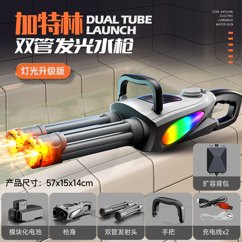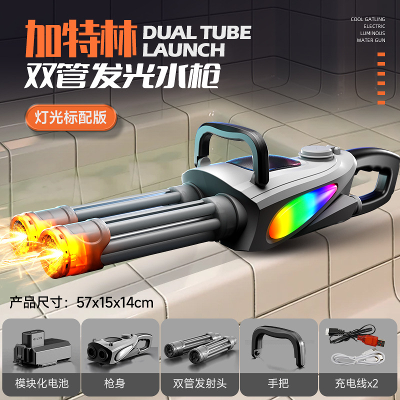 전기 더블 튜브 개틀 흐르는 빛 어린이 물총 장난감 대용량 소년 물 스플래시 축제 회전 배럴