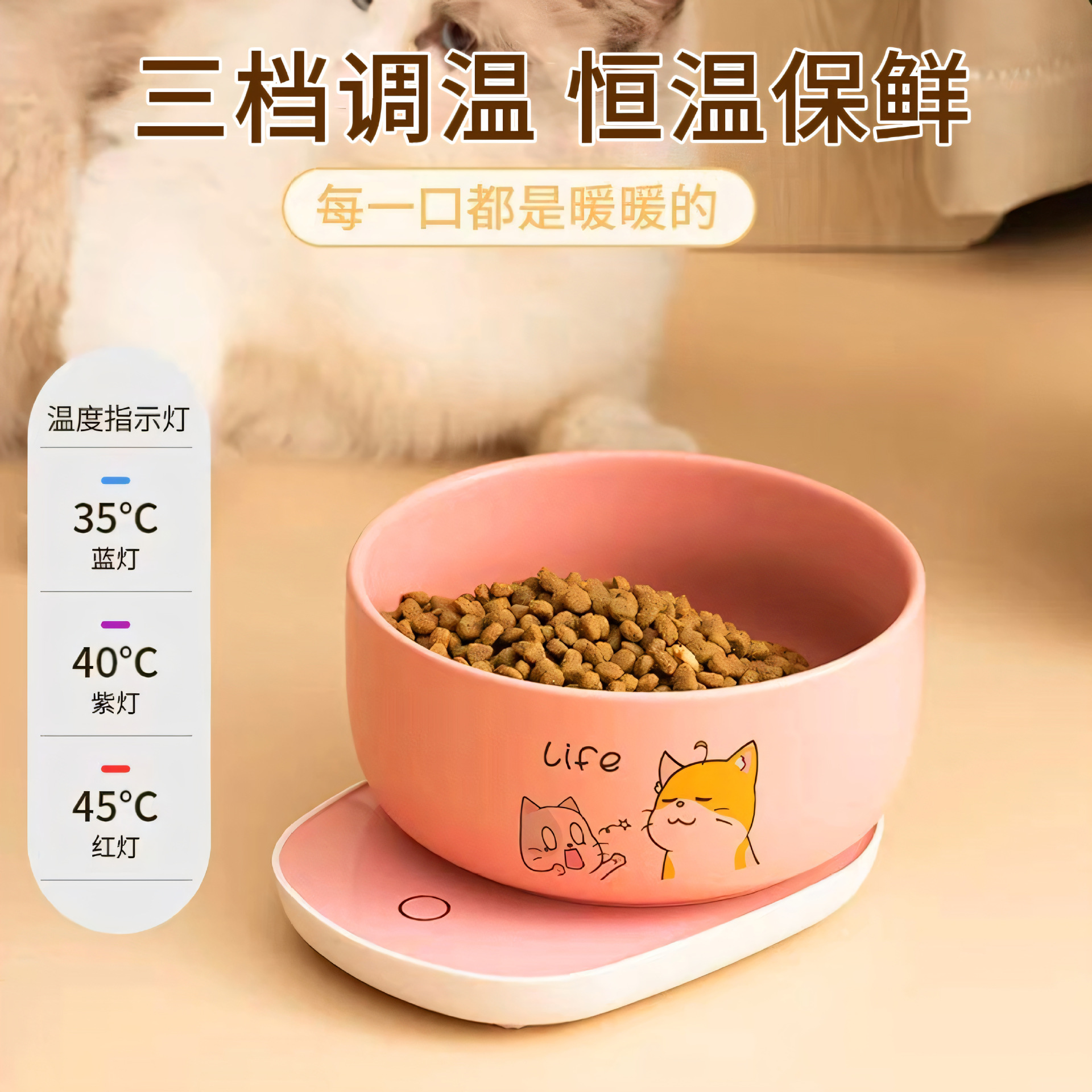 • 【350ml】스노우 화이트 대화 고양이 세라믹 그릇 + 3단 온도 조절 가능 온도 조절 패드