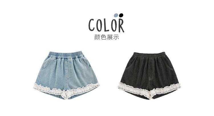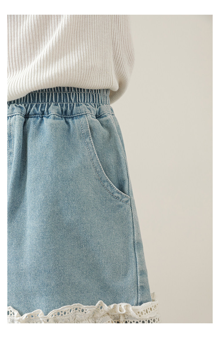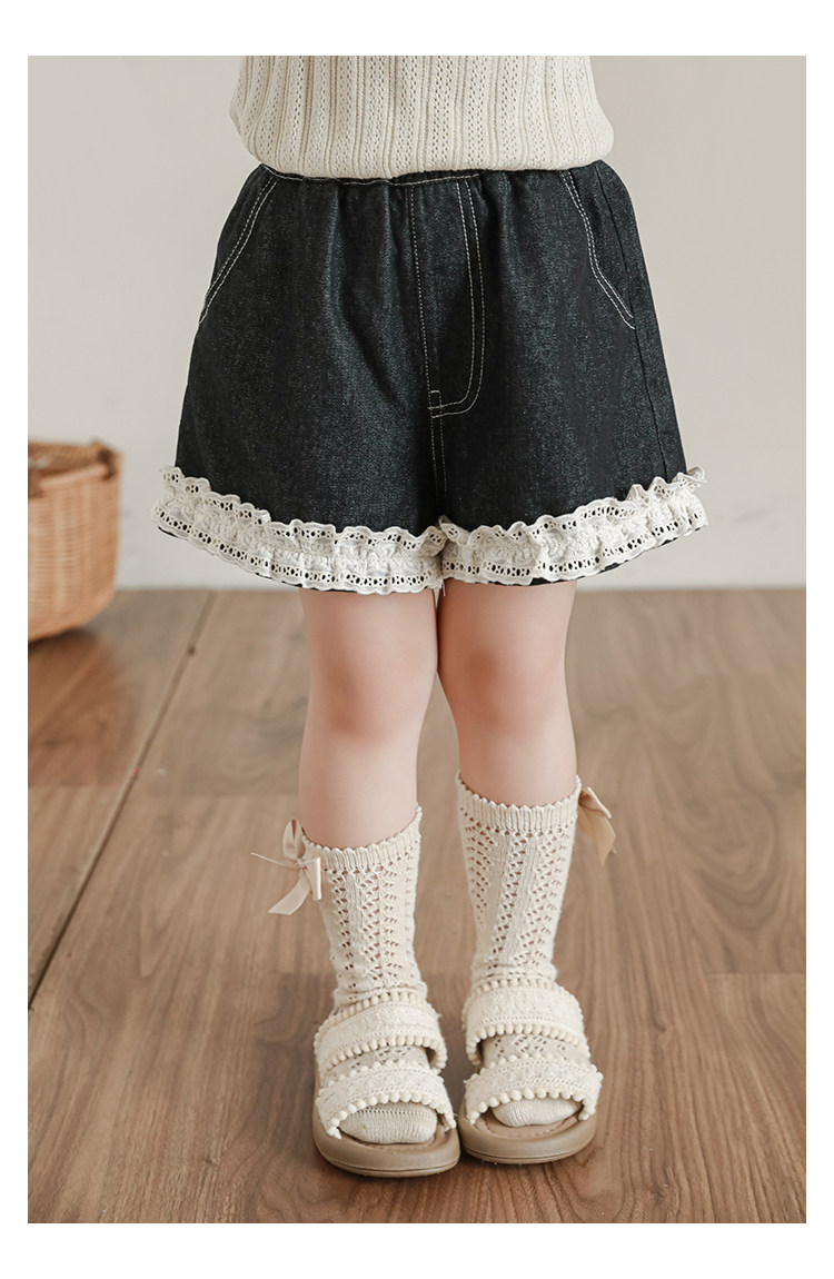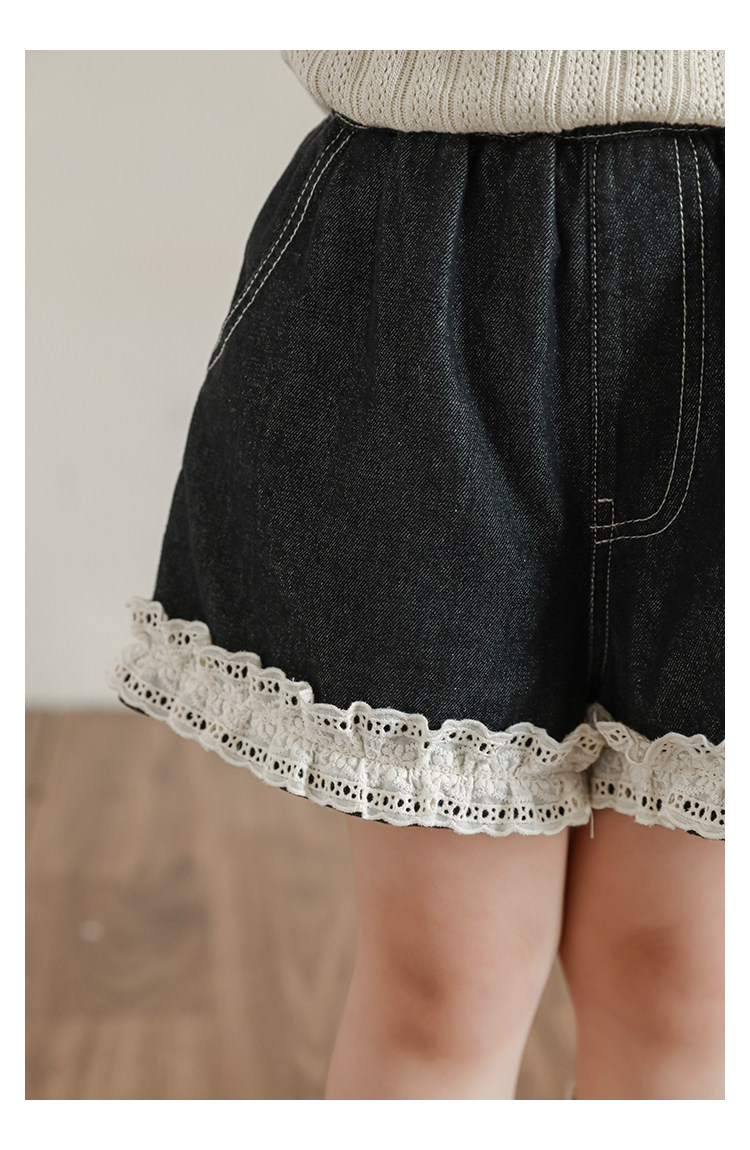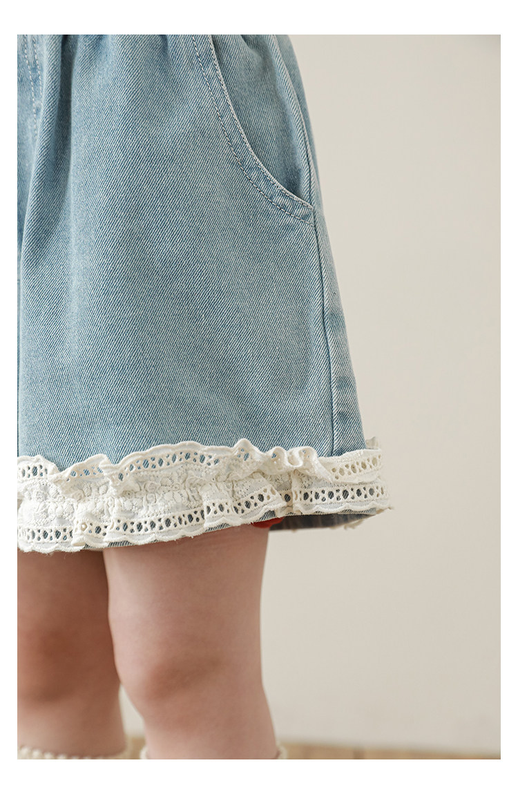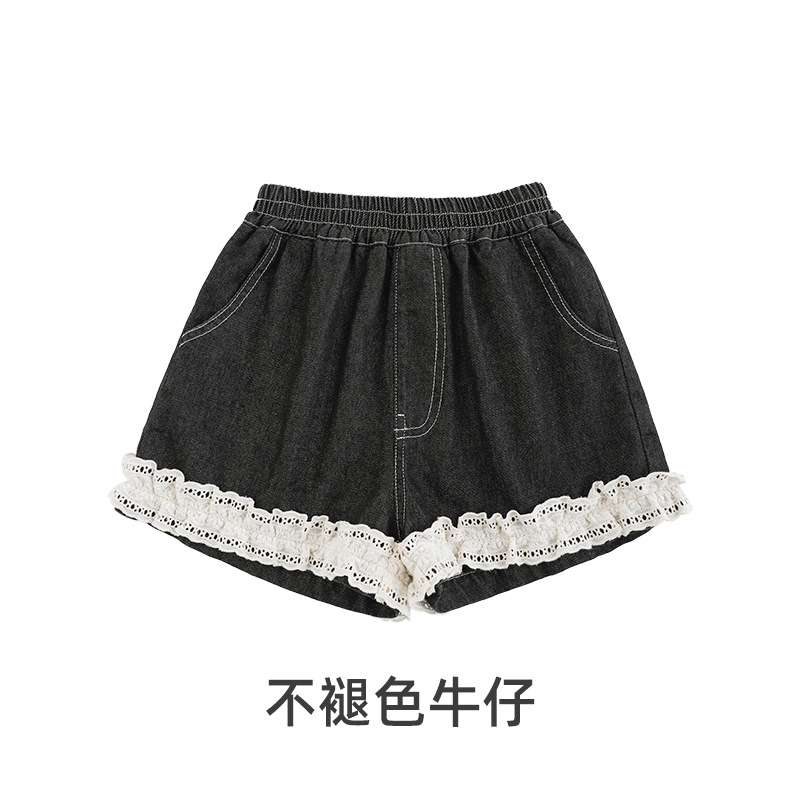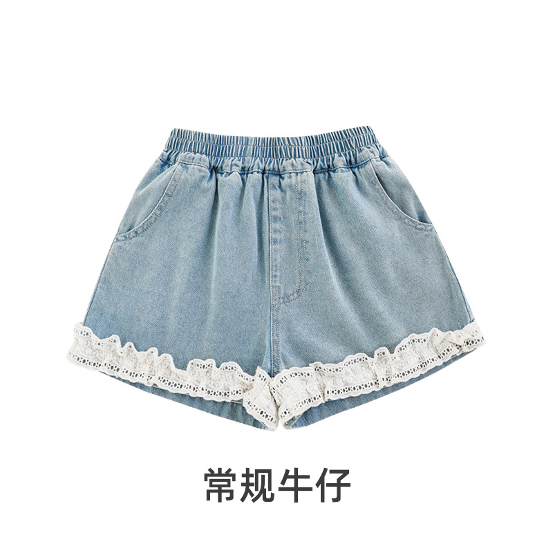 Wulibuyi 소녀 중공 레이스 레이스 데님 반바지 2025 여름 어린이 달콤하고 귀여운 상쾌한 바지