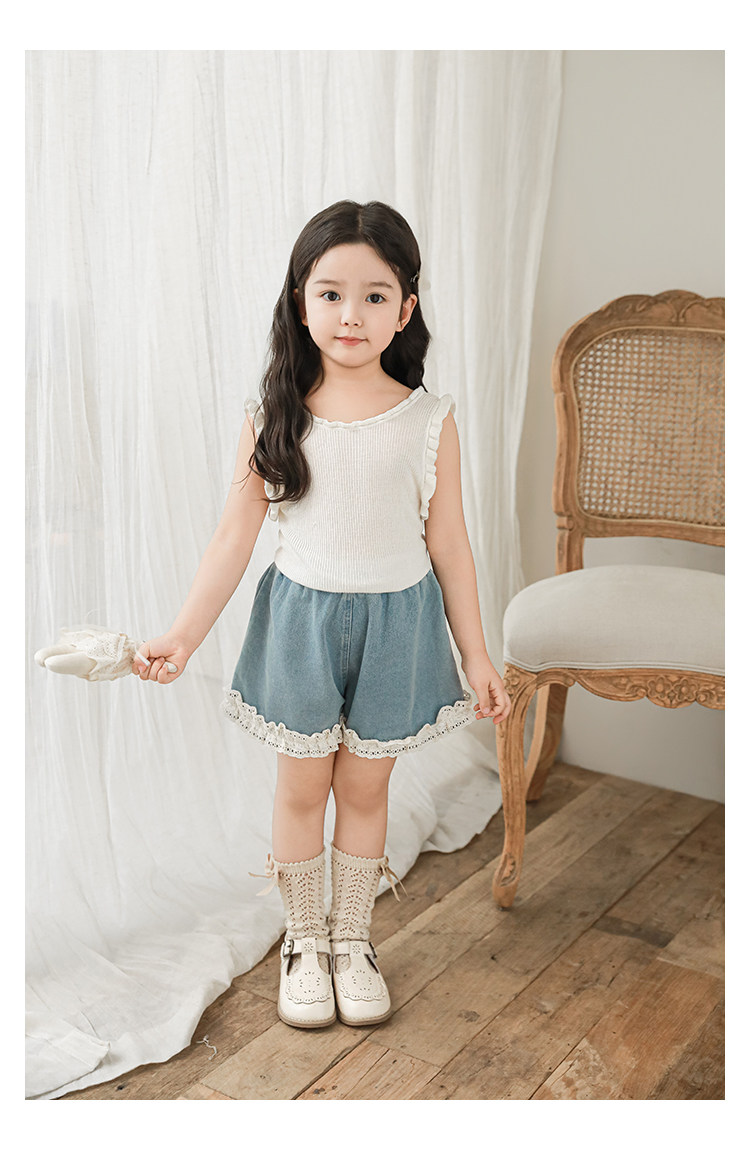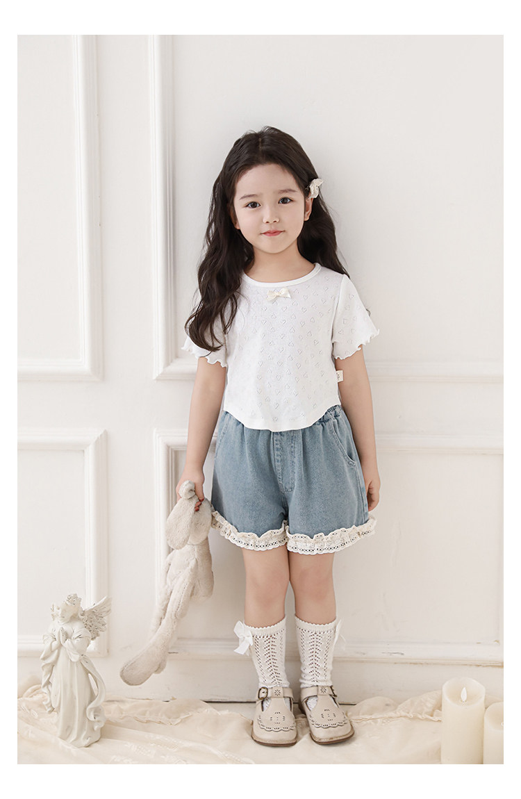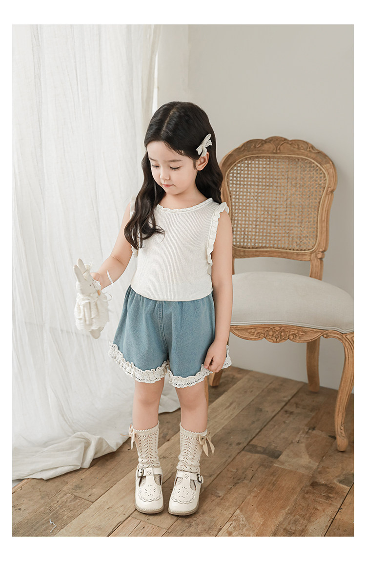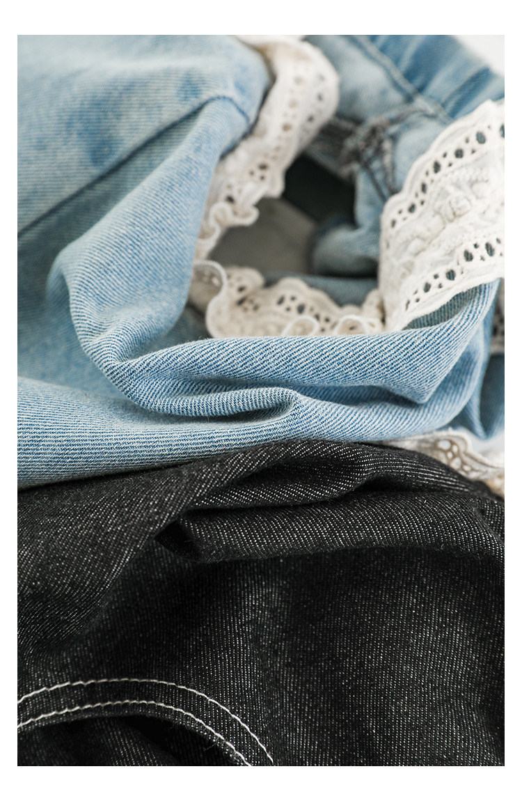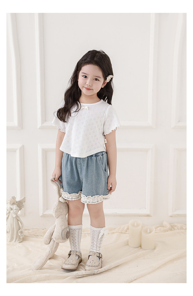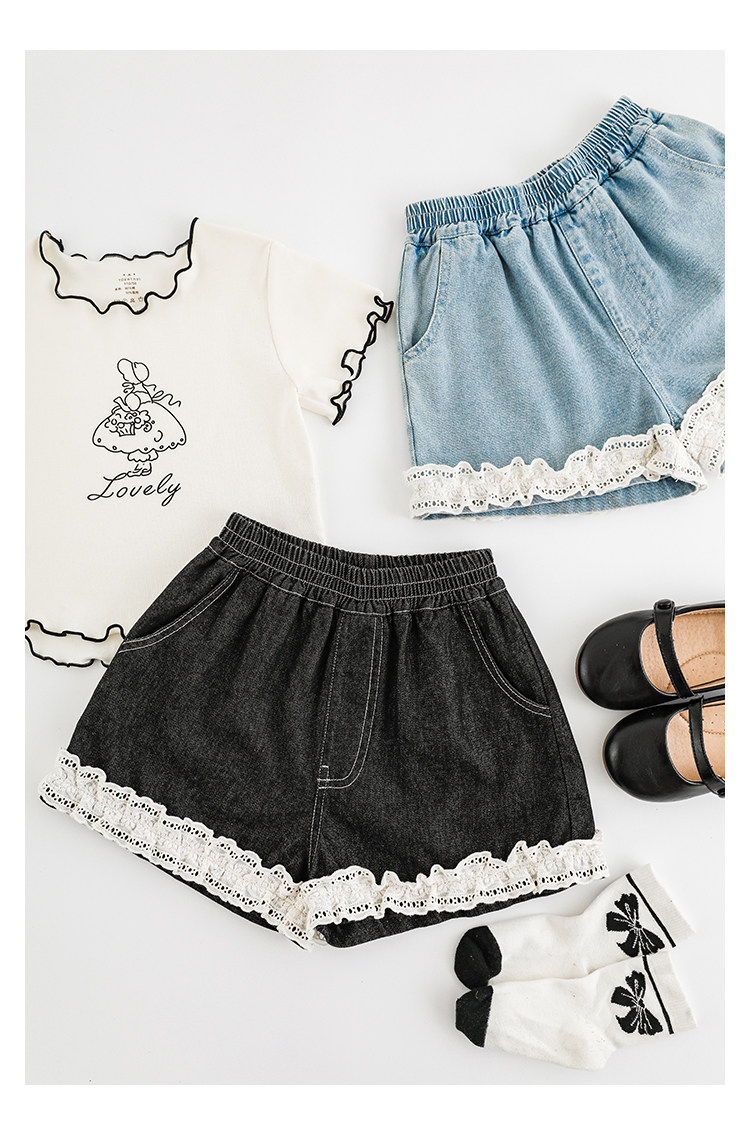 Wulibuyi 소녀 중공 레이스 레이스 데님 반바지 2025 여름 어린이 달콤하고 귀여운 상쾌한 바지