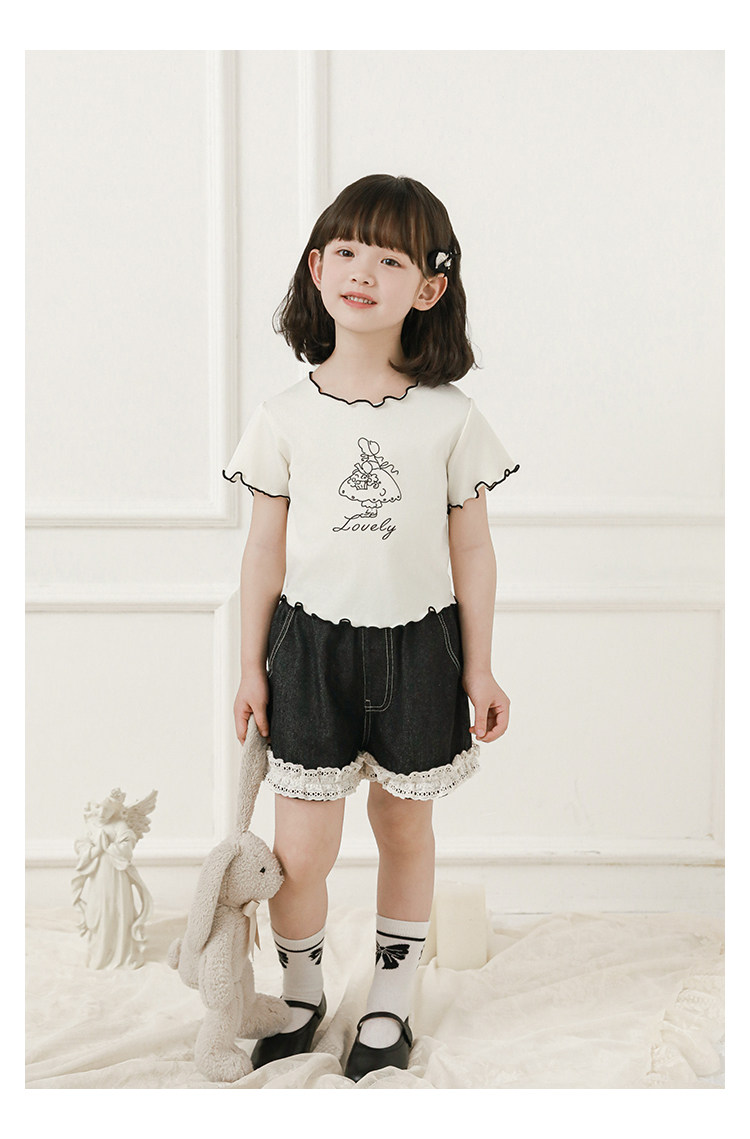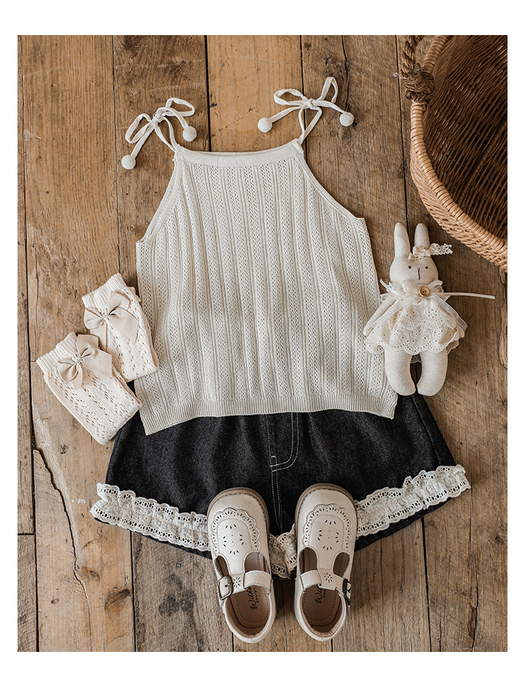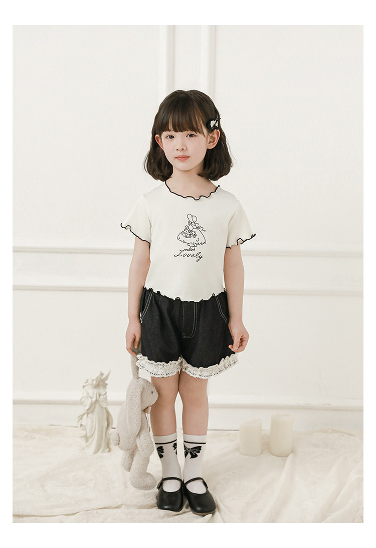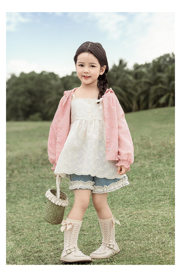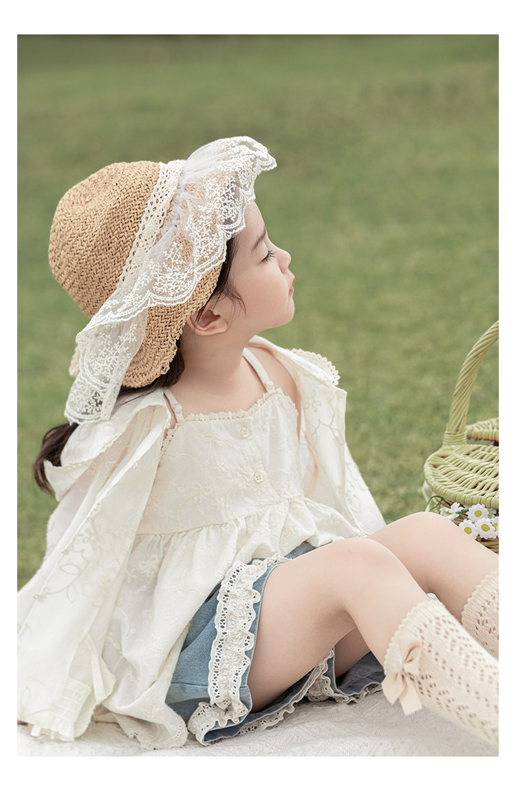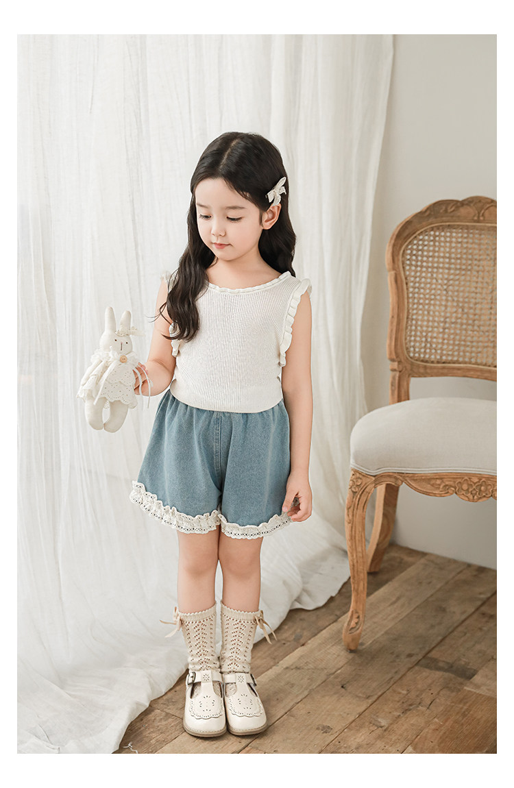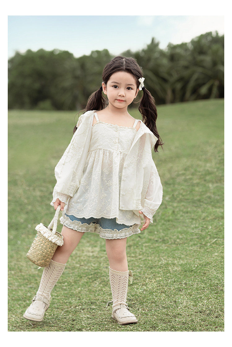 Wulibuyi 소녀 중공 레이스 레이스 데님 반바지 2025 여름 어린이 달콤하고 귀여운 상쾌한 바지