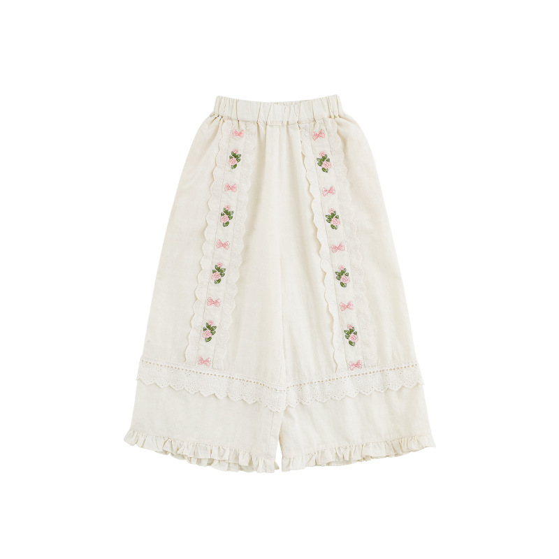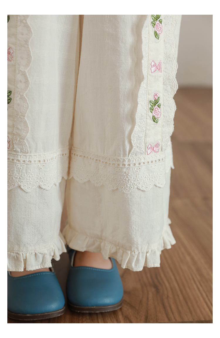 Wuri Boo 소녀의 여름 세트 곰팡이 레이스 셔츠 크로 셰 뜨개질 옷깃 원피스 할로우 레이스 바지