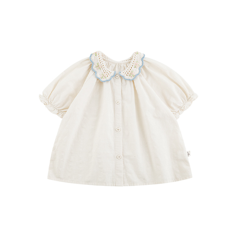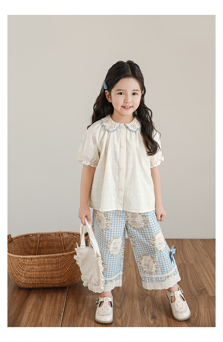 Wuri Boo 소녀의 여름 세트 곰팡이 레이스 셔츠 크로 셰 뜨개질 옷깃 원피스 할로우 레이스 바지스토어 가기