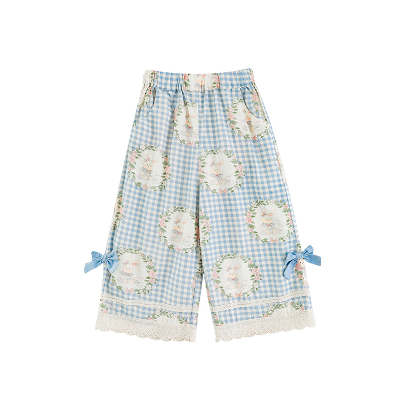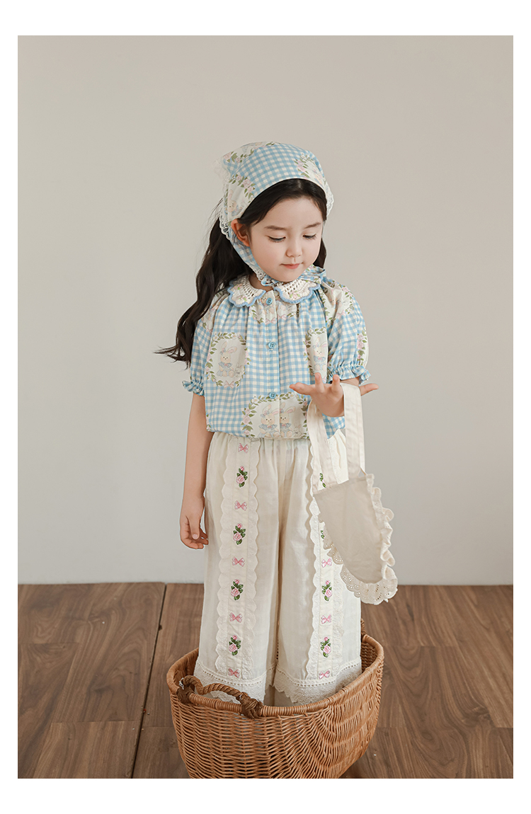 • 바지 블루 체크 무늬 토끼 X4993