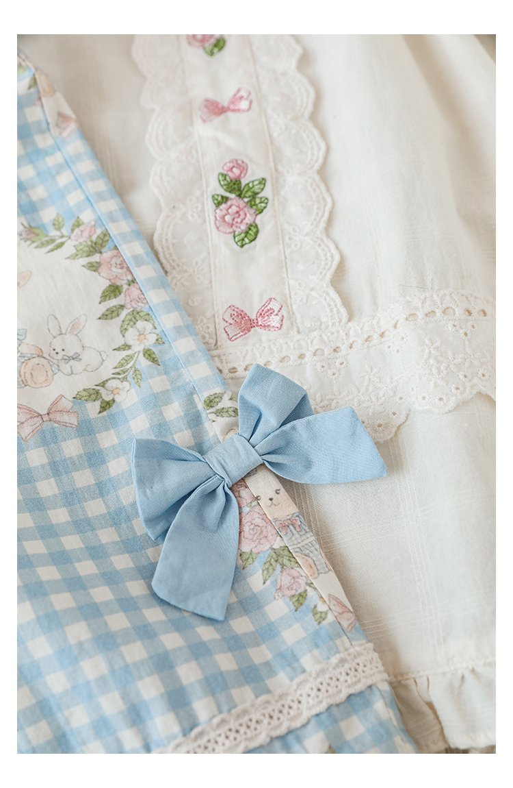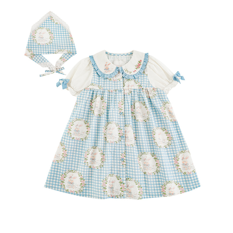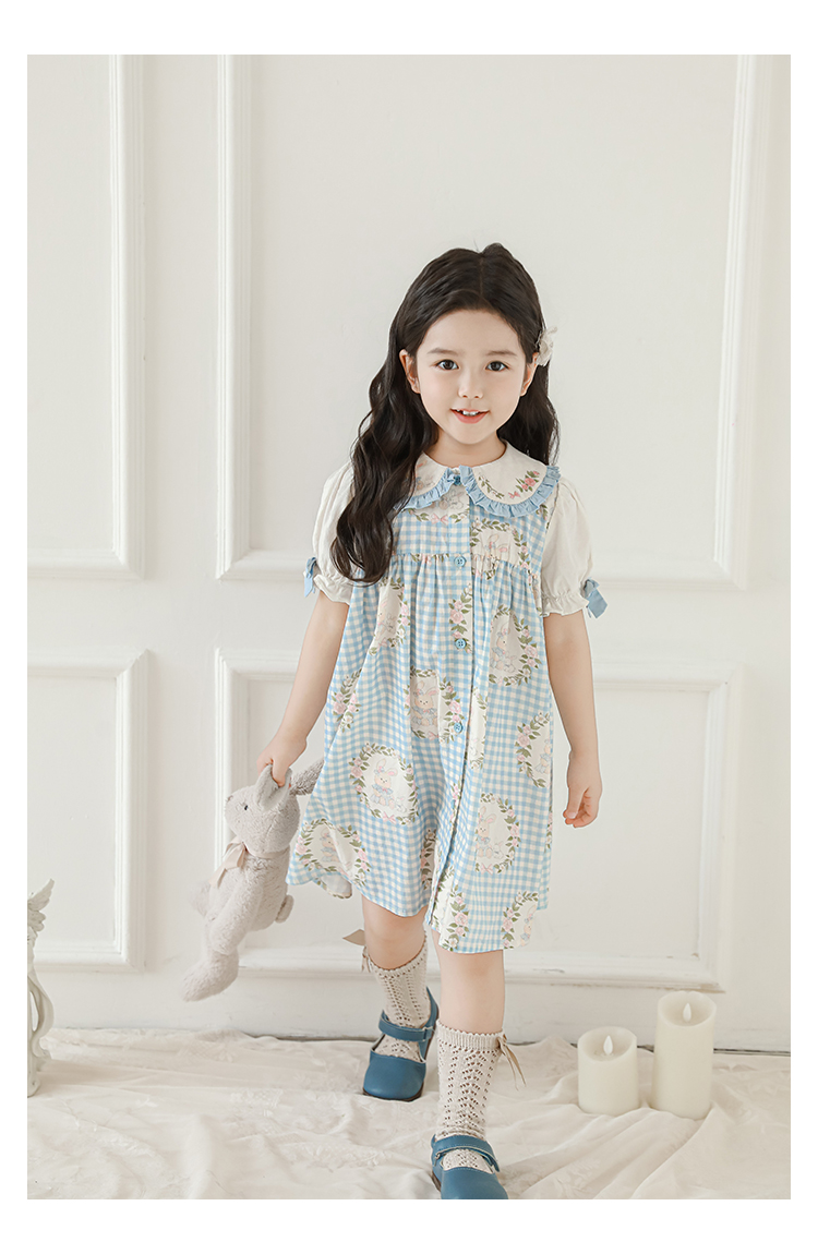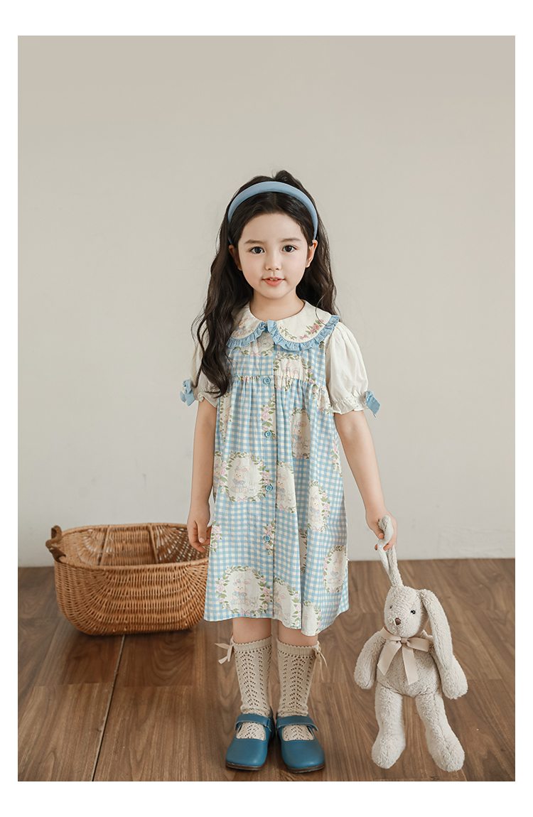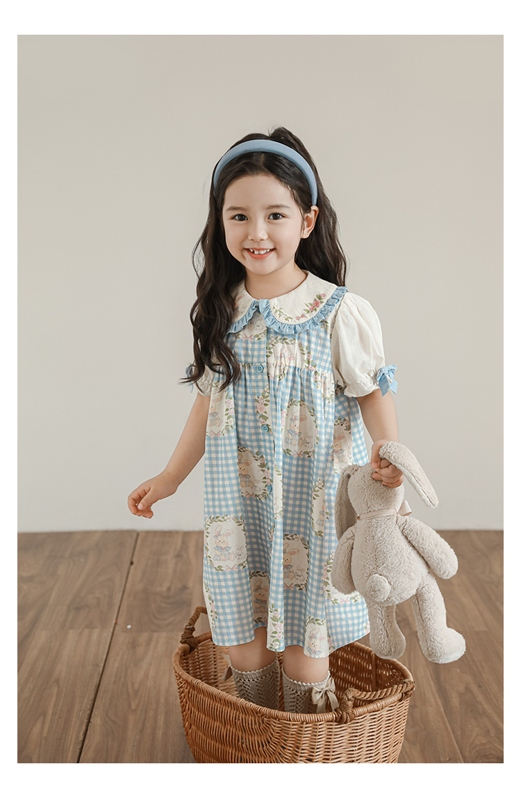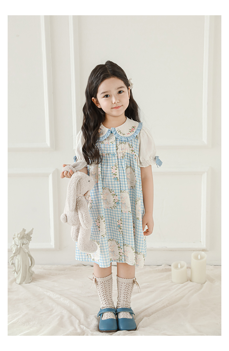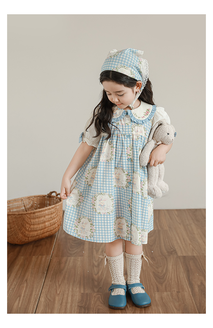 • 드레스 블루 체크무늬 토끼 X4991