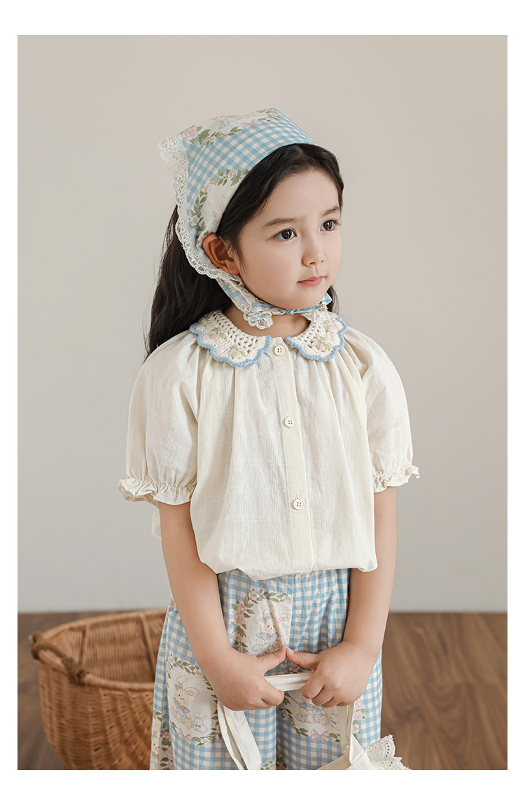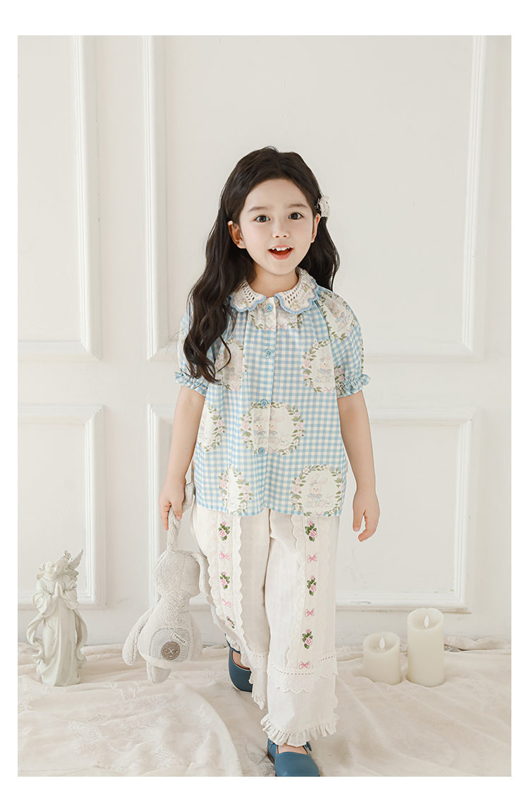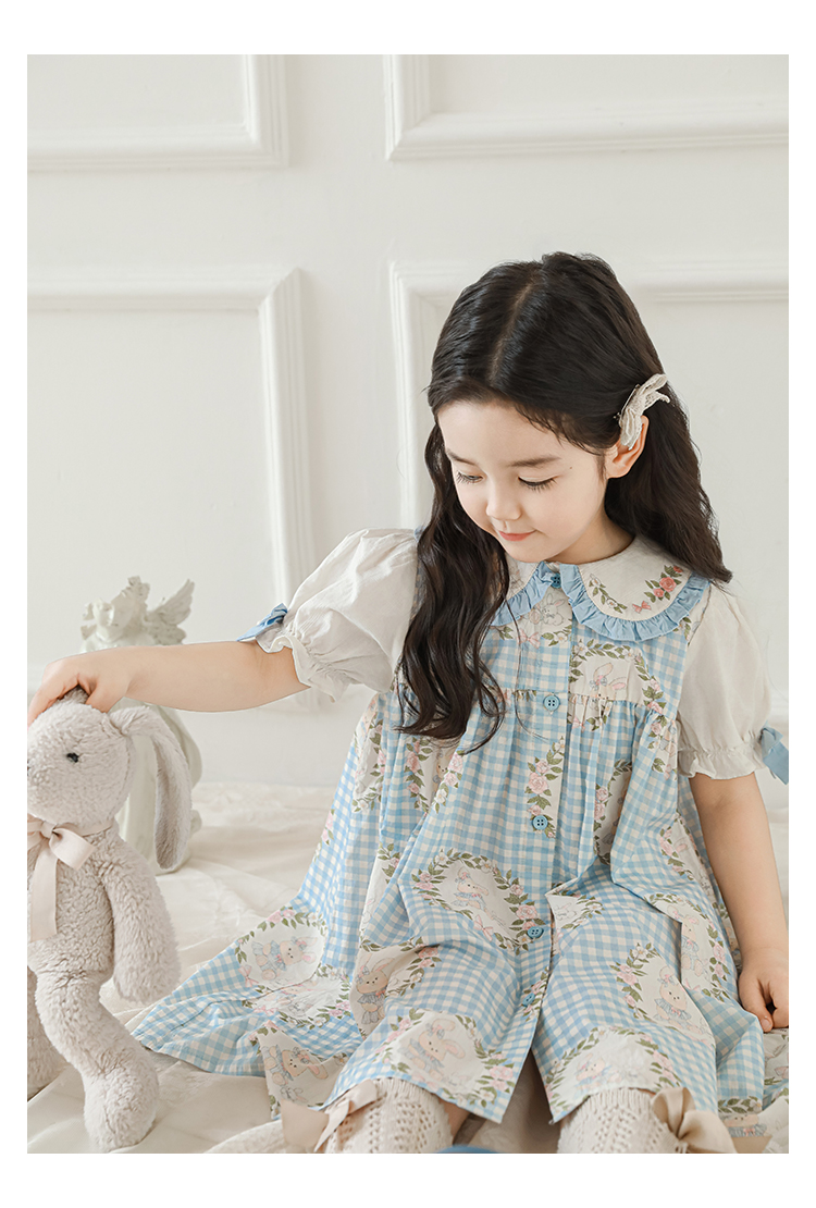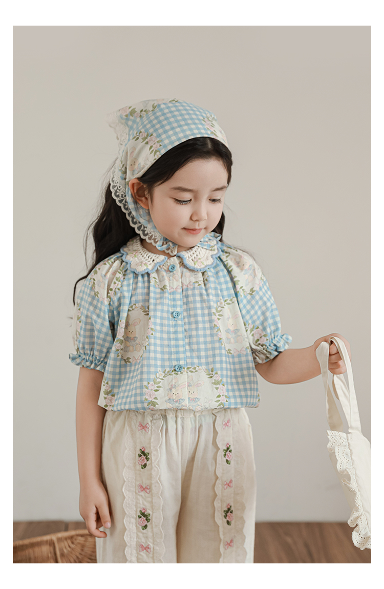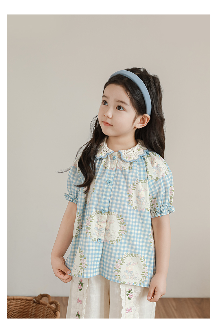 • 셔츠 블루 체크 무늬 토끼 X4992