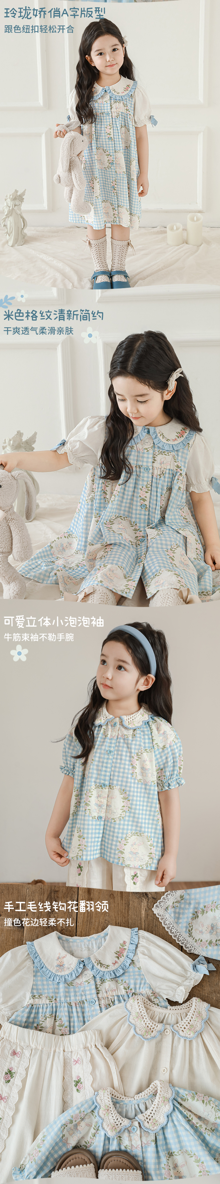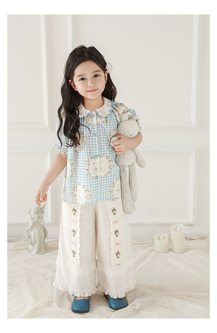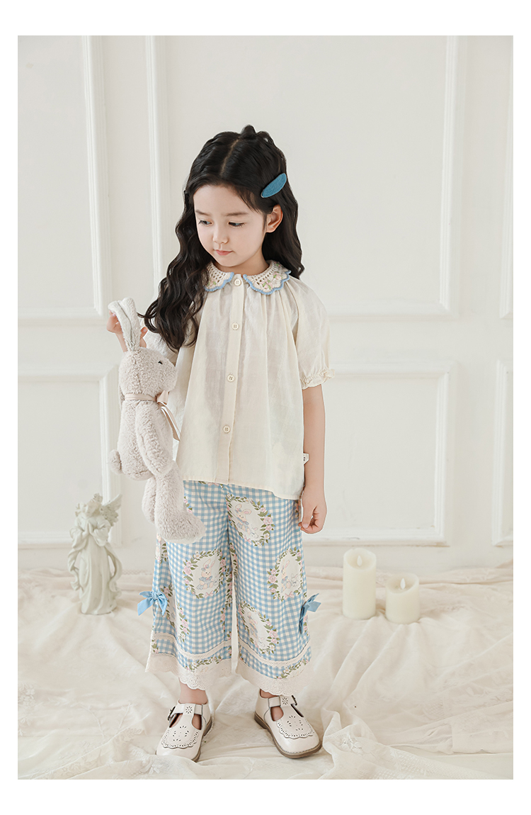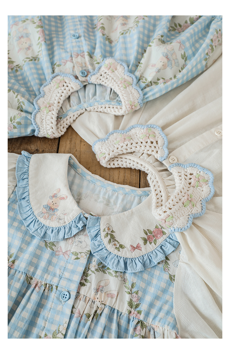 • 셔츠 블루 체크 무늬 토끼 X4992