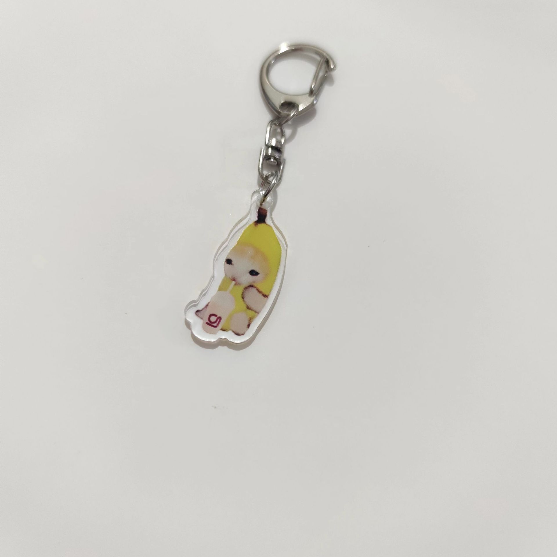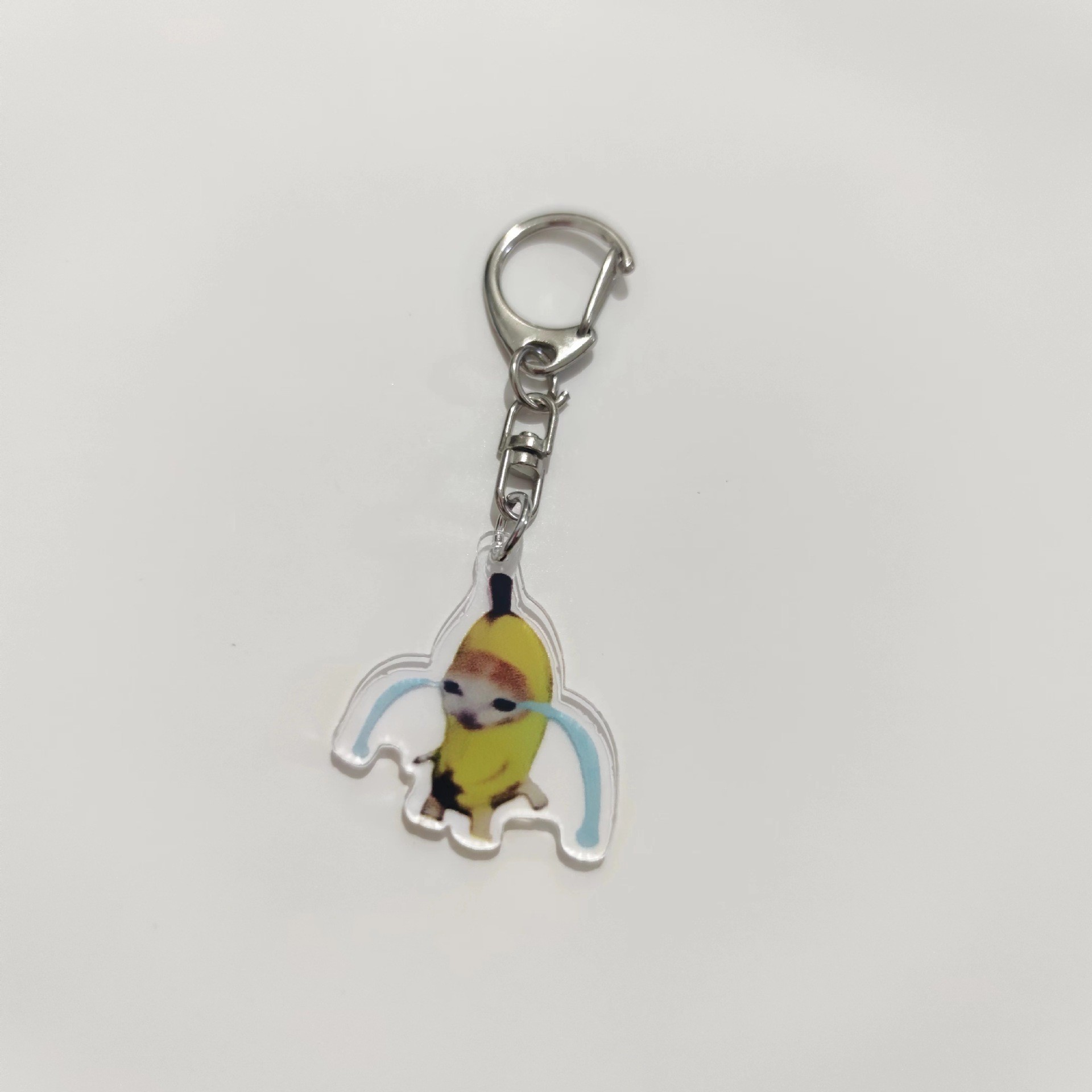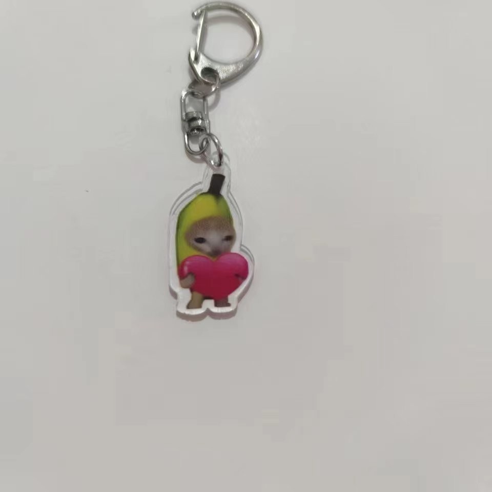 국경 간 바나나 고양이 아크릴 키 체인 바나나 고양이 이모티콘 키 체인 재미 있은 가방 새끼 고양이 펜던트
