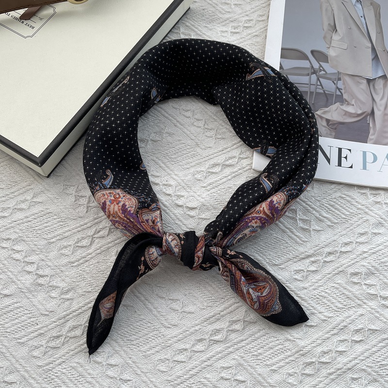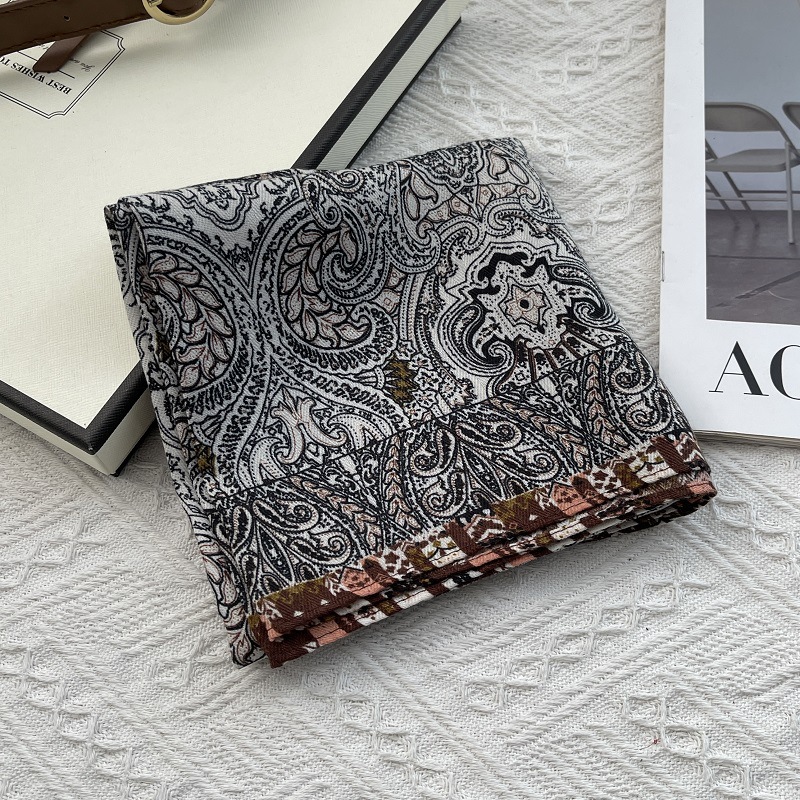 새로운 봄 코튼 리넨 실크 스카프 작은 스퀘어 스카프 기하학적 편지 자카드 우아한 스카프 여성용 목 매칭 텍스처 스카프