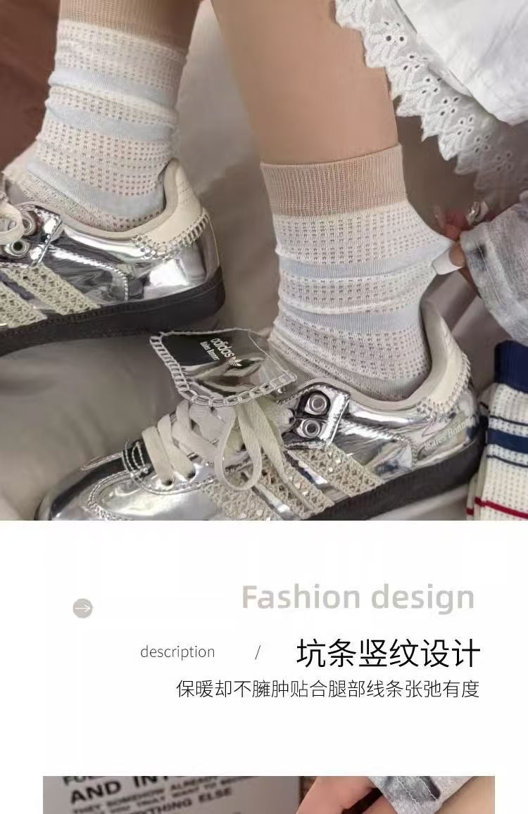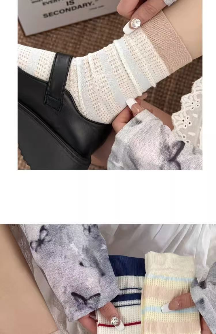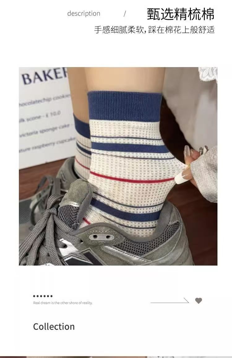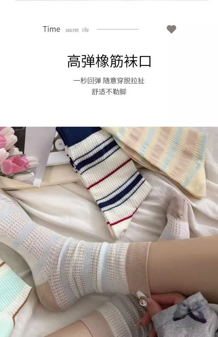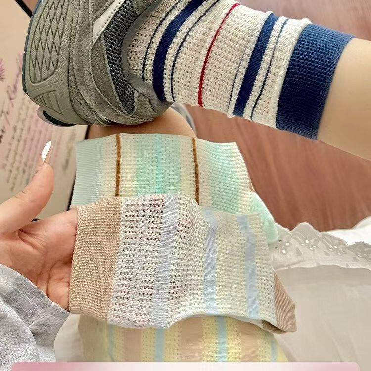 빈티지 메쉬 스트라이프 스택 양말 여성용 중간 길이 양말 트렌디 한 단색 여름 얇은 일본 스포츠 스타킹