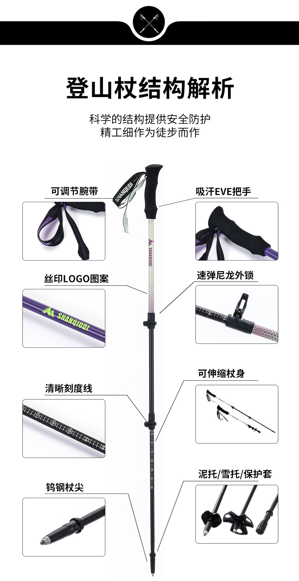 초경량 개폐식 야외 등산 및 하이킹 남성과 여성을 위한 휴대용 트레킹 스틱 등산 야외 장비