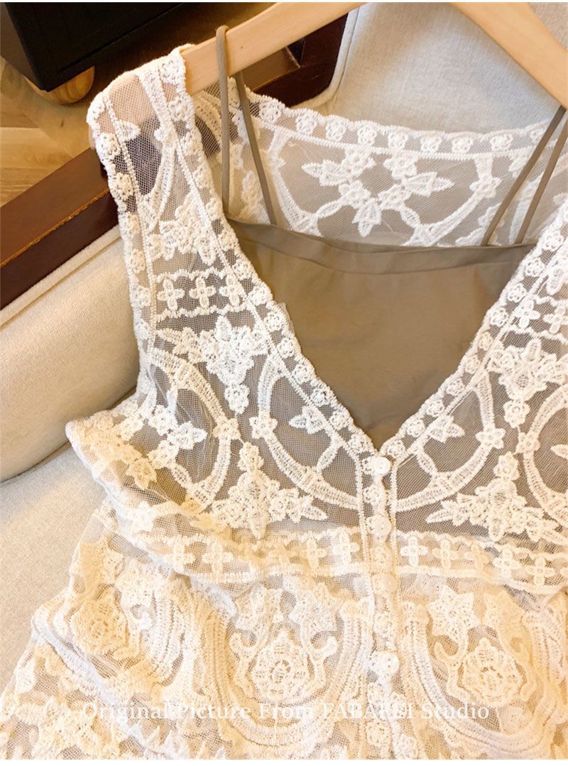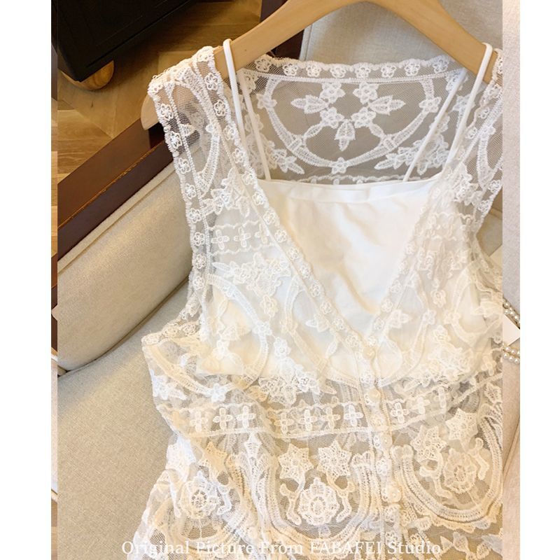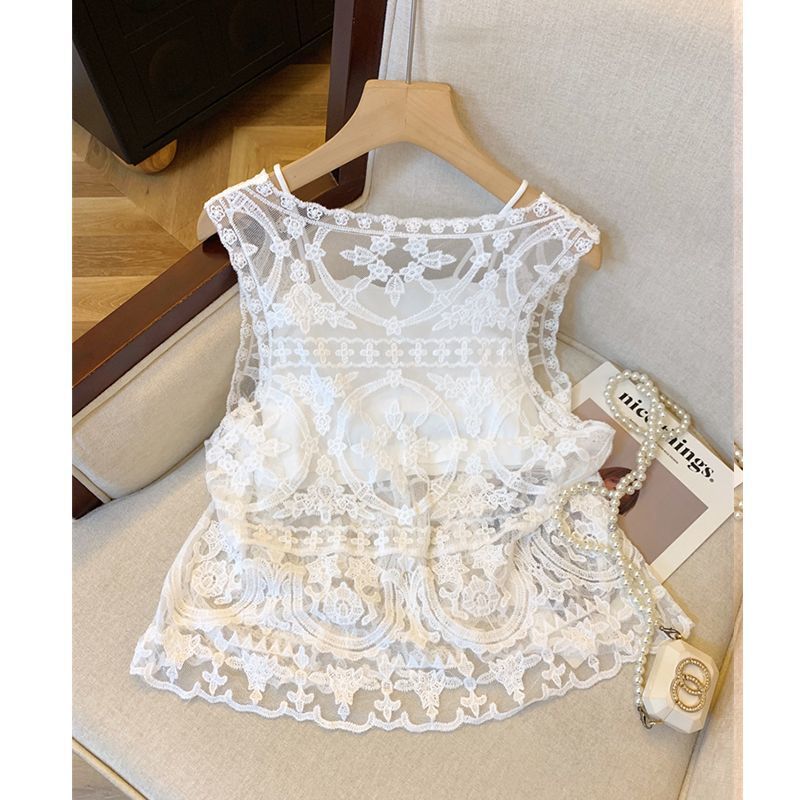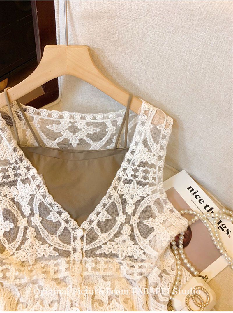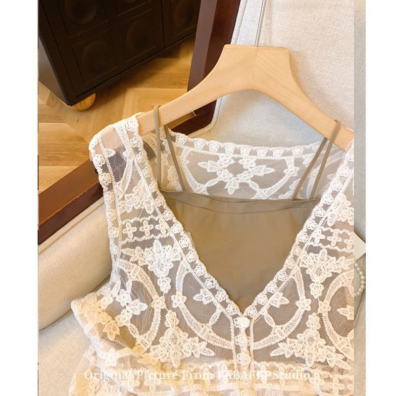 프랑스 스타일 V-Neck 레이스 조끼 카디건 여성 여름 카미솔 소매 탑 보헤미안