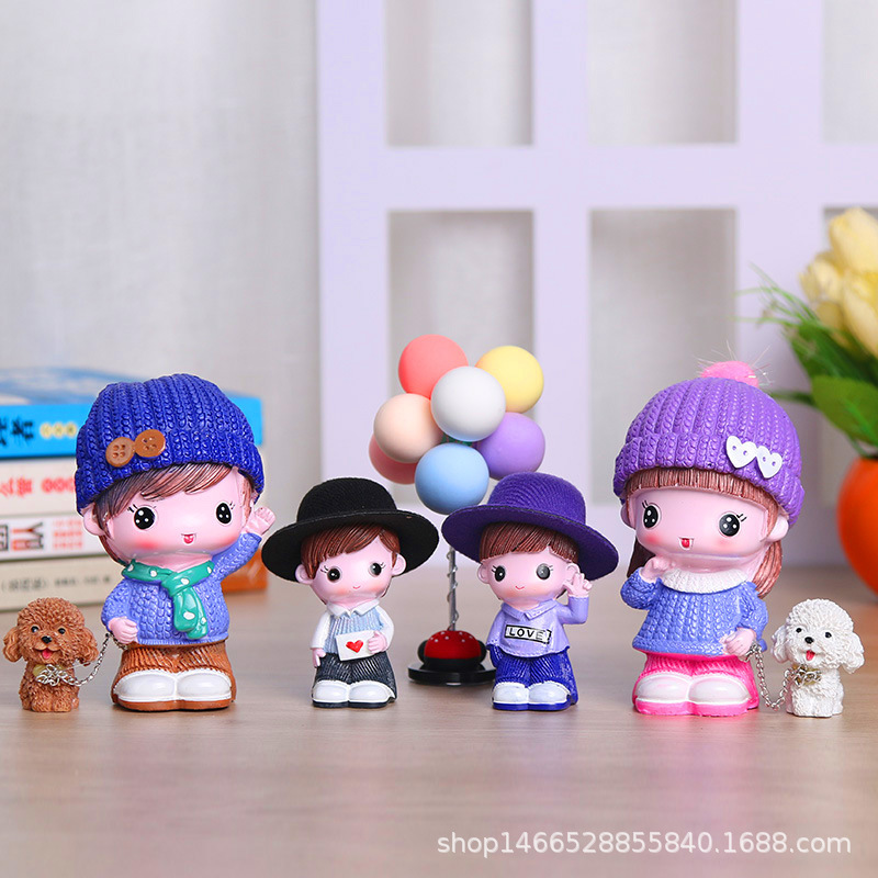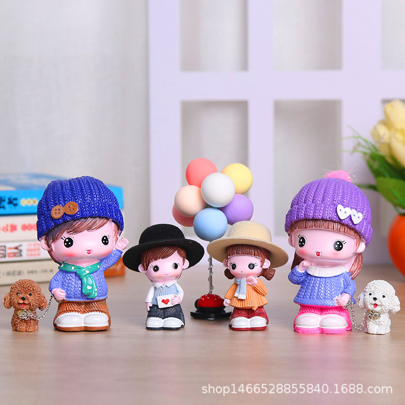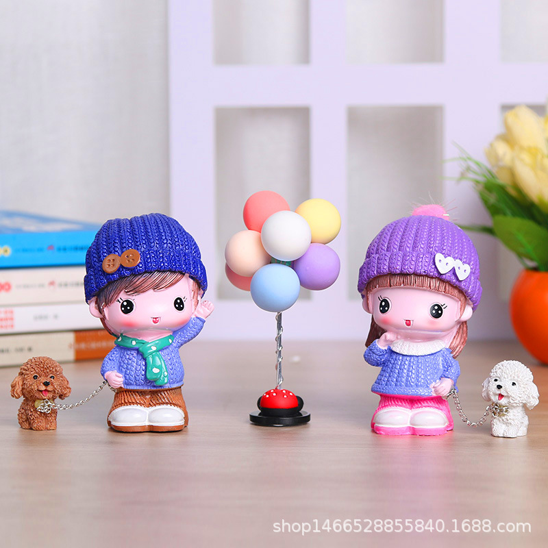 • 스카프를 두른 강아지 산책 커플 + 마카롱 단일 풍선 꽃다발 + 둥근 모자 하트 소년