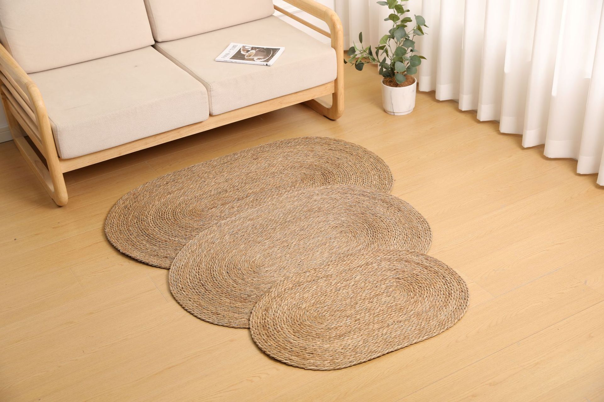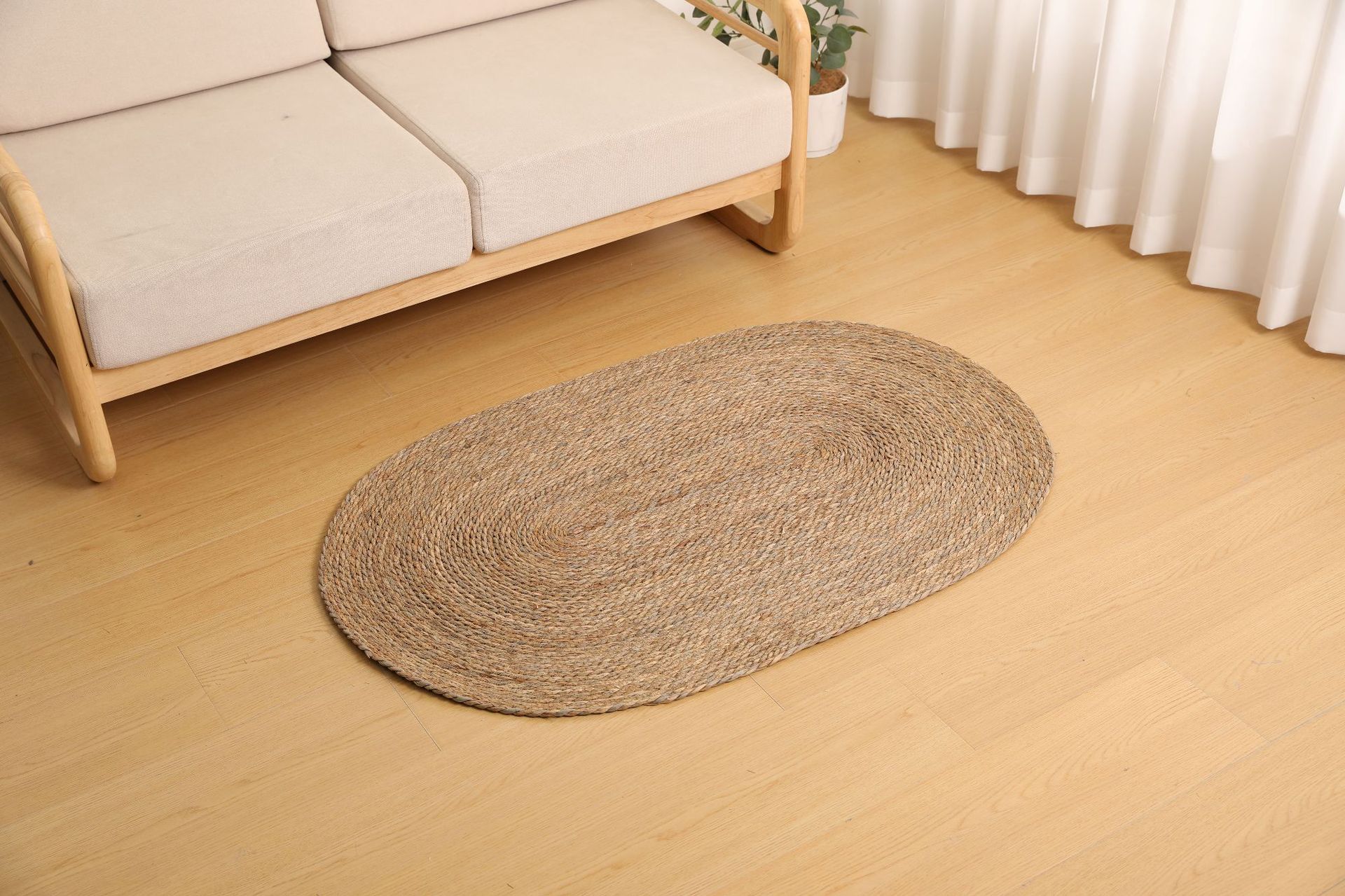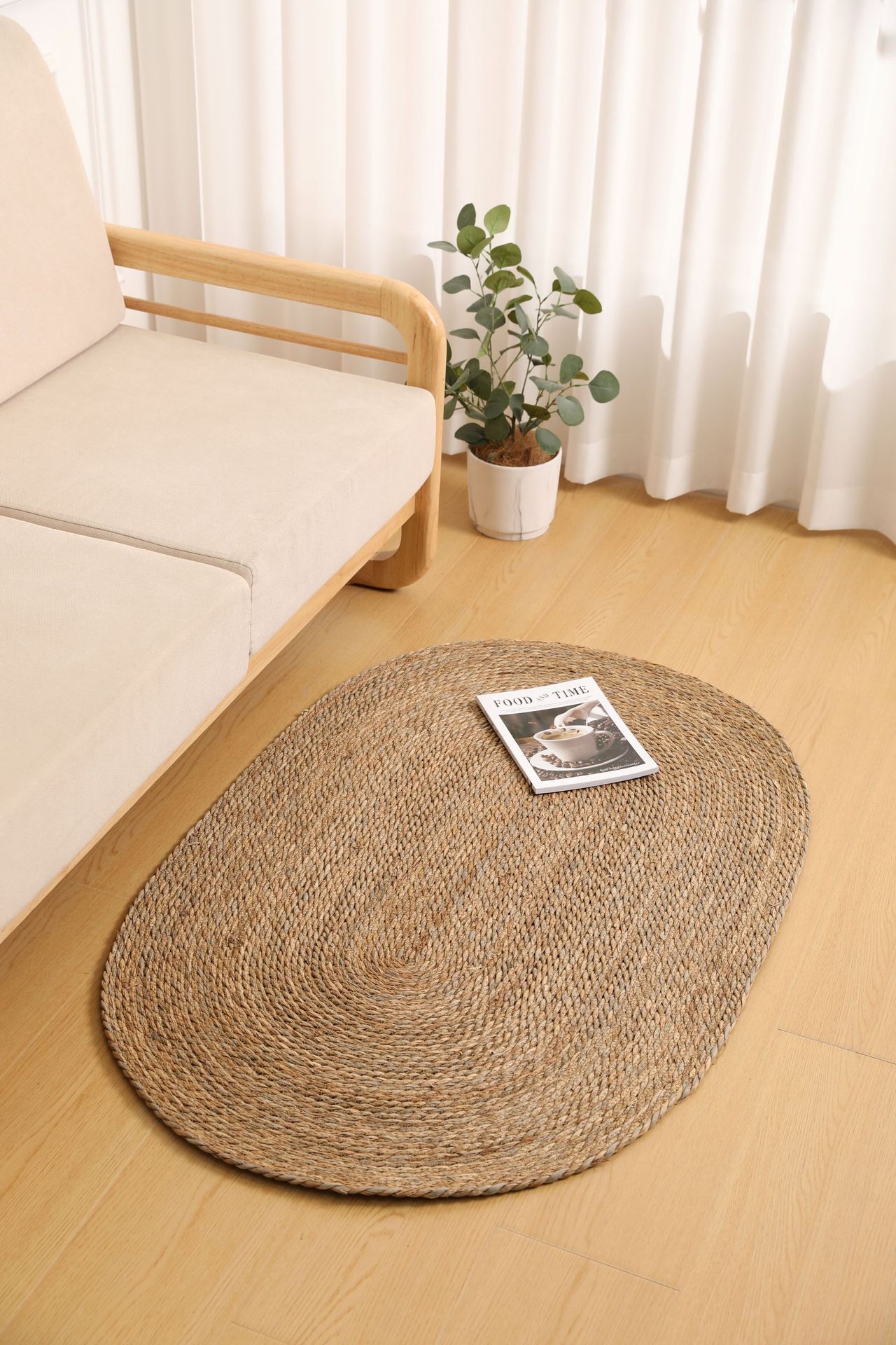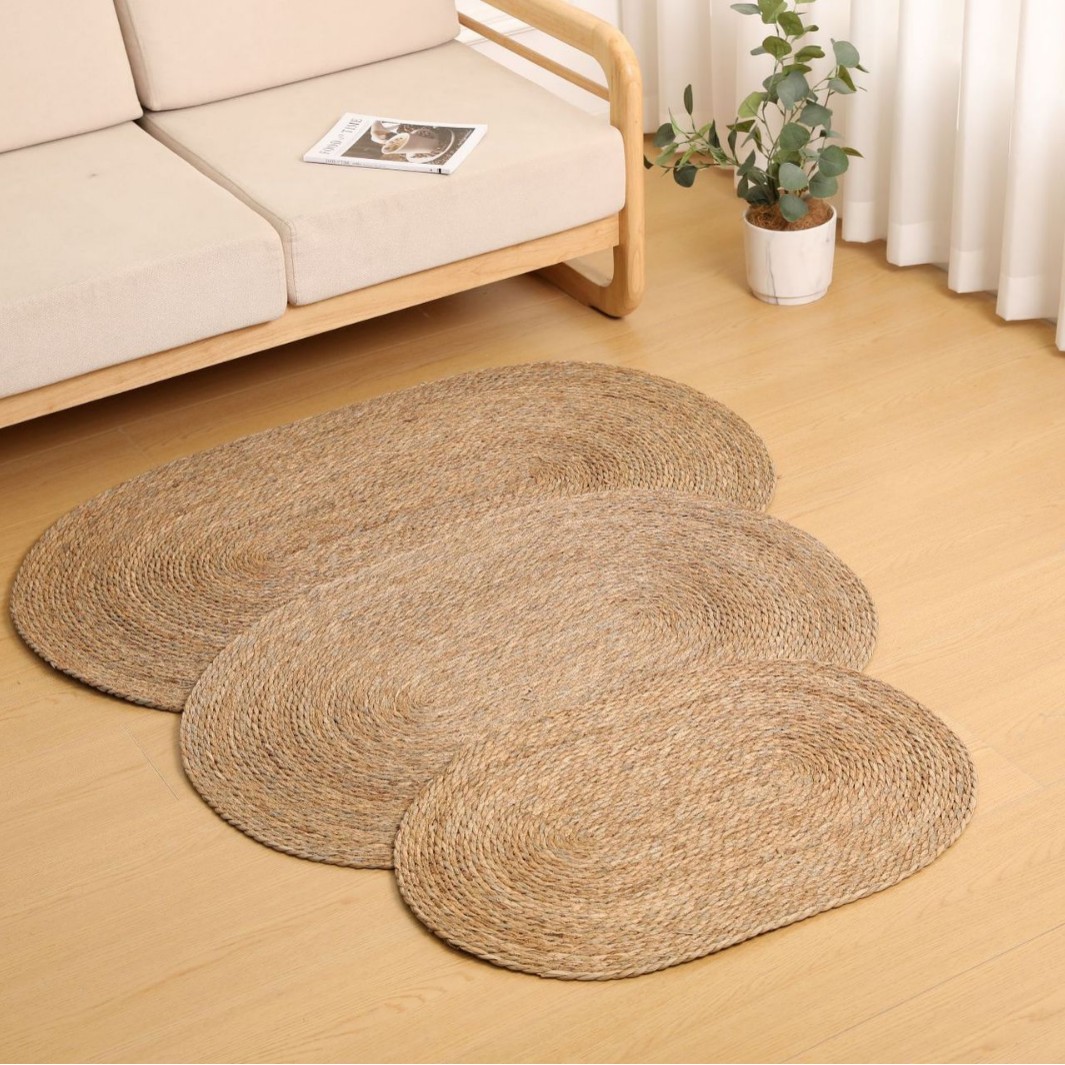 둥근형 등나무 바닥 매트, 고양이 긁는 매트, 원목색 침실 침대 옆 카펫, 다다미, 창가용 풀잎 매트스토어 가기