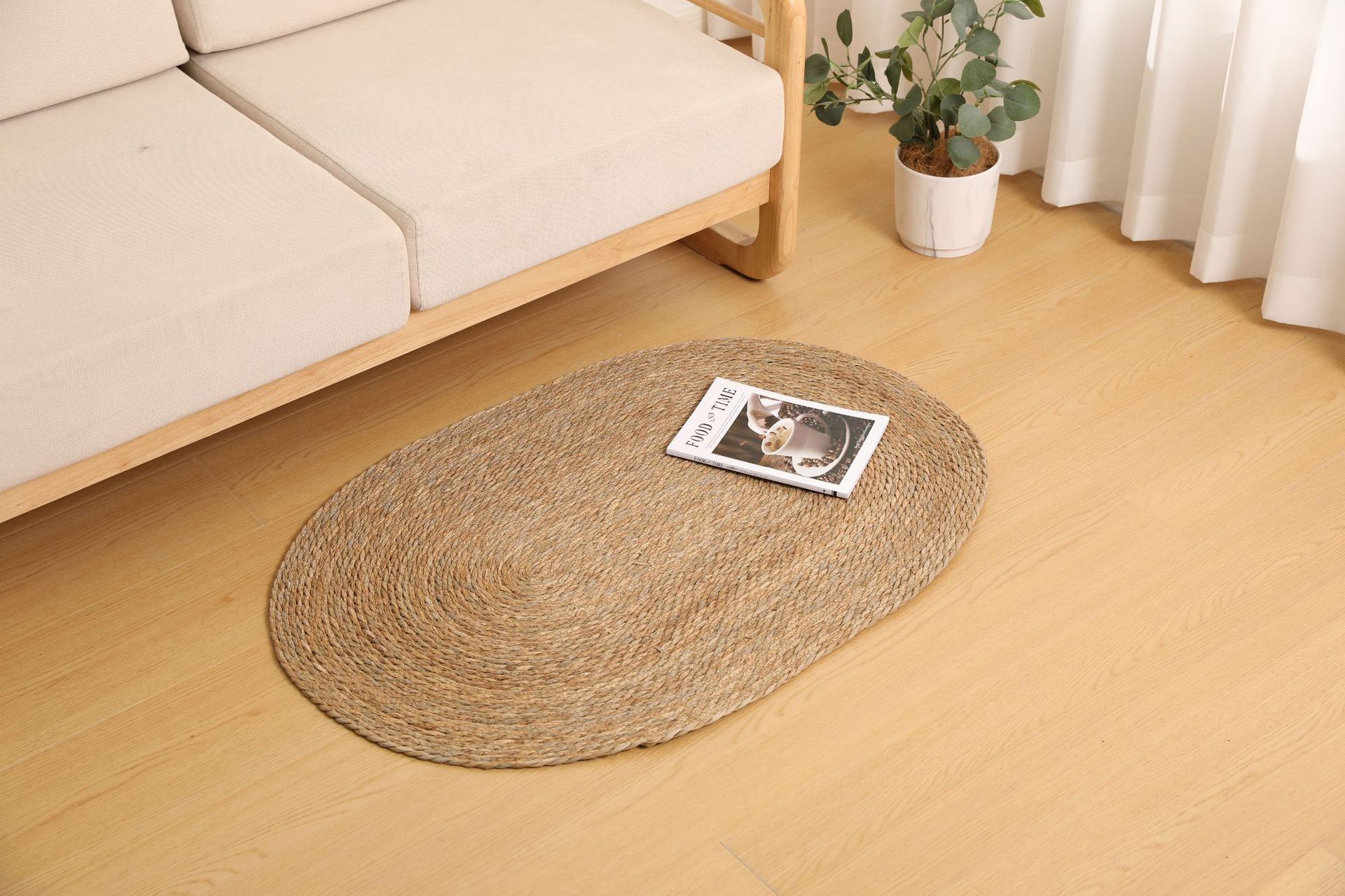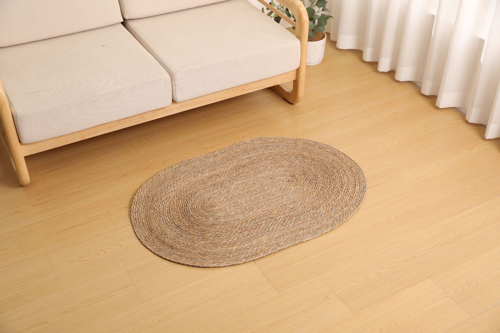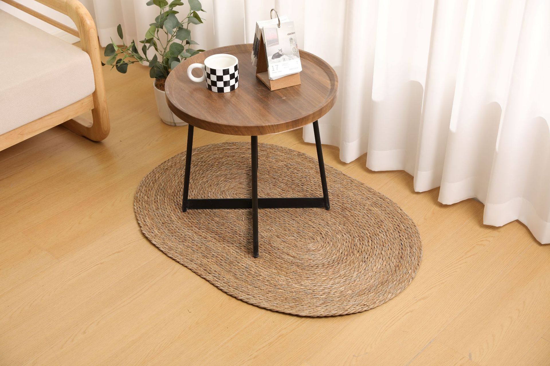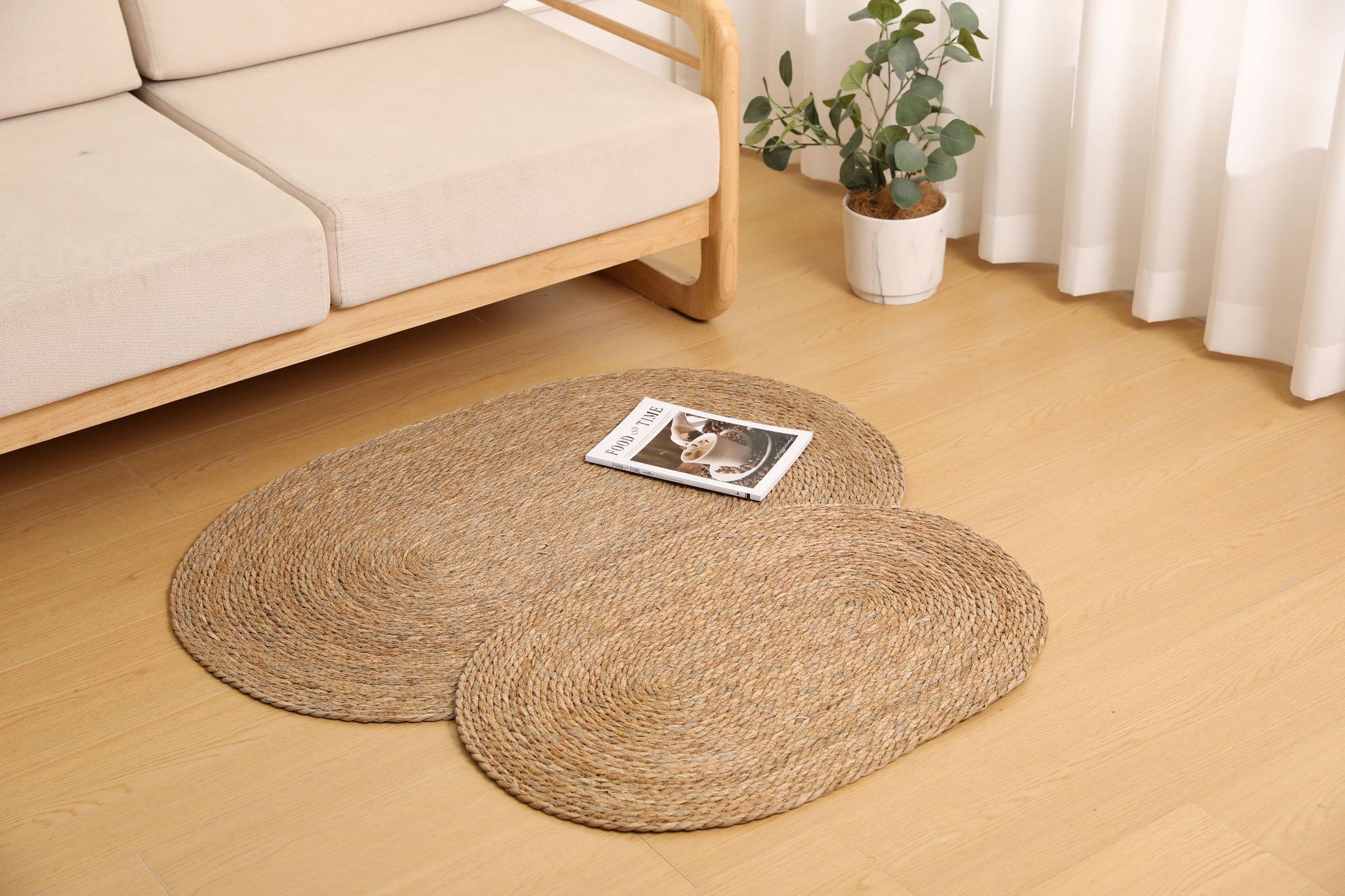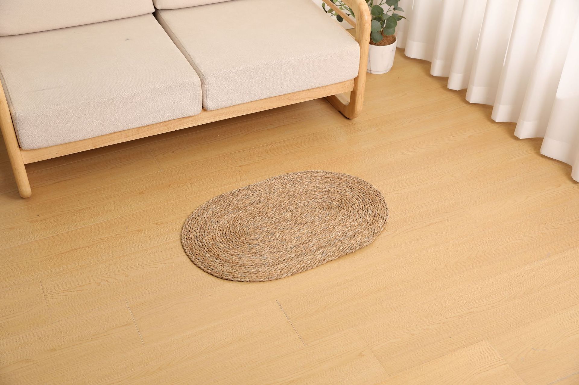 둥근형 등나무 바닥 매트, 고양이 긁는 매트, 원목색 침실 침대 옆 카펫, 다다미, 창가용 풀잎 매트스토어 가기