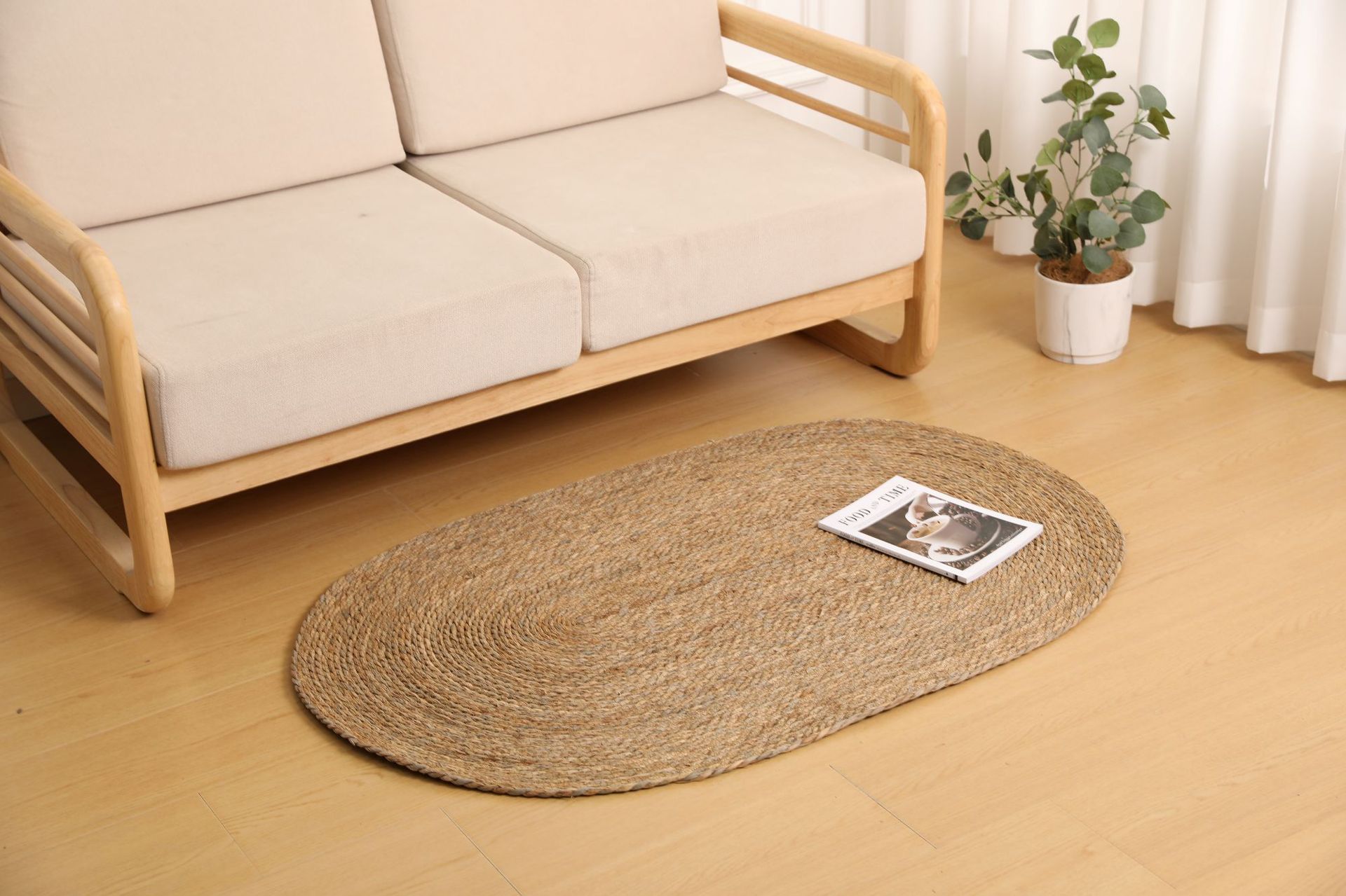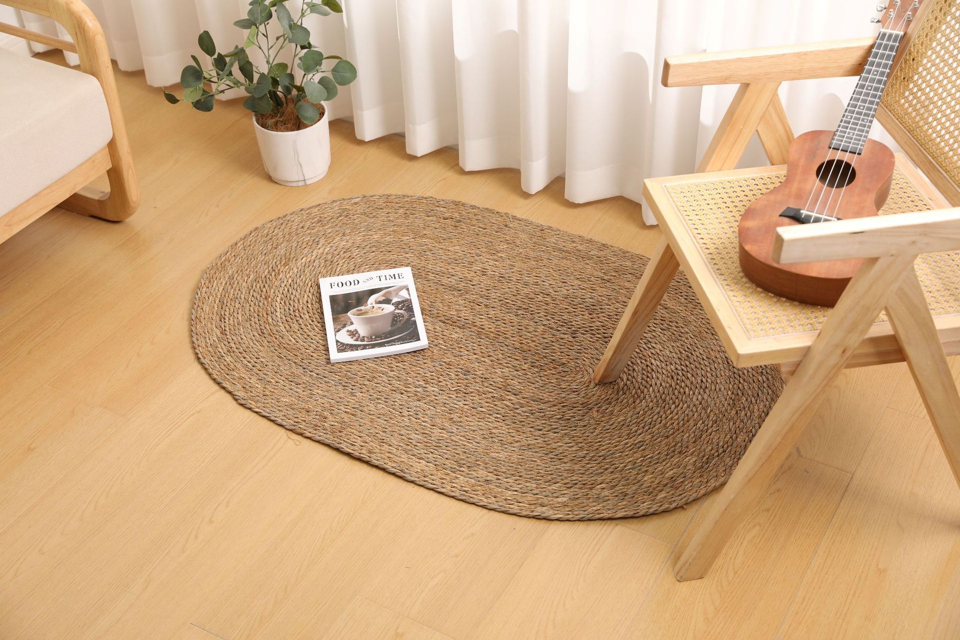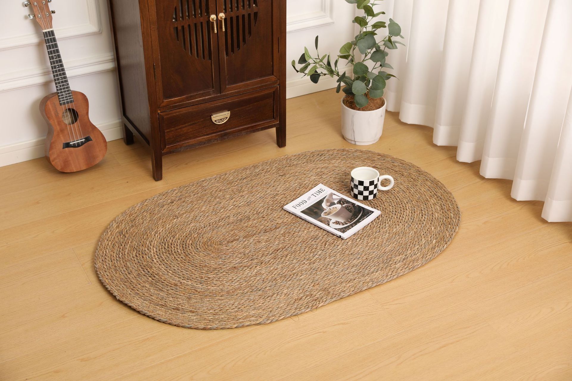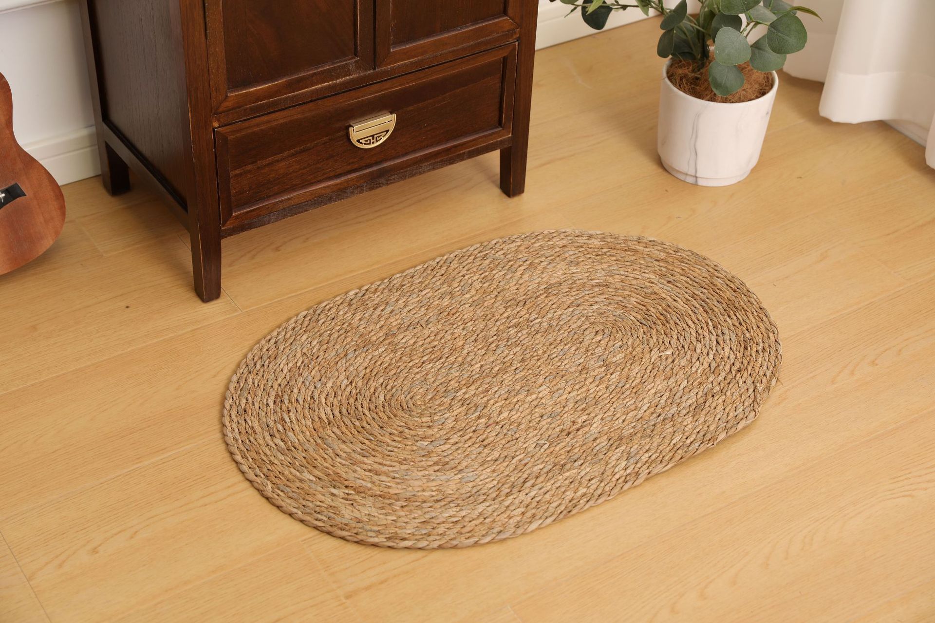 둥근형 등나무 바닥 매트, 고양이 긁는 매트, 원목색 침실 침대 옆 카펫, 다다미, 창가용 풀잎 매트스토어 가기