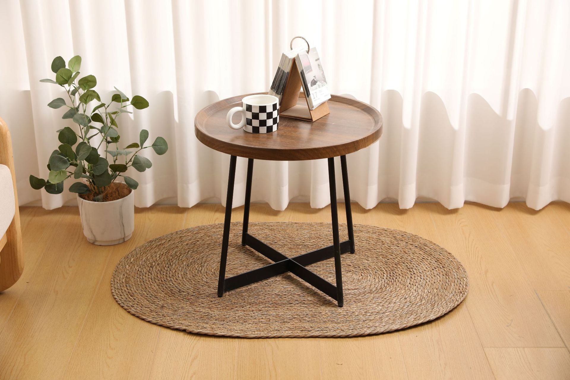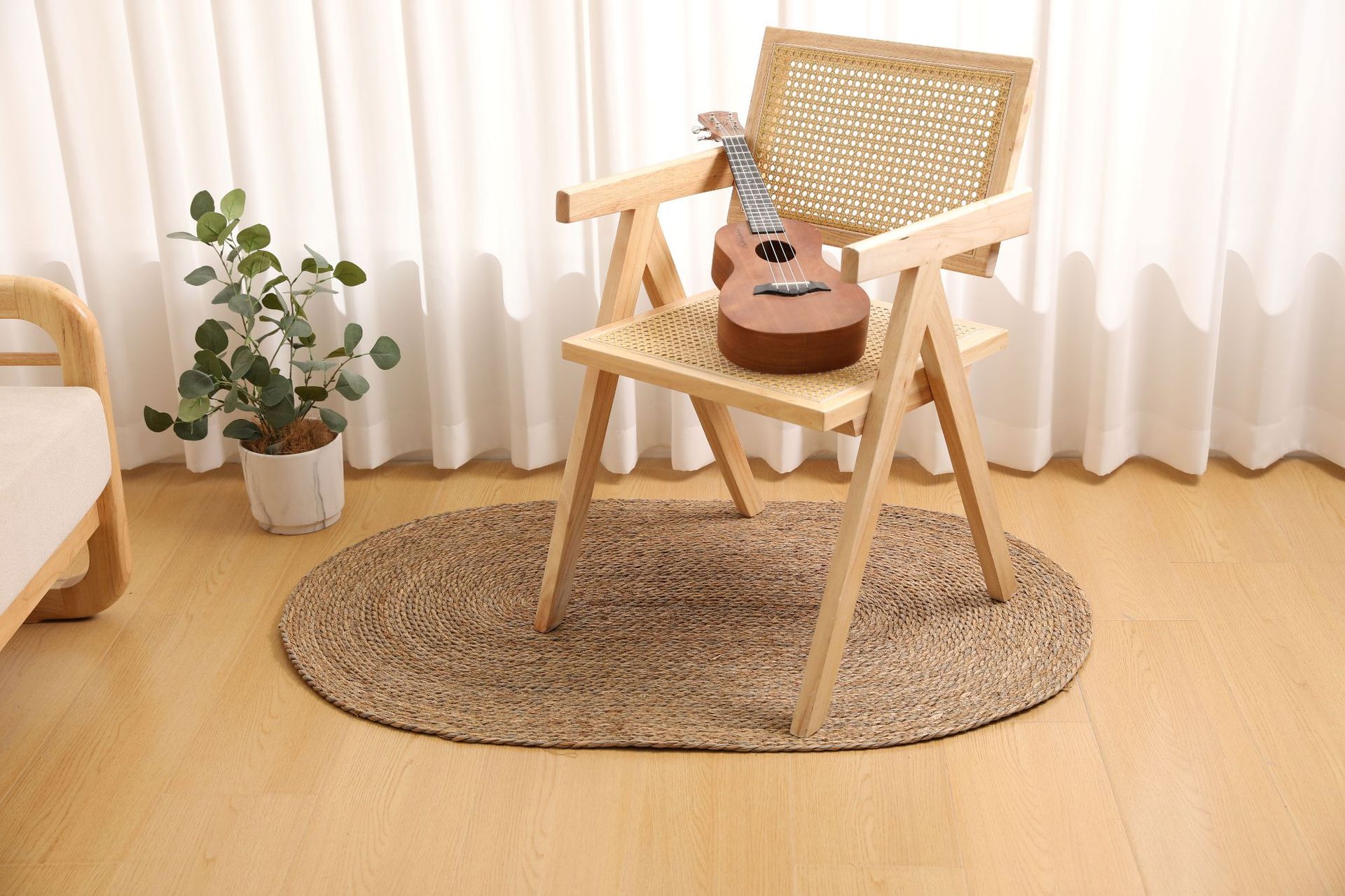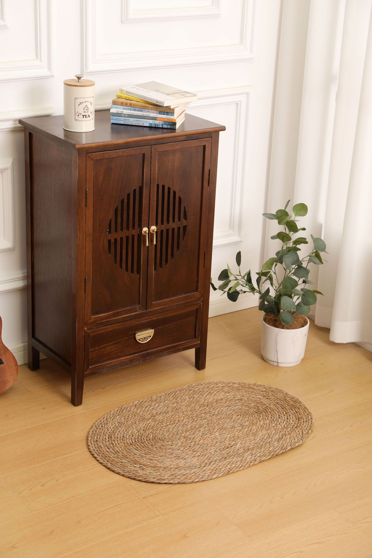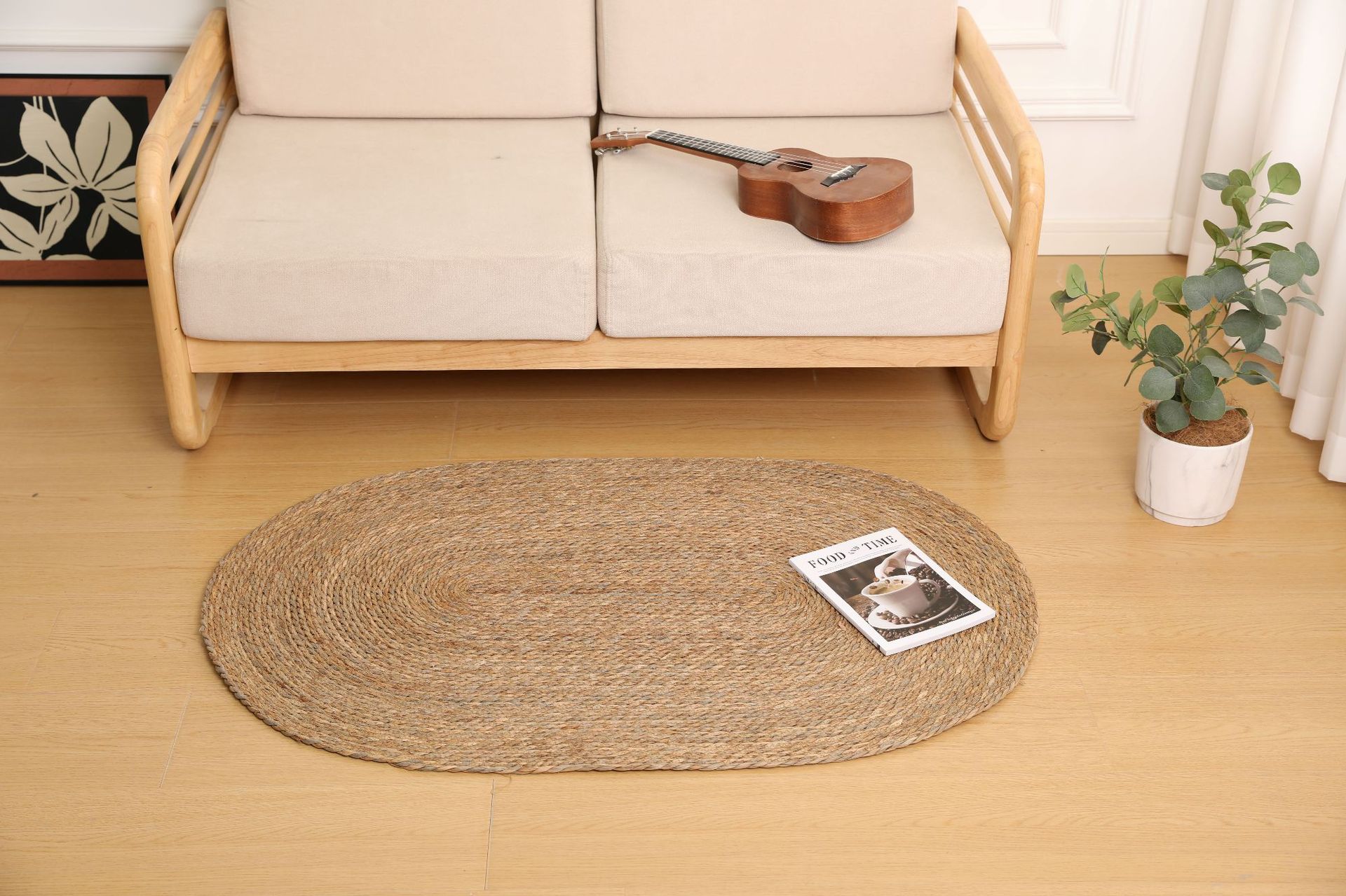 둥근형 등나무 바닥 매트, 고양이 긁는 매트, 원목색 침실 침대 옆 카펫, 다다미, 창가용 풀잎 매트스토어 가기
