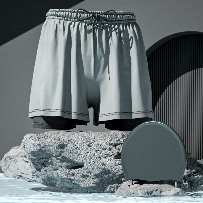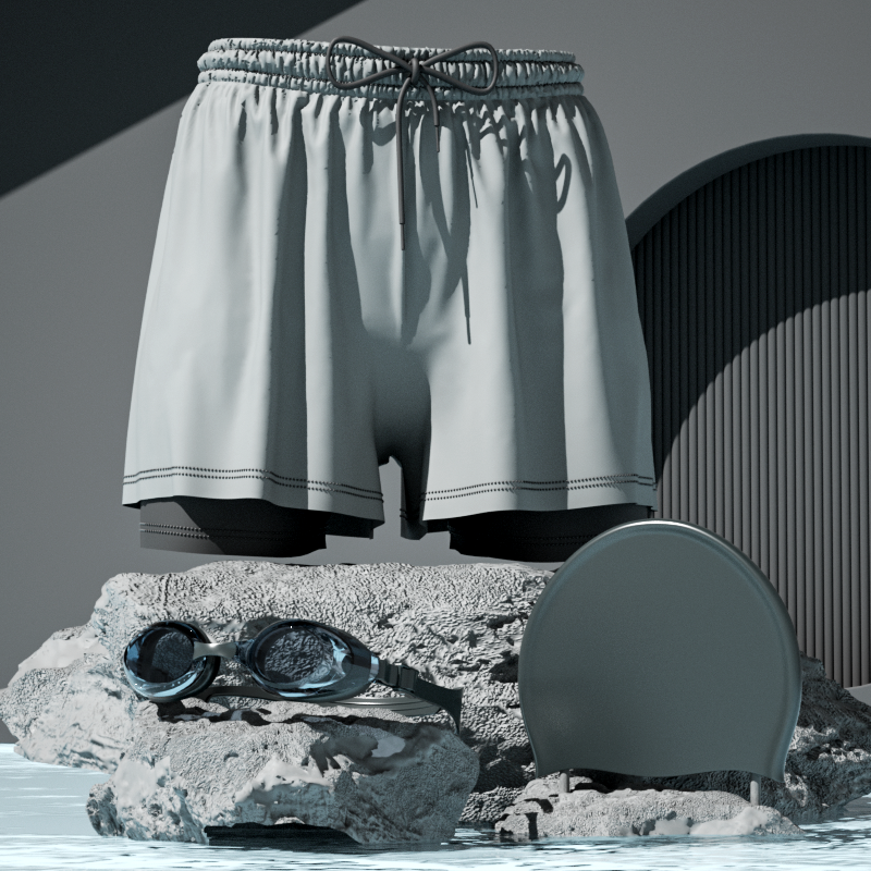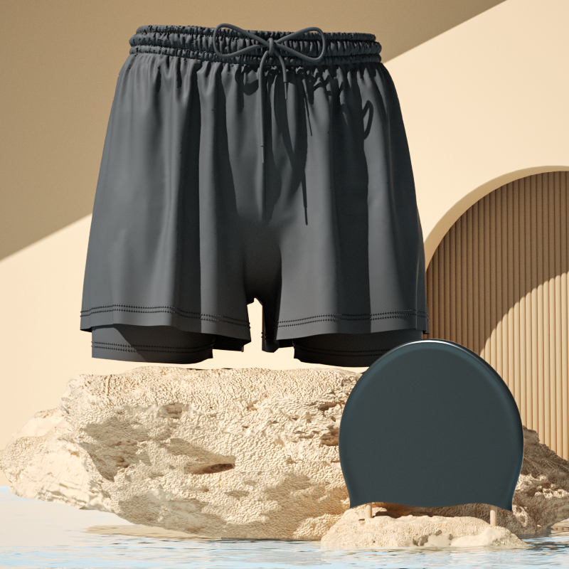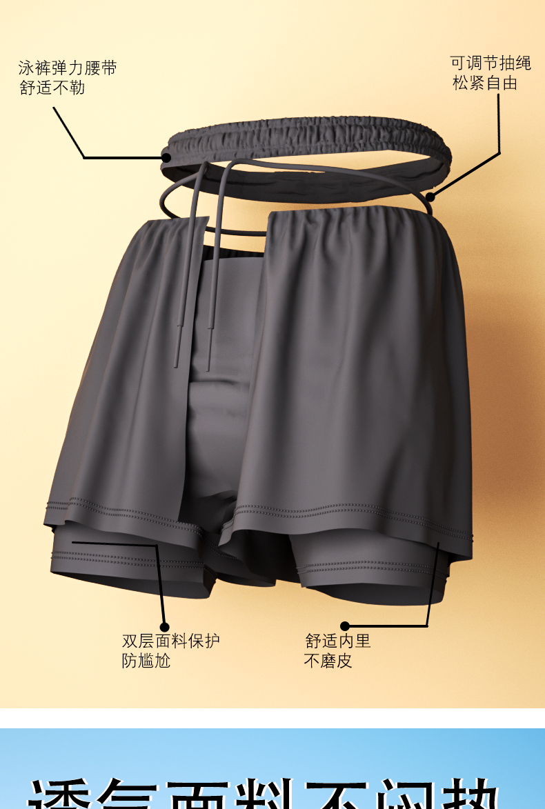 • <<실버 그레이 더블 레이어 당황 방지 수영 트렁크>>