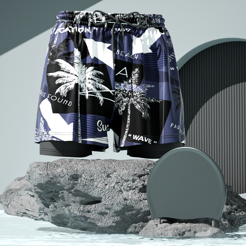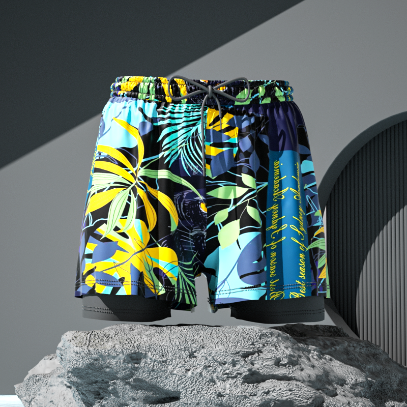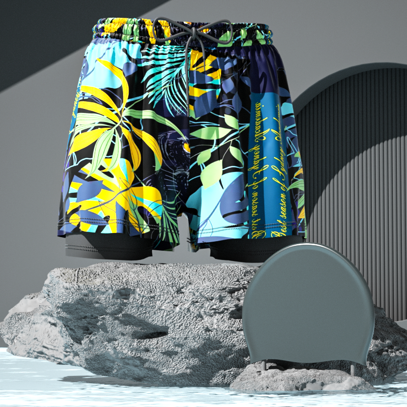 • <<삼색잎 이중층 당황 방지 수영 트렁크>>