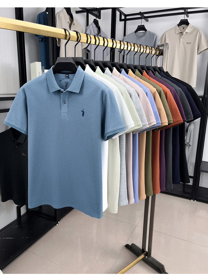 순면 반팔 폴로셔츠 남성용 2026 여름 신상 패션 라펠 자수 포니 로고 피케 통기성 티셔츠 남성용스토어 가기