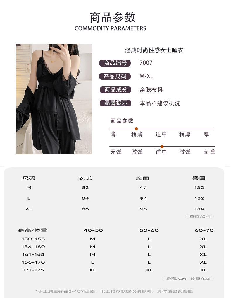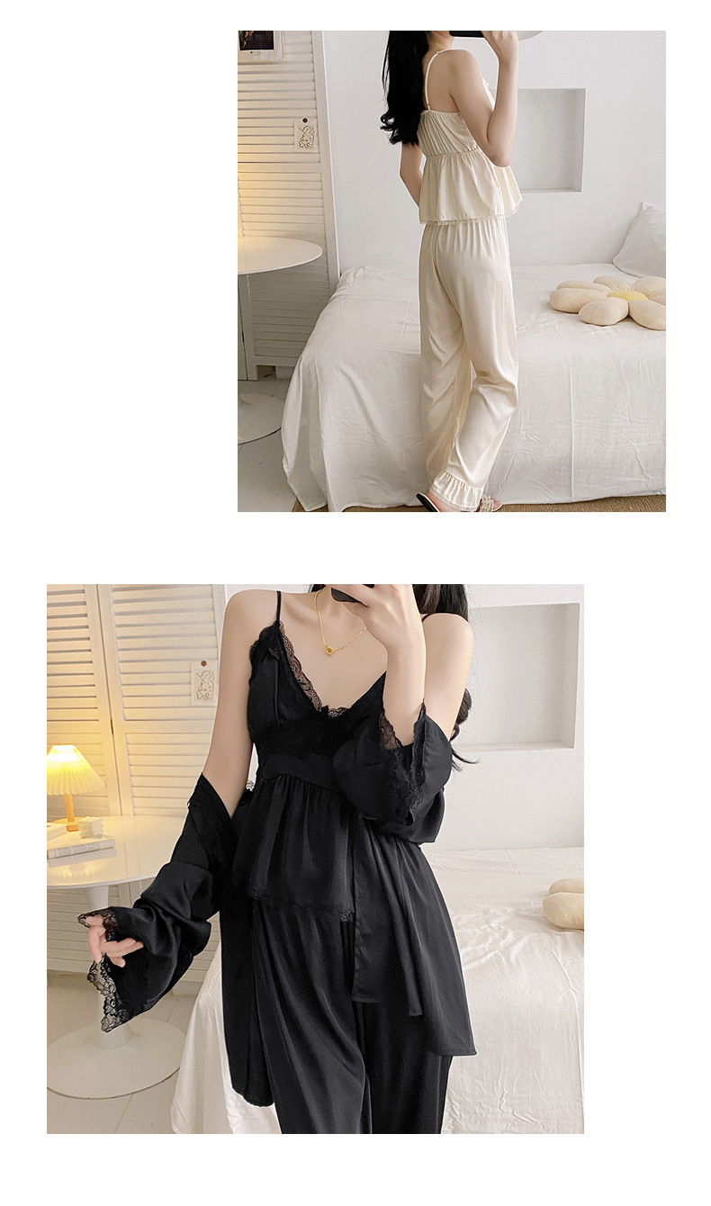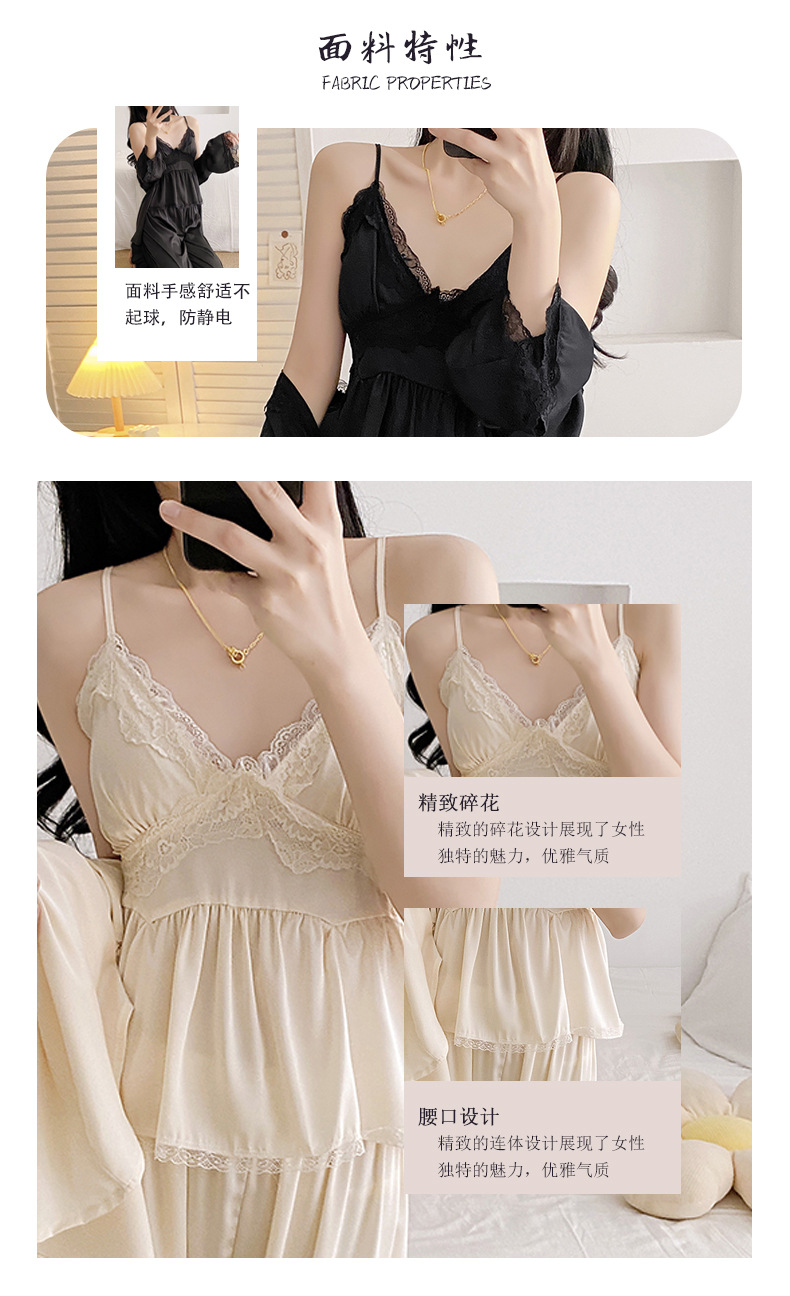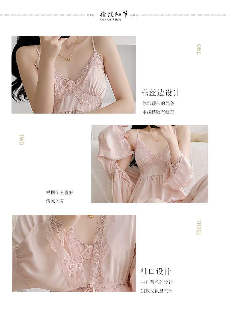루스의 봄 여름 얇은 아이스 실크 브이넥 여성용 잠옷, 고급 3피스 세트, 집 밖에서 입을 수 있는 홈웨어 세트