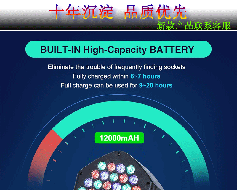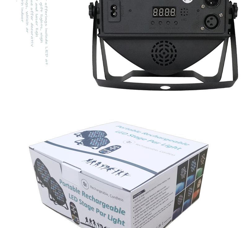 控制模式:声控、渐变、跳变、频闪、DMX 控制、主从控制、射频遥控器控制;