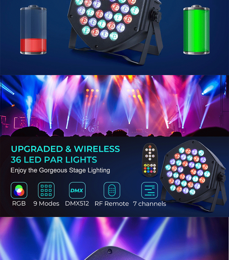 无线遥控36颗LED帕灯声控七彩DMX演出Par灯厂家直销派对蹦迪舞台灯