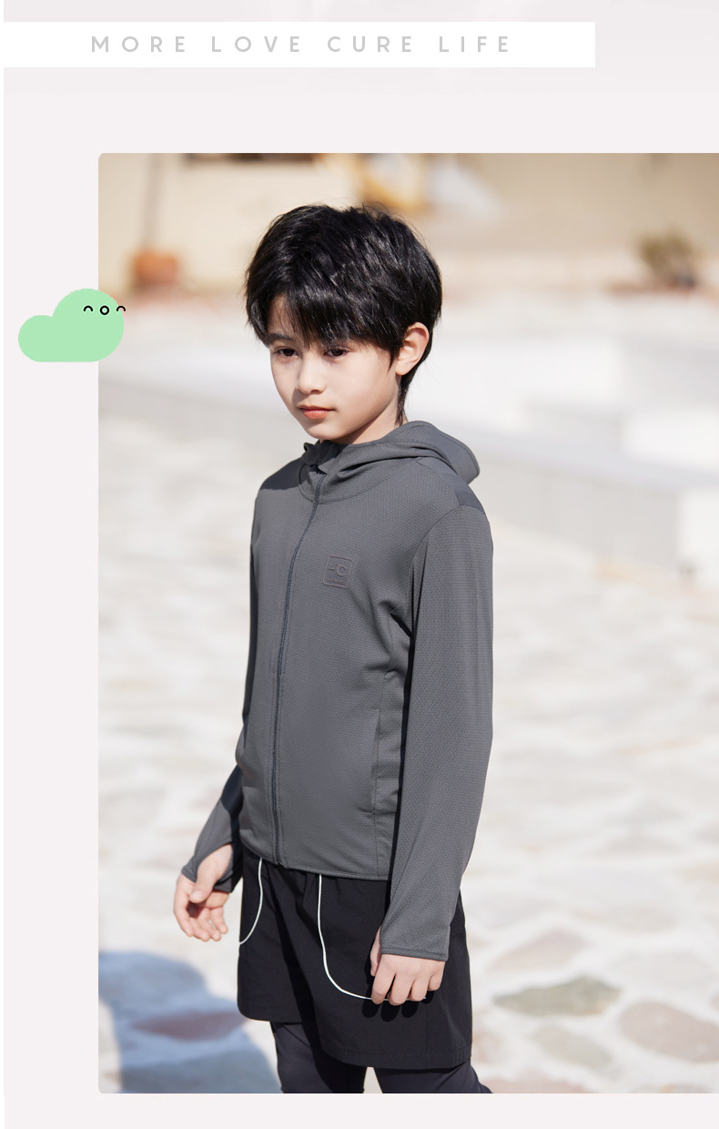 어린이 태양 보호 의류 upf50 여름 패션 후드 UV 보호 코트 아이스 실크 얇은 피부 의류 소년 소녀스토어 가기