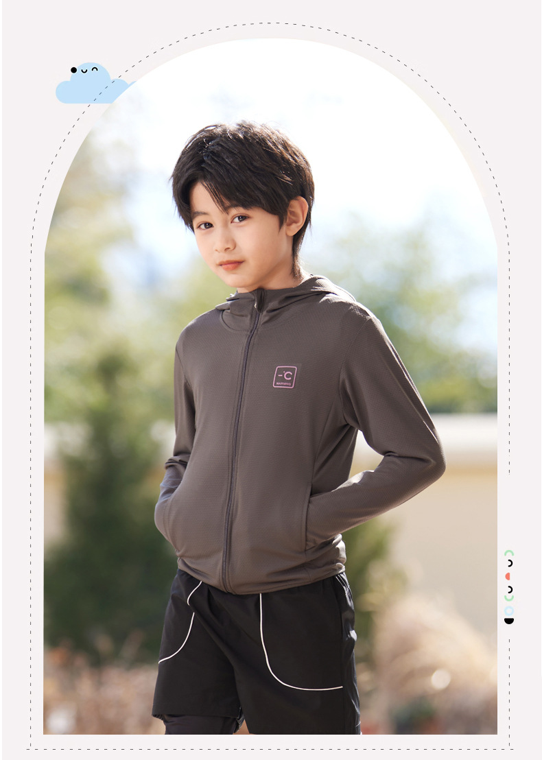 어린이 태양 보호 의류 upf50 여름 패션 후드 UV 보호 코트 아이스 실크 얇은 피부 의류 소년 소녀
